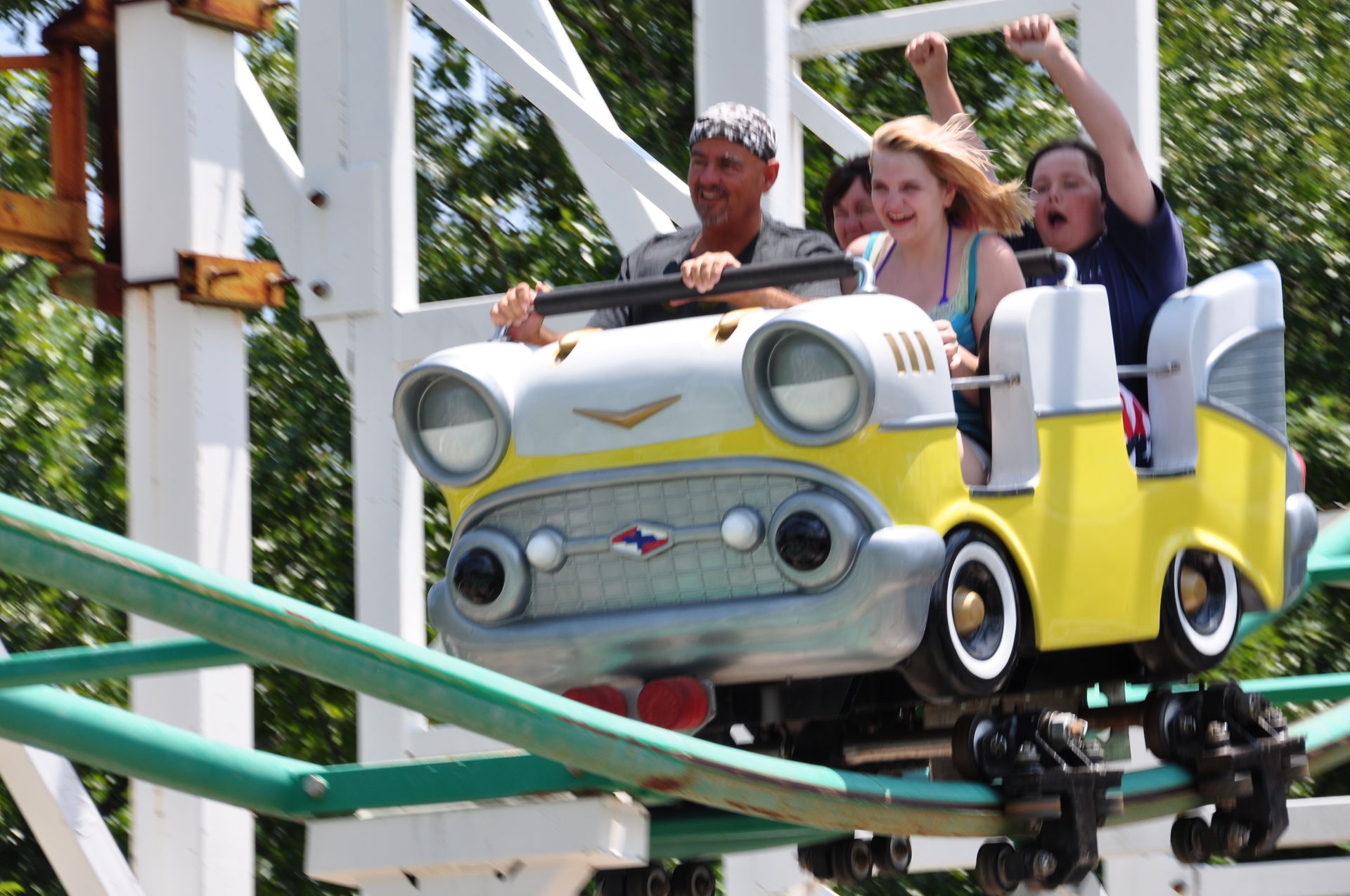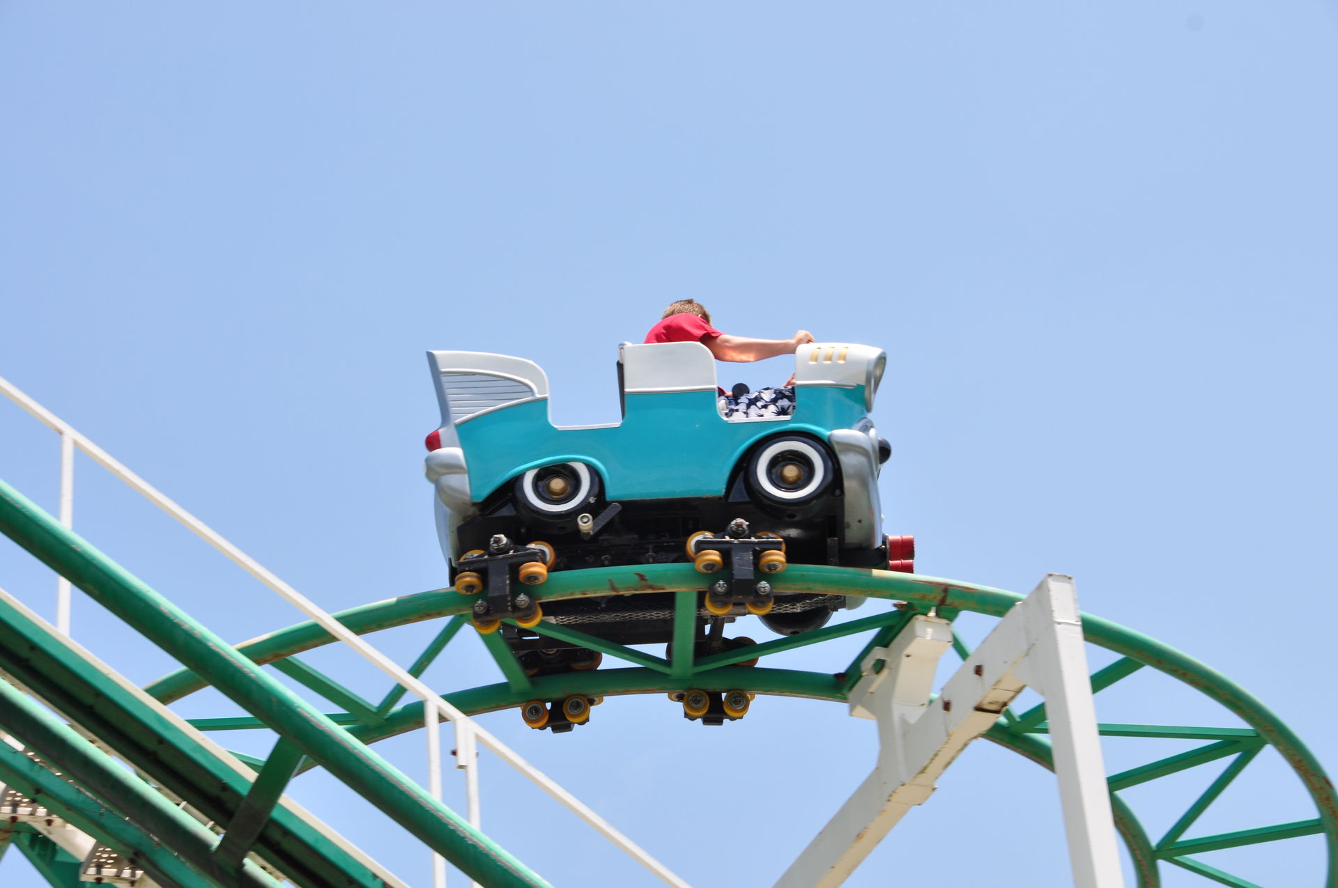 Hui, endlich mal wieder ein Kiddie Coaster, den wir - nach den ganzen Verweigerungen in den Cedar Fair-Parks - ohne Kind oder ohne den Special-Bonus in Form von PR Managern fahren durften. Und dieses für die Art der Bahn recht lange Exemplar lässt sich sogar noch sehr gut fahren.