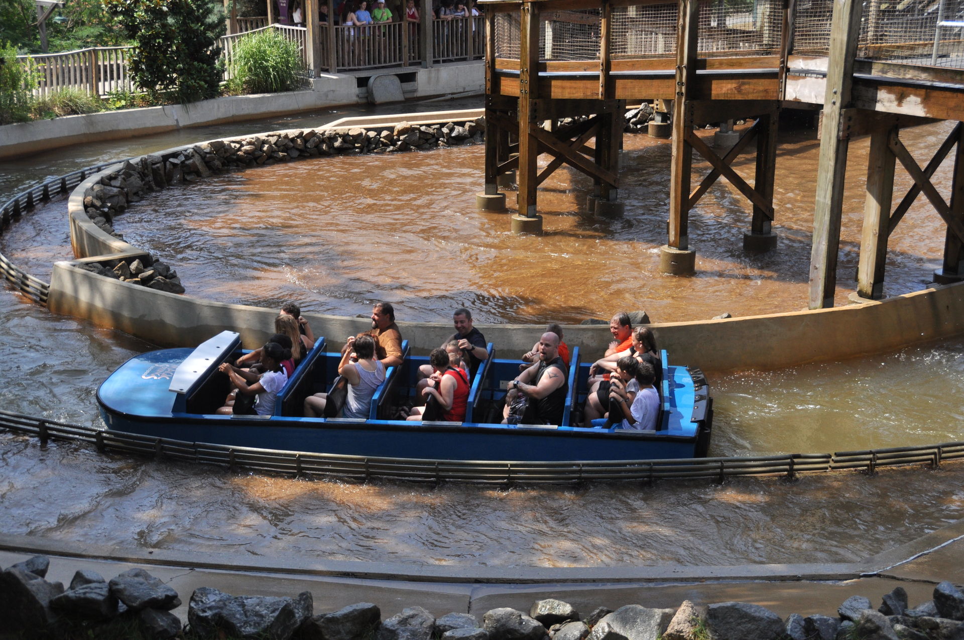 Um der Hitze ein wenig zu strotzen, suchten wir uns zwischendurch eine nette Abkühlung in Form des Spill Waters, der am Morgen noch nette Wellen geworfen hat. Dieser hatte inzwischen aber geschlossen, und auch die Log Flume war closed. Somit mussten wir bei den Temperaturen um die 35 Grad weiterhin mit der körpereigenen Feuchtigkeit klar kommen.