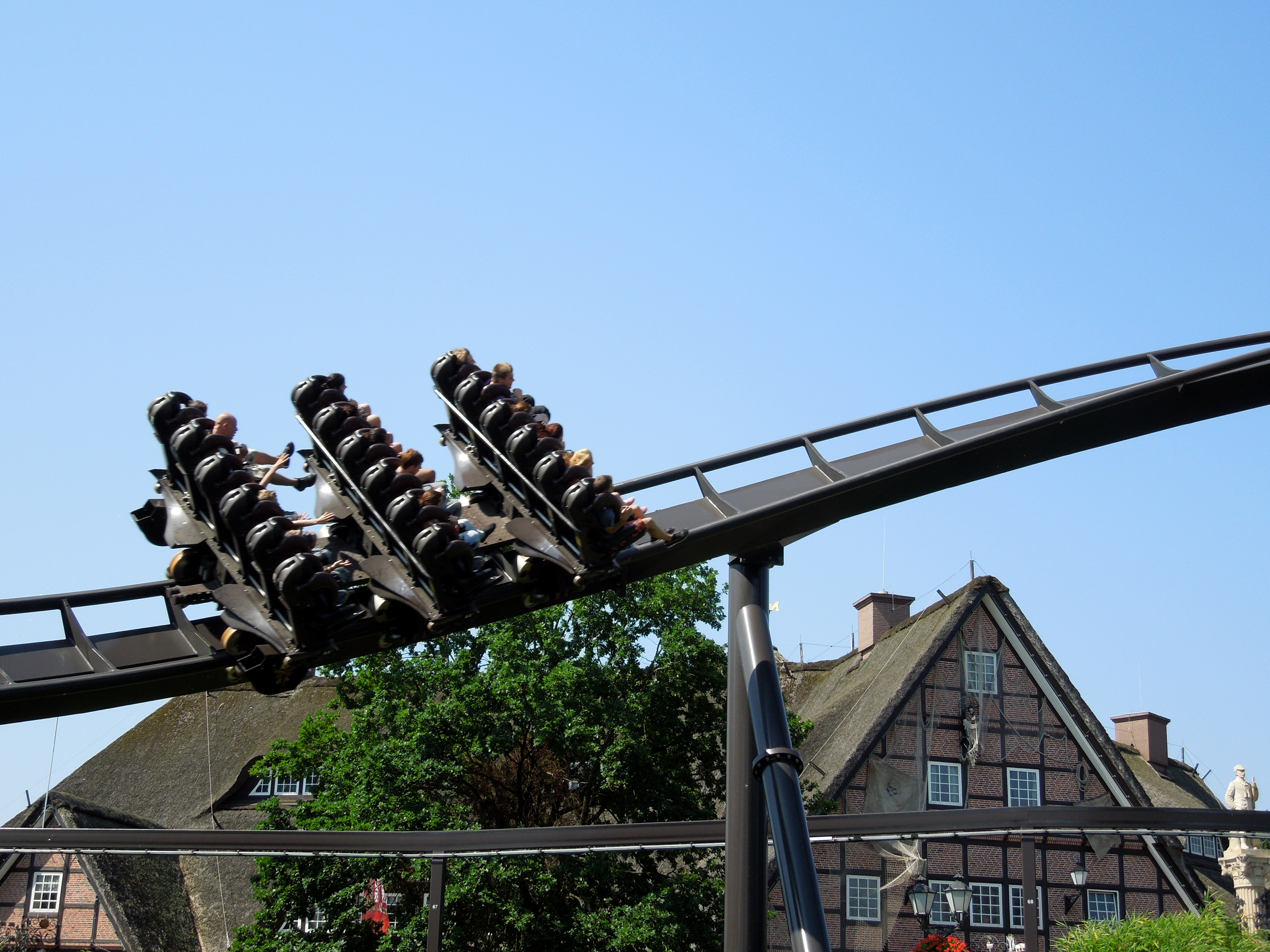 First Drop ist super, da lässt sich nichts dran meckern. Das folgende dient scheinbar wirklich dazu, den Zug möglichst schnell zur Strecke zurück zu bringen. Sehr schade.