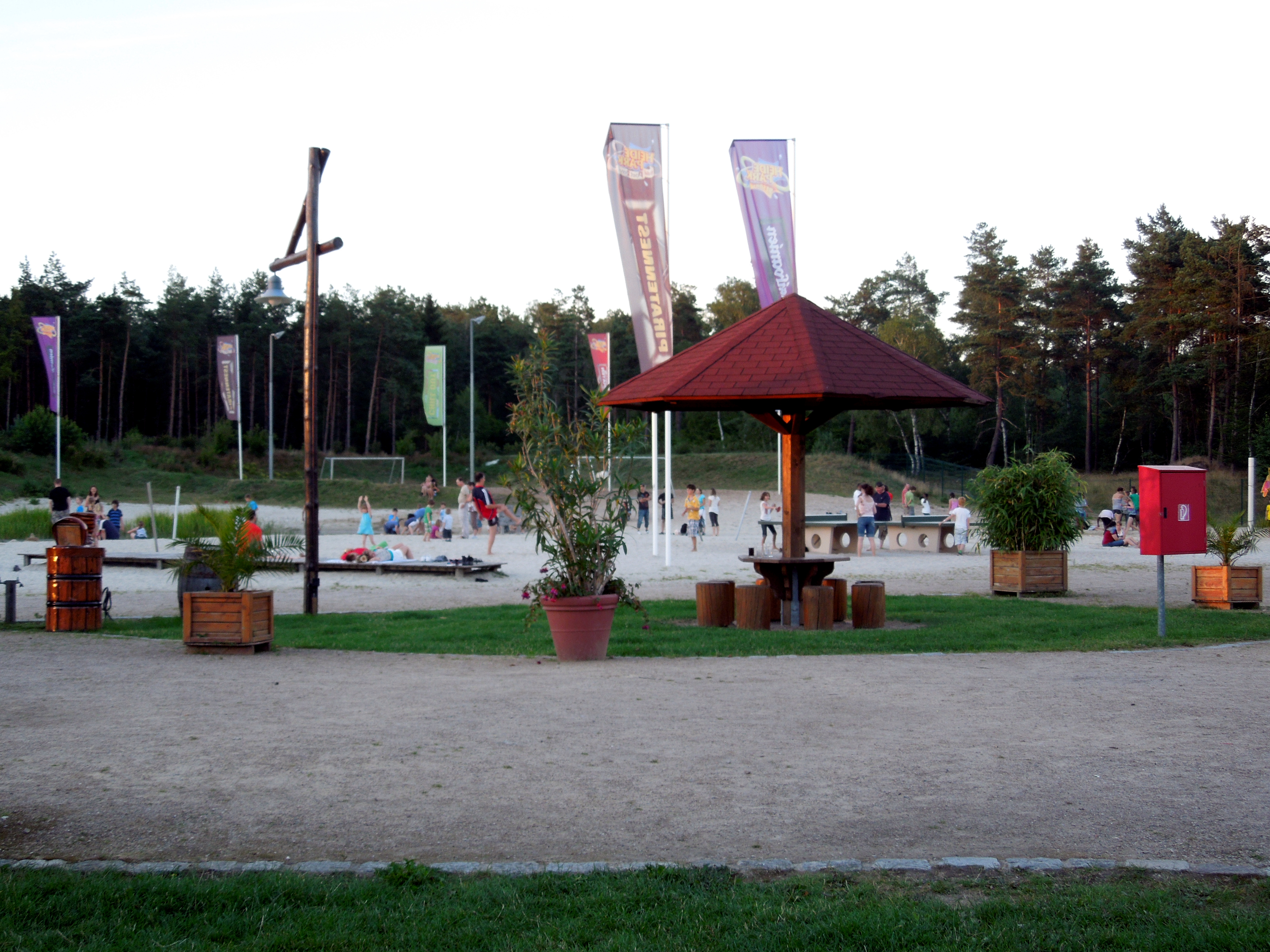 Neben dem Haupthaus befindet sich eine sehr große Sandfläche, in der auch ein kleiner "Tümpel" liegt (mit wahnsinnig vielen Fröschen). Weiterhin befindet sich darauf ein Fussballfeld sowie ein Volleyballfeld. So wie ich das mitbekommen habe gab es für die Kleinen sogar Animationsprogramm.