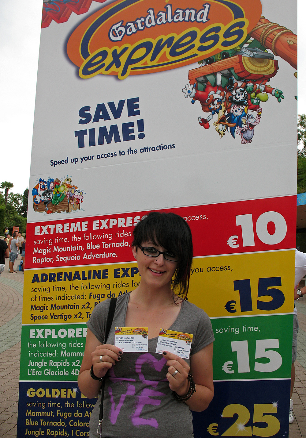 Ein Besuch des Gardaland lohnt. Vor allem, wenn man sowieso in der näheren Umgebung weilt. Ohne Urlaub sieht die Sache allerdings wieder anders aus. Raptor hat uns gut gefallen, ebenso die Themenfahrt I Corsari und die Atlantis-Rundreise per Boot. Die Neuheit 2012 hingengen ist eher lachhaft. Der Ice Age-4D Film ist nur ein lumpiger Zusammenschnitt des letzten Kinofilms, deren Bewegungen der Sitze nicht zum bewegten Bild passen.