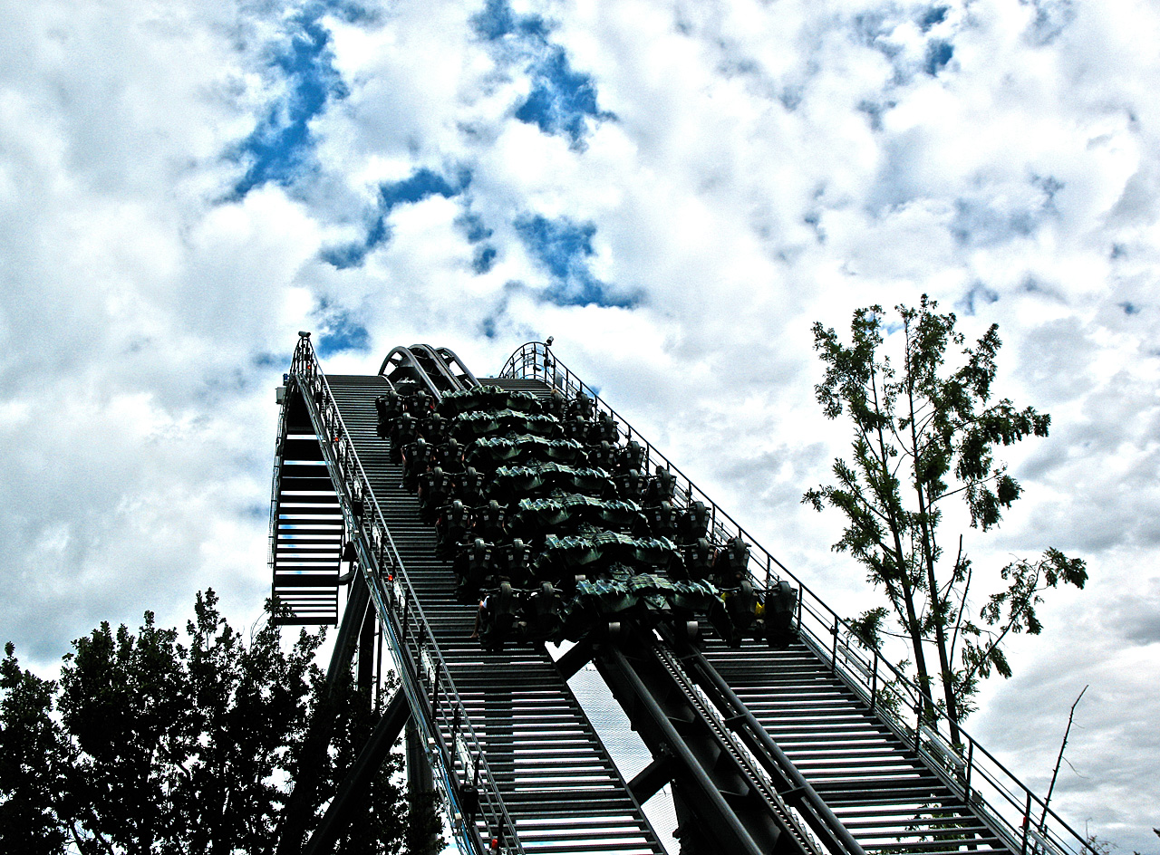 Nach einer "Mirabilandia-Pleite"* (600 Km eigentlich fast umsonst) wollten wir es am letzten Urlaubstag nochmal wissen und besuchten das Gardaland. Das Wetter sah am Morgen noch ganz gut aus. Bedeckt, nicht zu heiß. Also ab in unseren Punti...