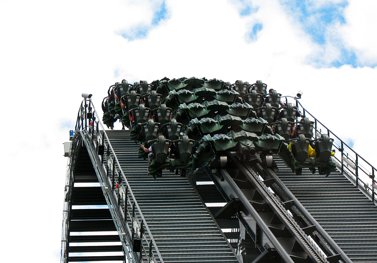 Die Bestie bietet ein tolles Fahrgefühl und in der hintersten Reihe zumindest beim ersten Drop Airtime.