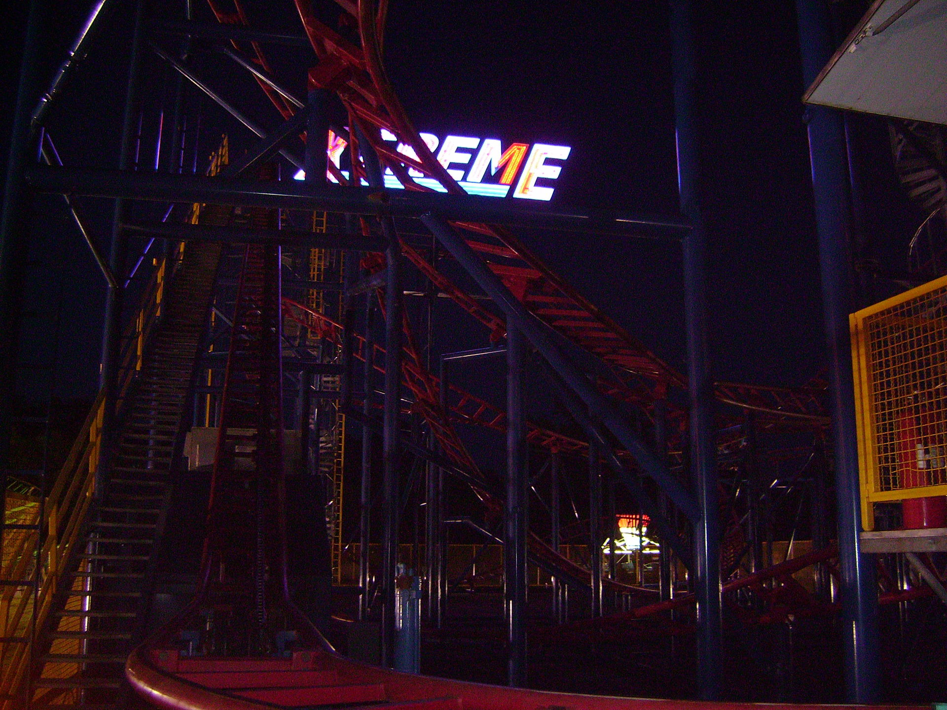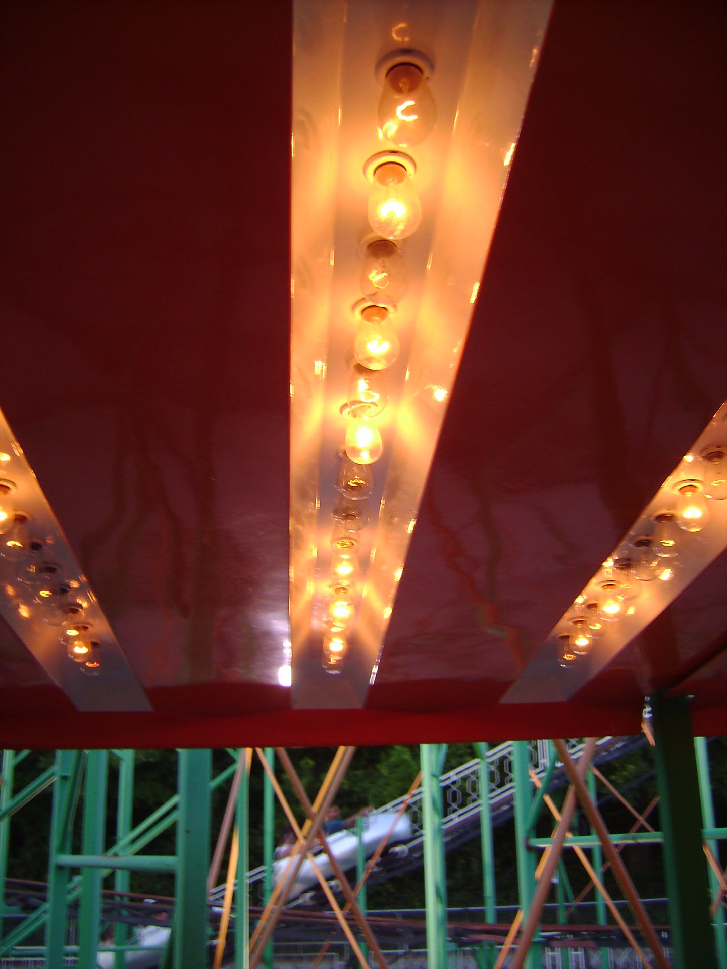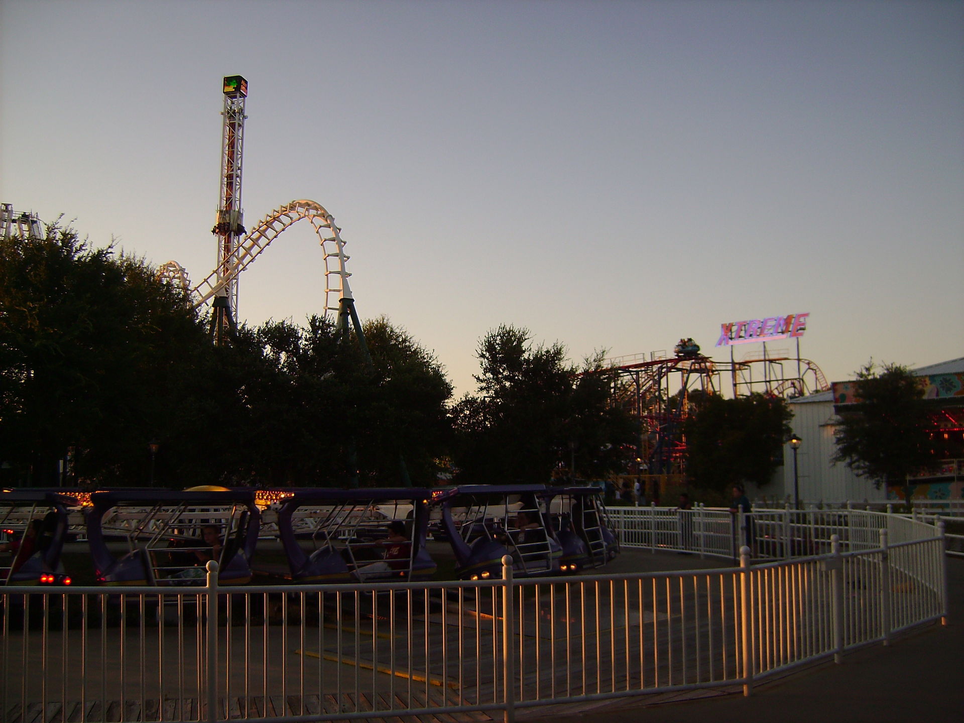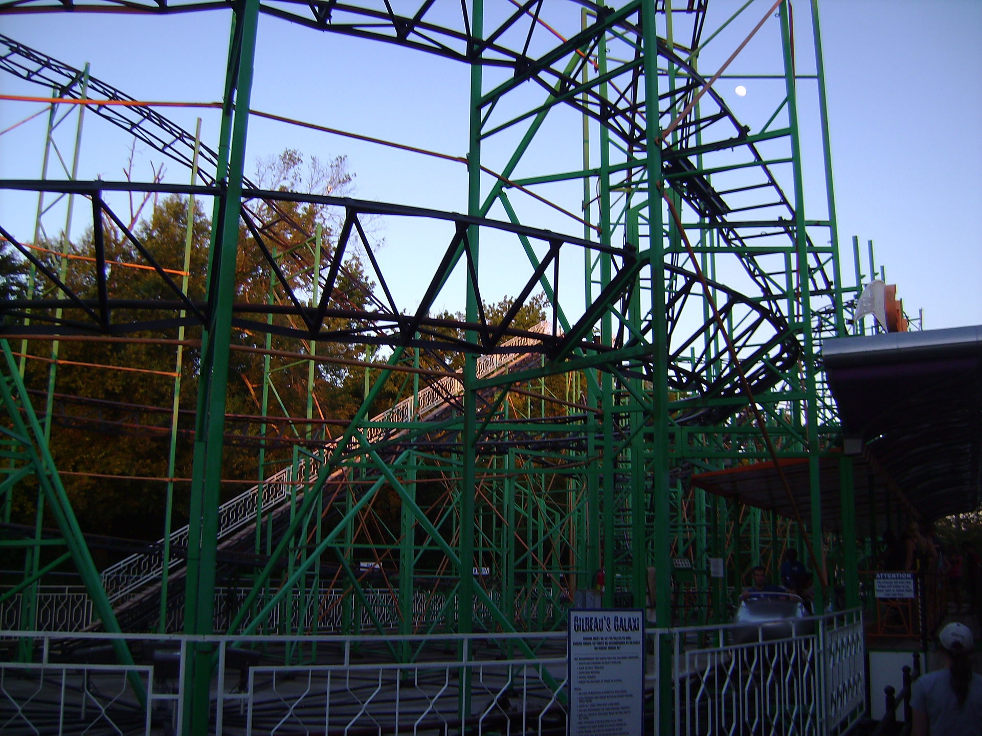 Es wird dunkel und daher Zeit, die letzten beiden Achterbahnen anzusteuern, bevor meine Kamera die verwackelten Bilder mangels Licht noch unschärfer macht. Oder, was noch schlimmer wäre, wir den Galaxi nicht mehr fahren könnten.