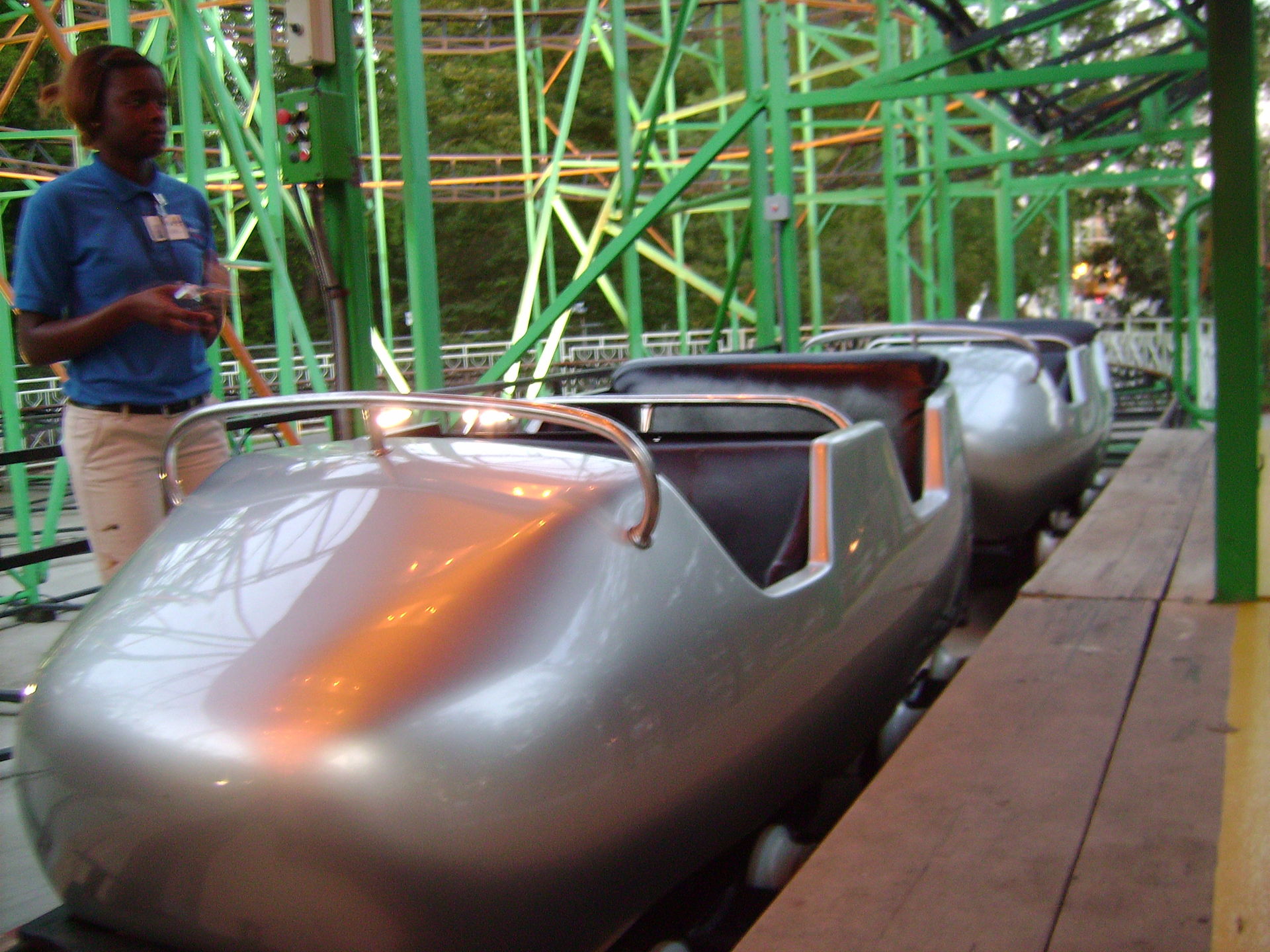 Tja, das war wohl nichts, der Coaster hat in unserer Wertung somit schon verloren, bevor die Fahrt überhaupt beginnt. Eine Getrenntplazierung von Anita und mir führt zwingend und grundsätzlich zur Abwertung einer Achterbahn (sofern es sich nicht um eine 24h Coasterchallenge handelt), da kann auch das dann doch wider Erwarten auftretende Spnning der Chaise nichts mehr gut machen. Zur Strafe gibt’s nur ein schlechtes Bild der Bahn: