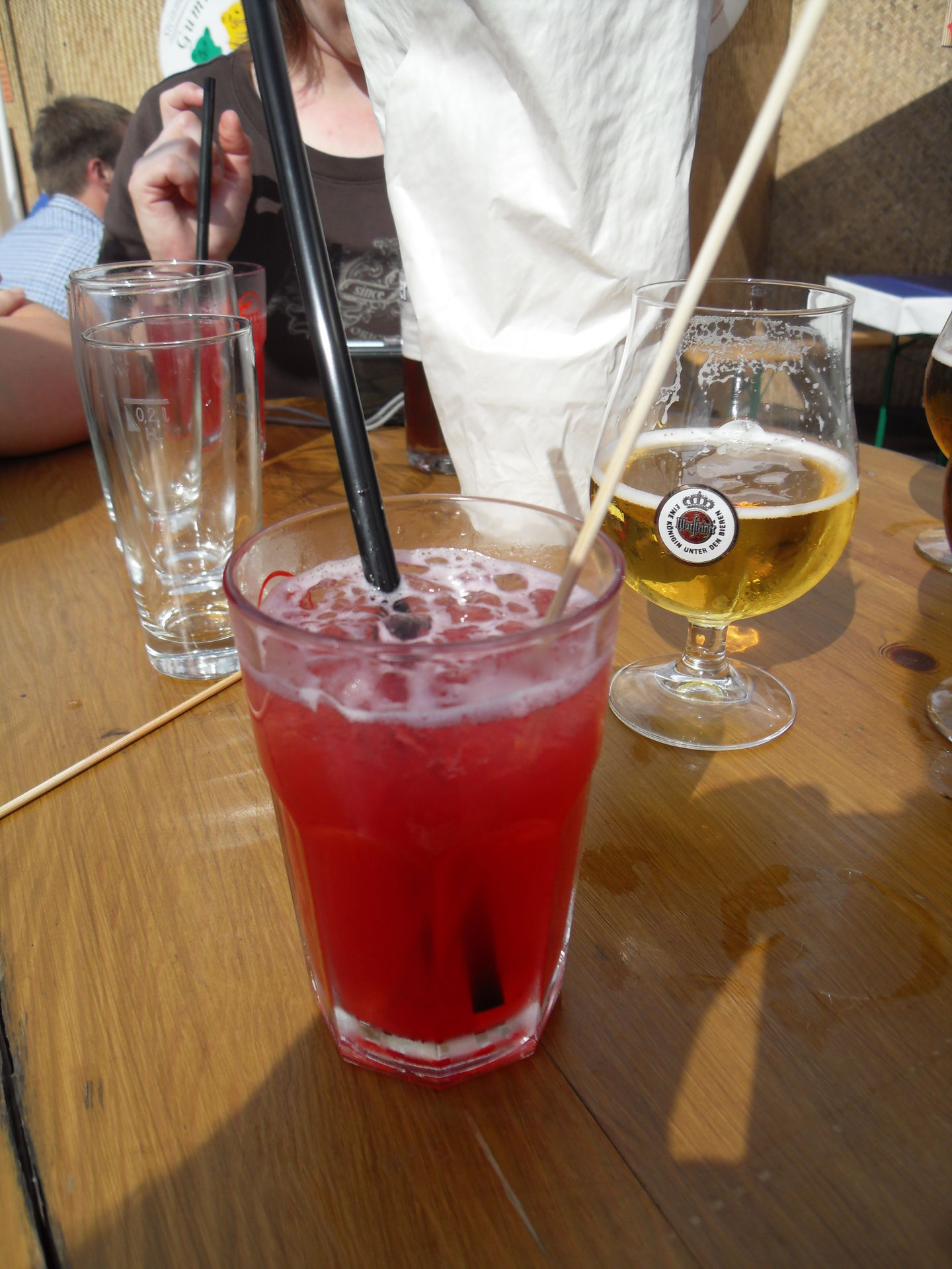 Nach fast einer kompletten Runde war dann ersteinmal eine längere Pause angesagt. Es ging ins Steinmeisters, einen Ort, an dem wir später am Abend traditionsgemäß den langen Tag zur Vollendung bringen sollten. Aber auch jetzt gab es schon lecker Altbierbowle, Bier, Gummibärchenschnäpse und Gummibärchencocktails. Man trank sich schon mal warm. Nachdem auch alle gesättigt waren ging es aber erst noch auf eine weitere Runde über den Kirmesplatz.