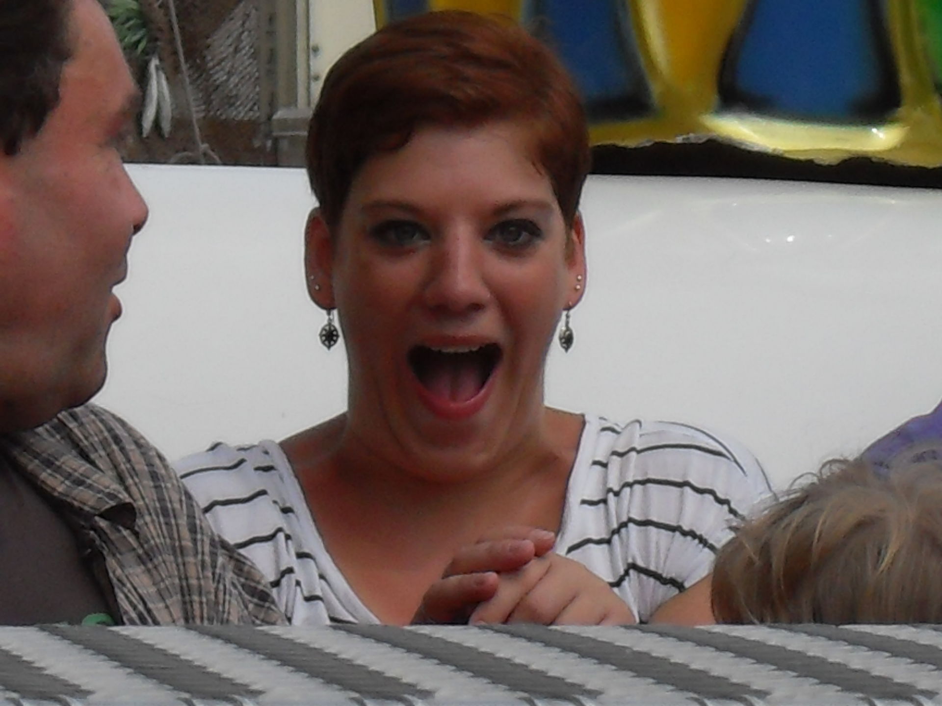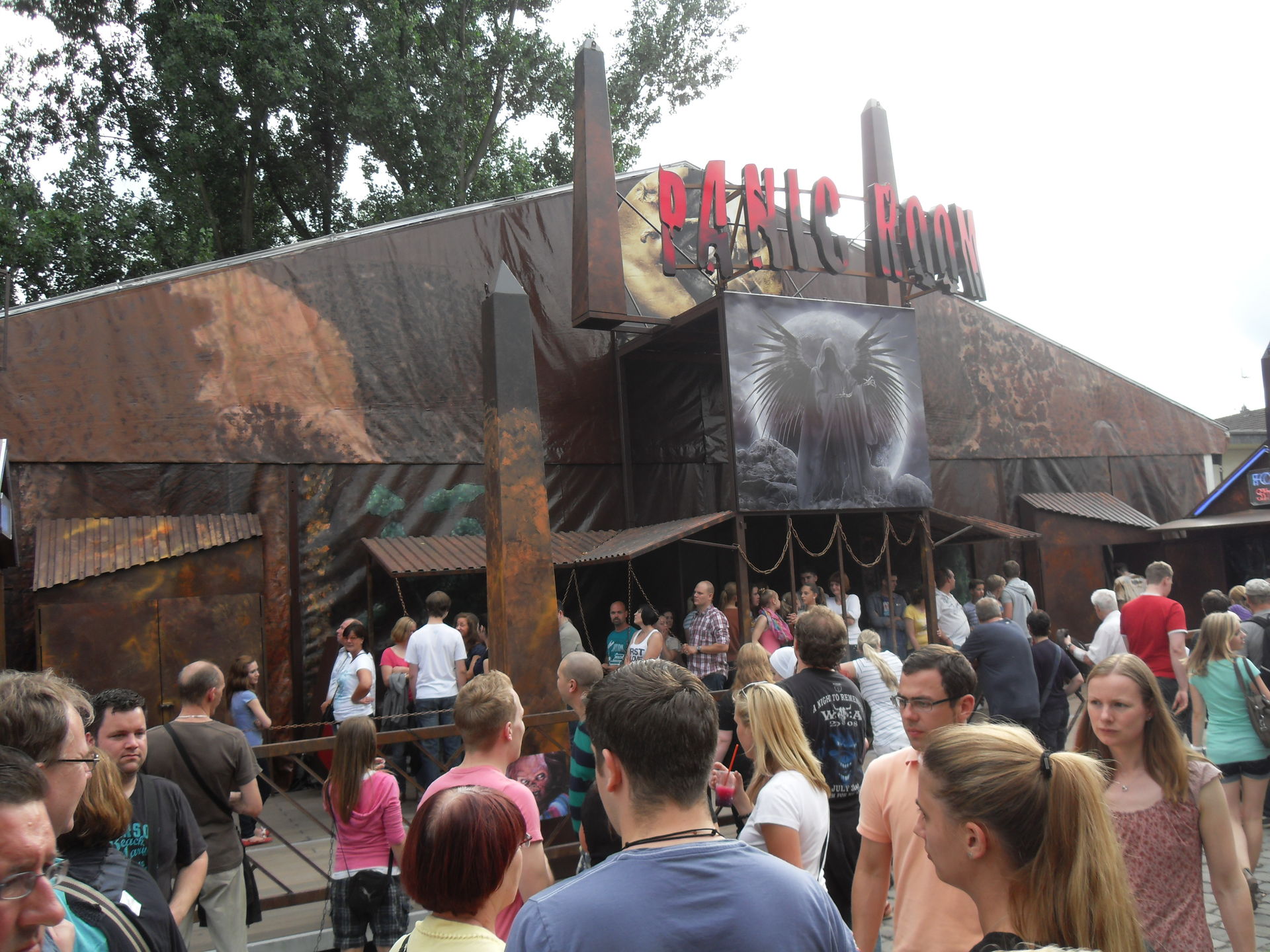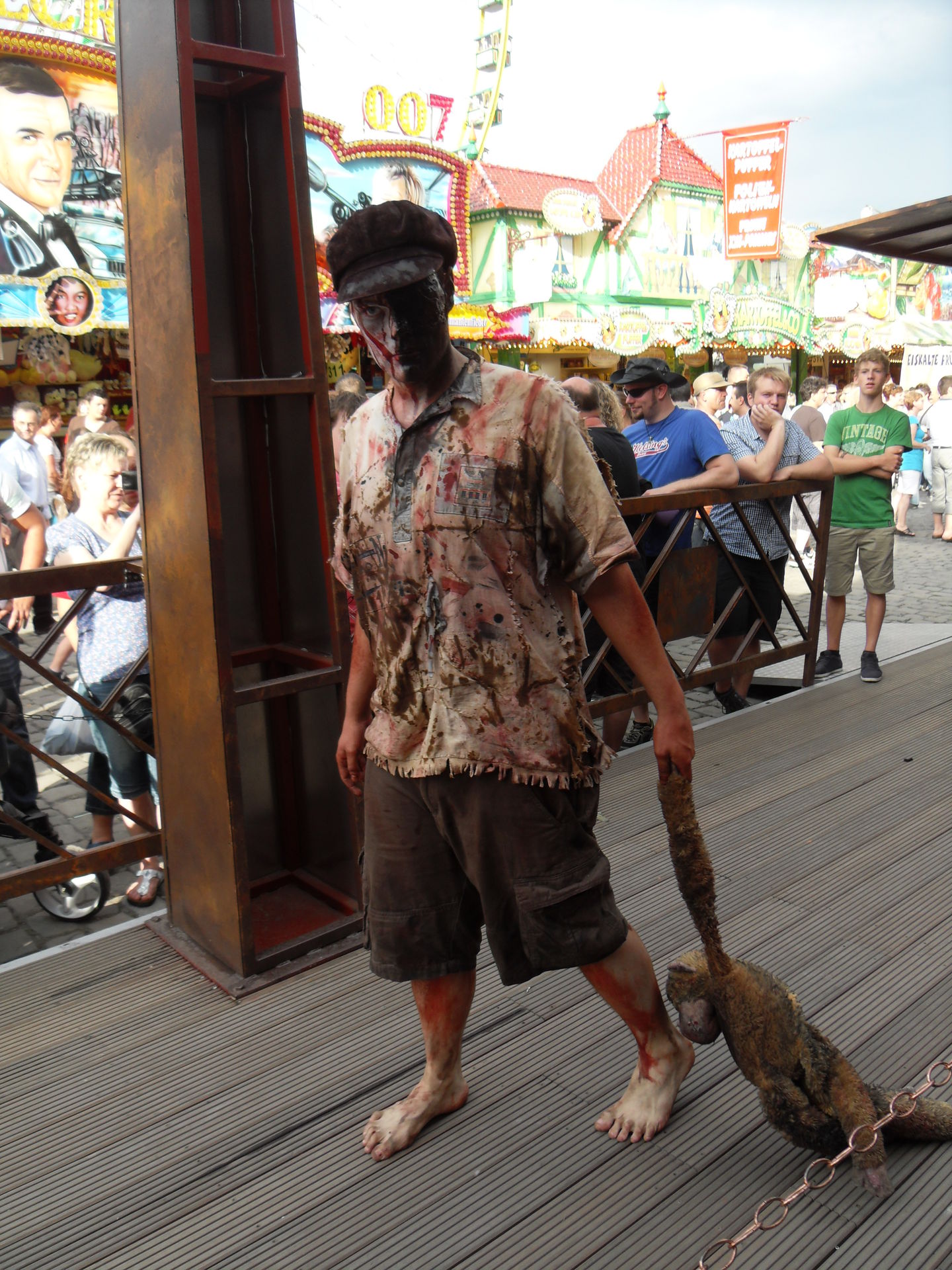 Dann der Preis. Der nächste Schocker. Der Schausteller hatte groß auf der Crange Page einen Eintritt von 3 Euro angegeben und was kostet das Ding letztendlich- 5 Euro! Nunja, man muss halt mitreden können also besuchten Hexe, Jana und ich den Panic Room. Keine Veränderung zu vorher, es ist tagsüber viel zu hell innen, keinerlei Deko bis auf ein paar Stangen und Tische, dafür gibts jede Menge Live Akteure im Inneren die das ganze aber nicht rausreißen können. Gut, wenn man schreckhaft ist, dann erschreckt man sich trotzdem aber im großen und ganzen ist der Panic Room dann doch eine Enttäuschung gewesen, was könnte man da alles draus machen...