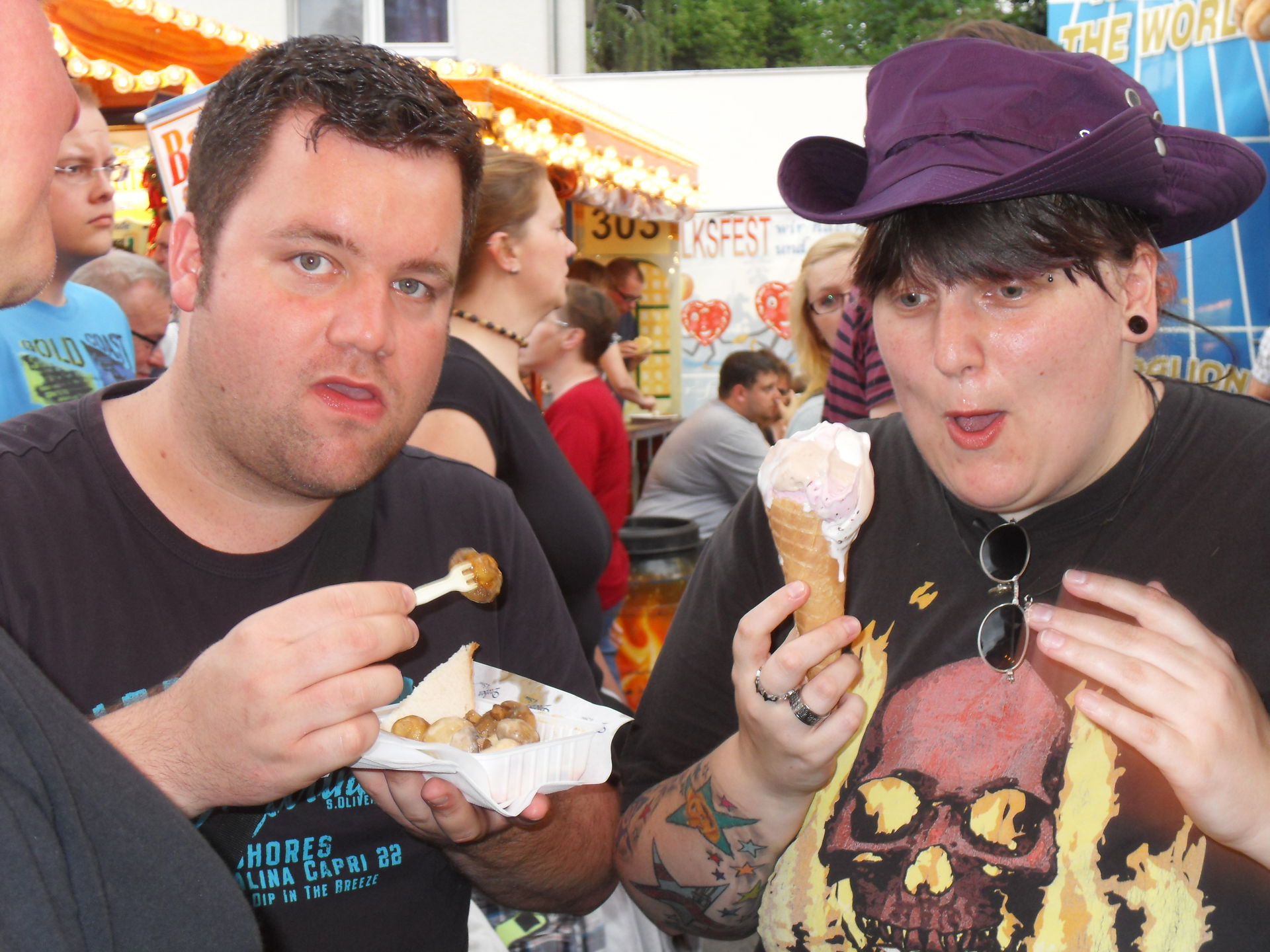 Nun hieß es weitere verrückte Leute einzusammeln und dann gemeinsam über den Platz zu bummeln, was essen, was fahrn, was trinken, was auch immer. Die Gruppe wurde von Minute zu Minute größer und somit zogen wir denn alle bestens gelaunt über die Cranger Kirmes 2012.