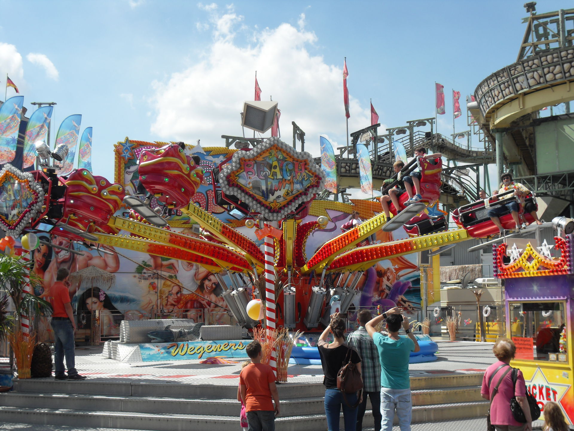 Einen ziemlichen Verlust bei dem Wetter und dem Andrang dürfte gestern die große Wildwasserbahn gemacht haben. Da ging nämlich nichts. Von 13.00 Uhr bis 19.00 Uhr fuhr da nicht ein einziges Boot über den Wildwasserkanal, da hat es wohl größere technische Probleme gegeben. Wie es danach weiterging weiss ich leider nicht. Aber sechs Stunden bei vollem Platz und Hitze stillstehen war so bestimmt nicht eingeplant.