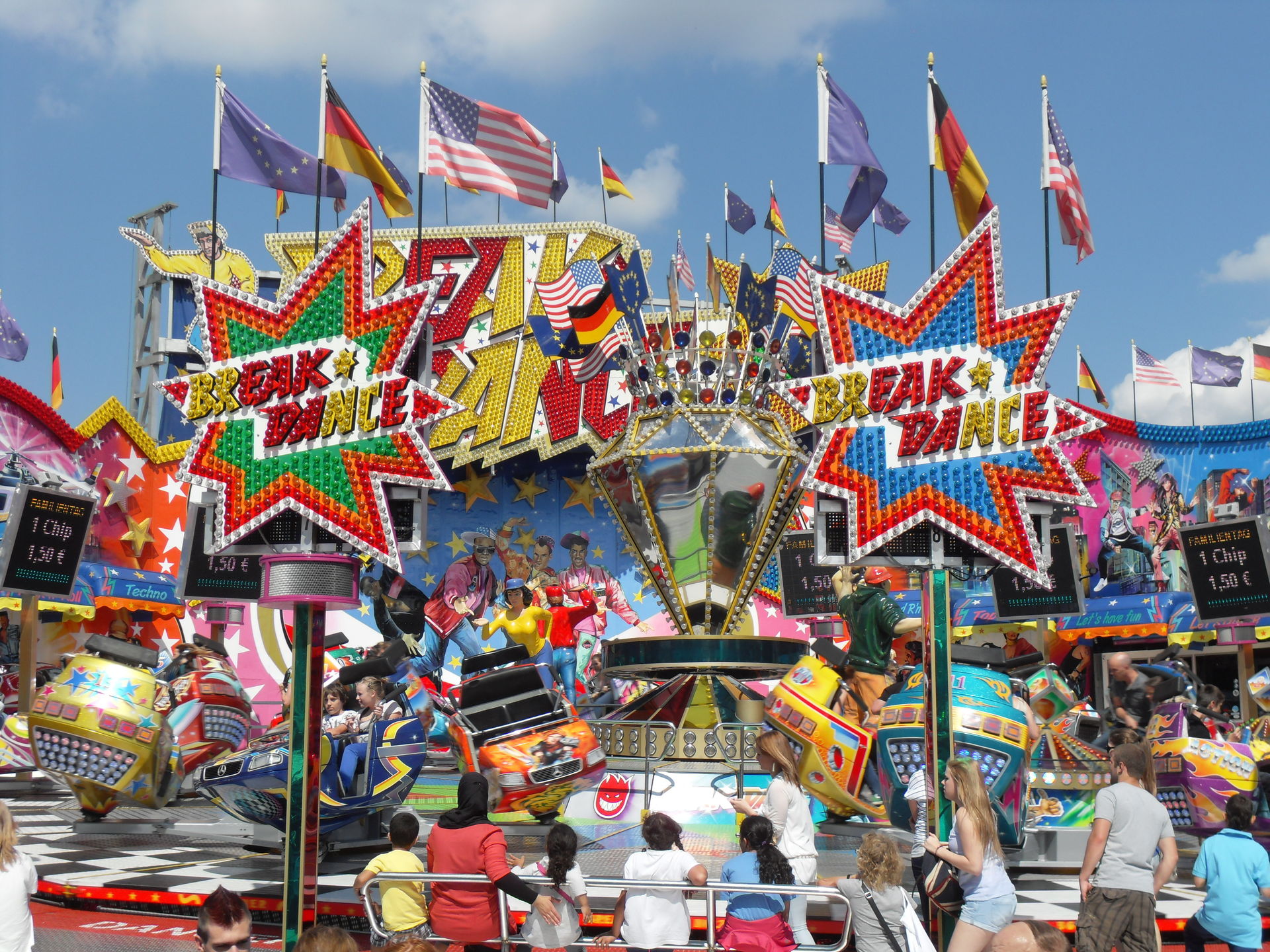 Die Schausteller hatten ihre Preise gesenkt, teils bombastisch, teils unverschämt. Bombastische Beispiele: Breaker für 1,50, Fischbrötchen für 1,00 Euro, Beach Jumper 2,00 Euro, Kentucky Derby 4 Spiele für 5,00 Euro. Unverschämtestes Gegenbeispiel: Vodoo Jumper 3,00 Euro statt 3,50 Euro. Wow! Die 50 Cent kann er sich in die Haare schmieren.