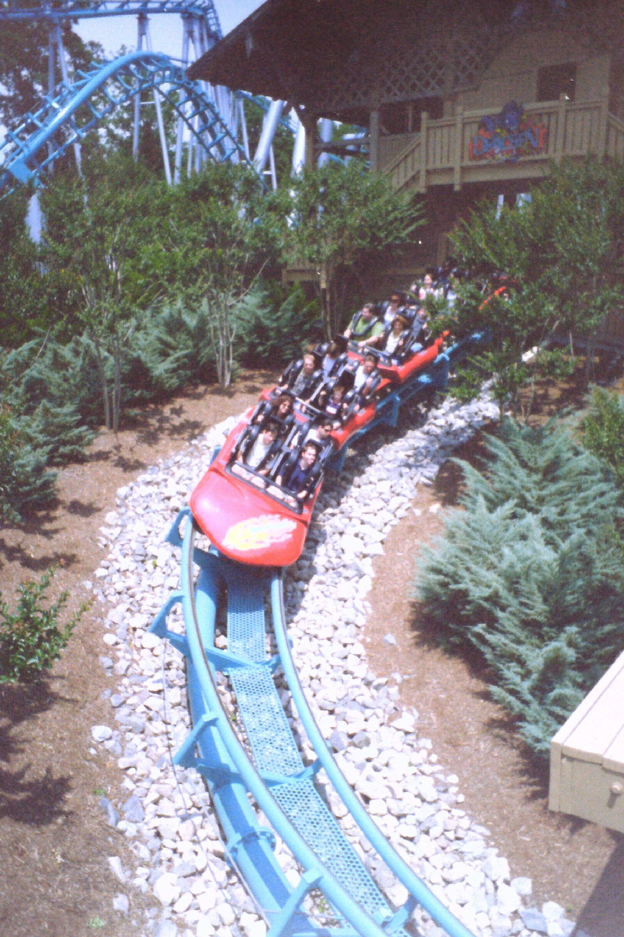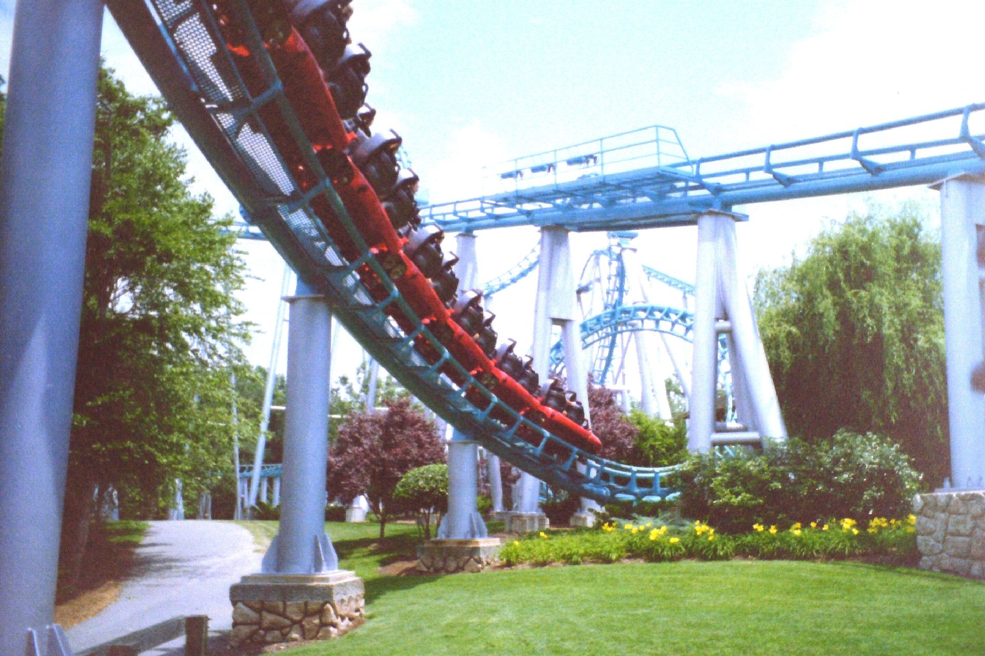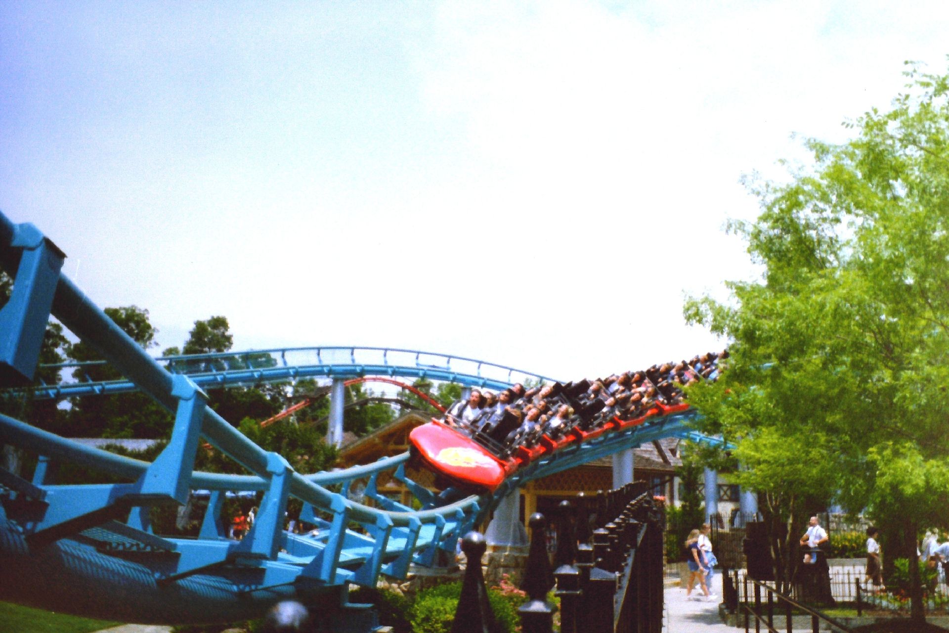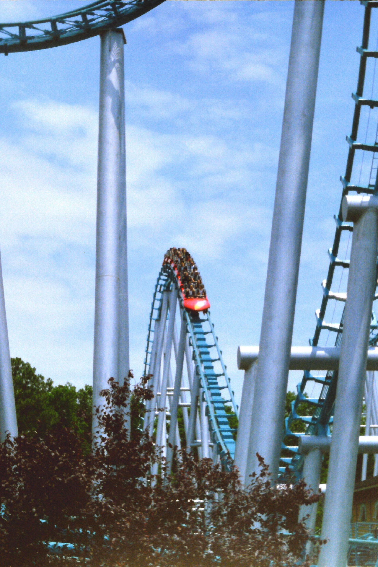 Original noch mit 6 Inversionen ausgestattet wurde der "diving Corkscrew" 1994 entfernt womit die Bahn dann noch 5 Inversionen besaß.