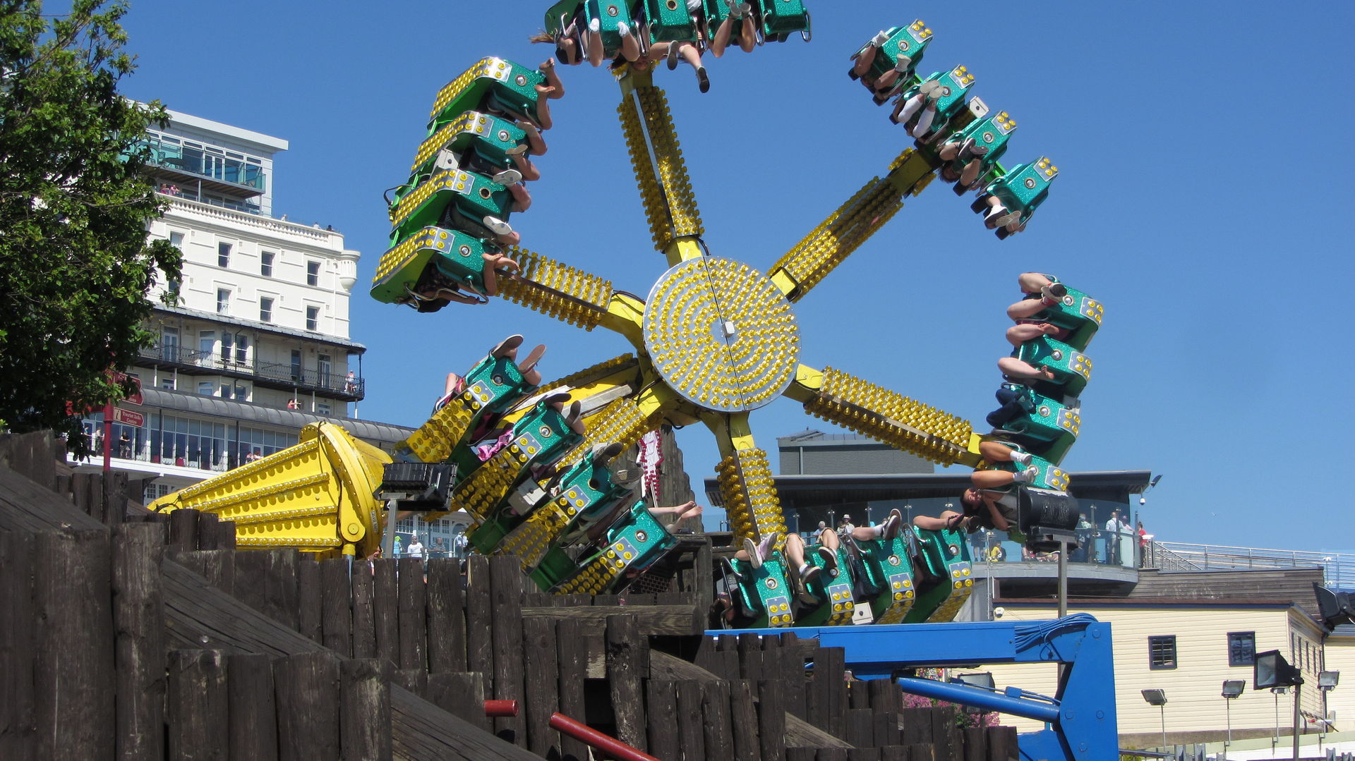 Für die Unwissenden unter euch: Es handelt sich hierbei nicht um einen klassischen Park, bei dem man Eintritt zahlt und alles fahren kann. Es ist eher eine Art ständige Kirmes wie es sie in England scheinbar ziemlich häufig gibt. Jeder kommt gratis auf das umzäunte Gelände und muss nur für die Attraktionen zahlen, die er fahren bzw. nutzen will. Bzw. er muss sich ein passendes Wristband kaufen. Wir haben uns natürlich eines besorgt, welches uns alle Möglichkeiten gab und schon konnte es losgehen.