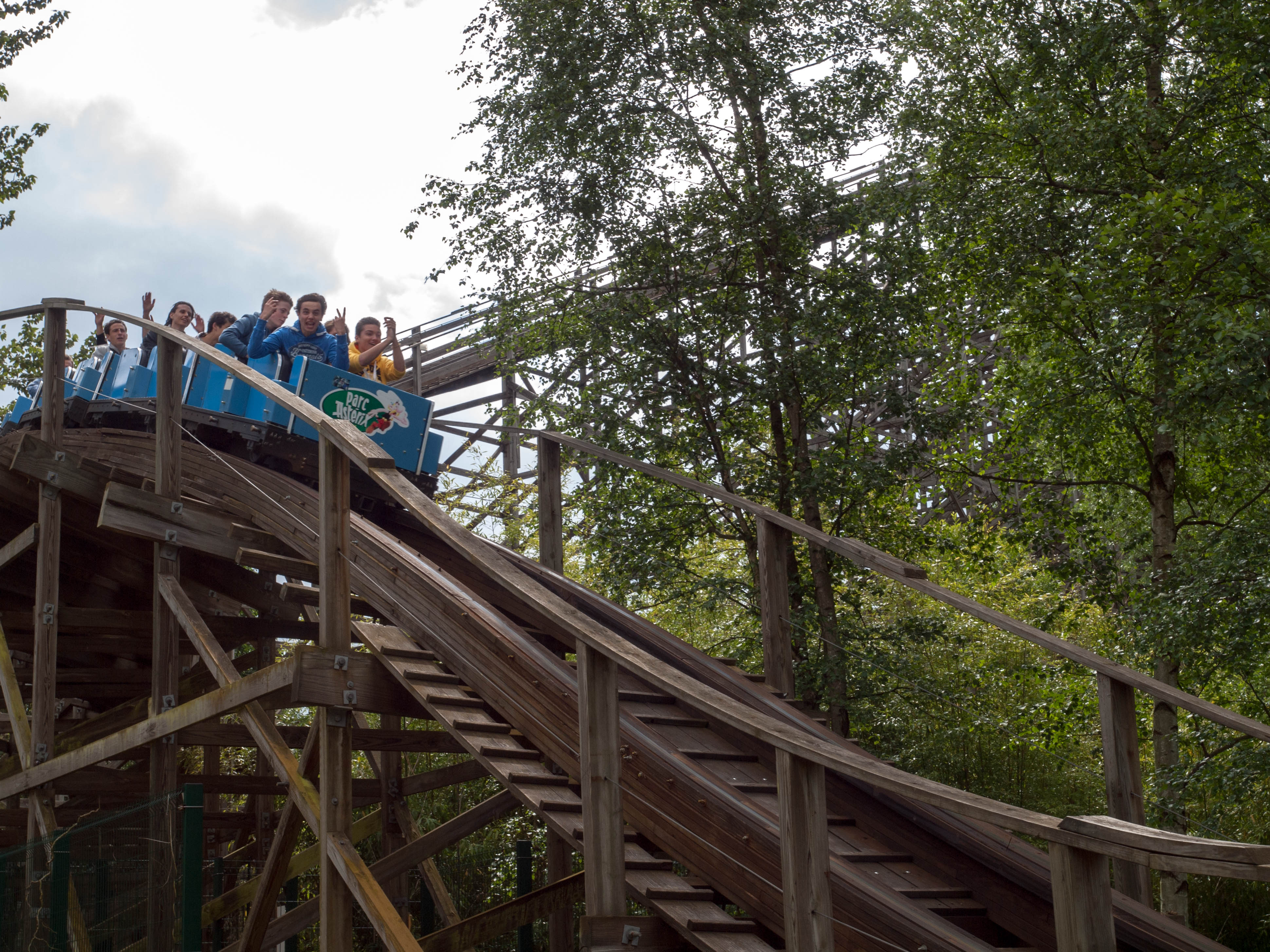 Direkt nach Vol D'Icare ging es dann zu Tonnerre de Zeus.Ich gebe zu. Bis letztes Jahr war ich absolut kein Freund von Holzachterbahnen. Im Nachhinein lag das aber wahrscheinlich eher daran, das ich noch nicht die richtigen Gefahren war. Seit Efteling und der England Tour sieht das anders aus. Tonnerre de Zeus ist zwar nicht die sanfteste Bahn, hat mir aber trotzdem jede Menge Spass gemacht.