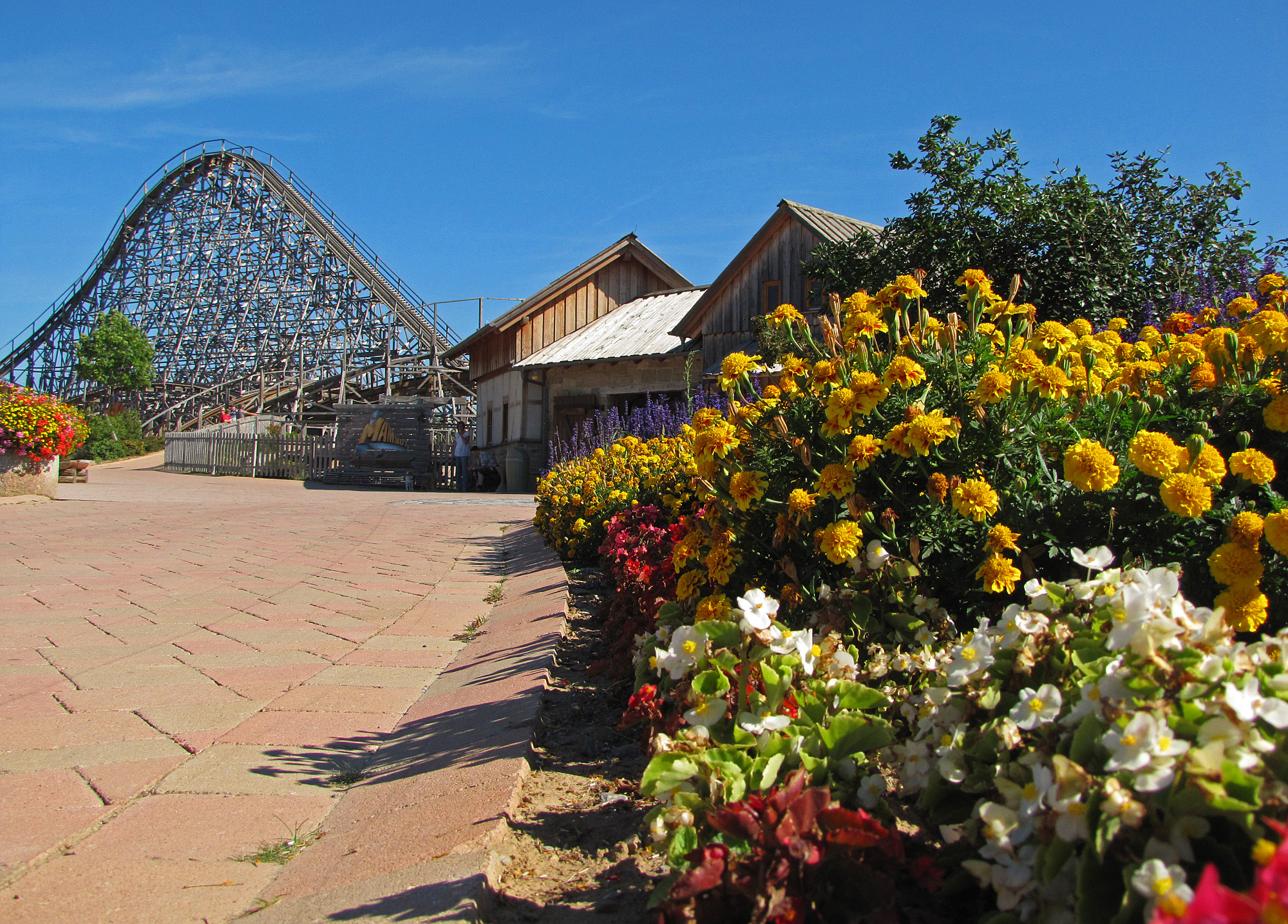 Überall blühen farbenfrohe Blümchen, es gibt gemütliche Biergärten und liebevoll gestaltete Bereiche. Fast ein Europapark in Miniaturausführung, was die Gestaltung des Parks angeht.