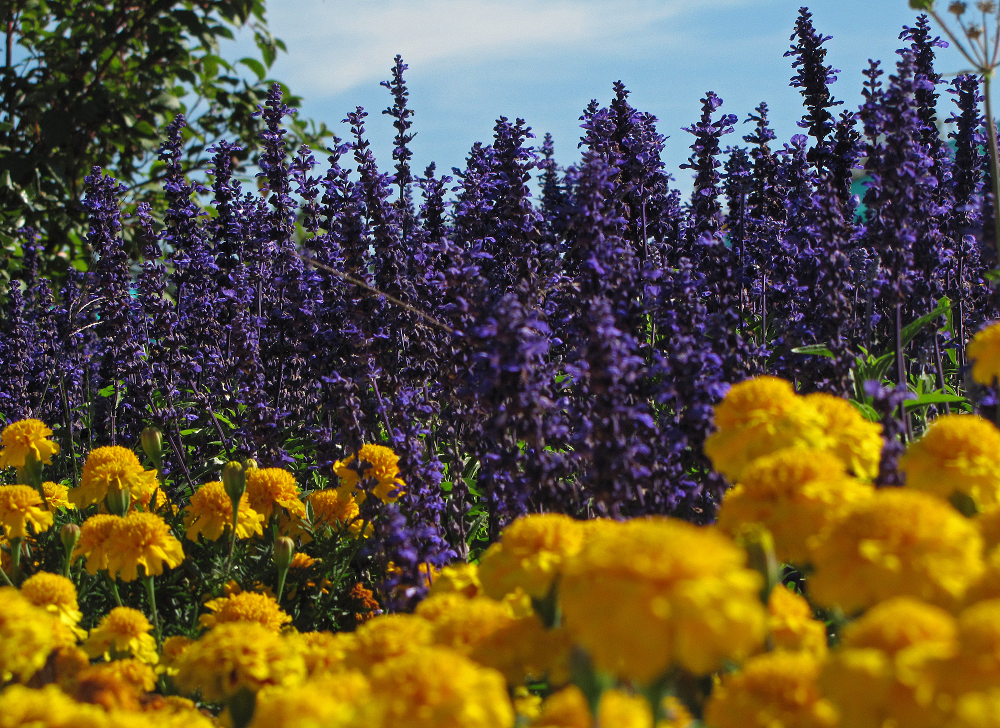 Herrlich farbenfrohe Blumen überall im Park. Tolle Sommerstimmung.