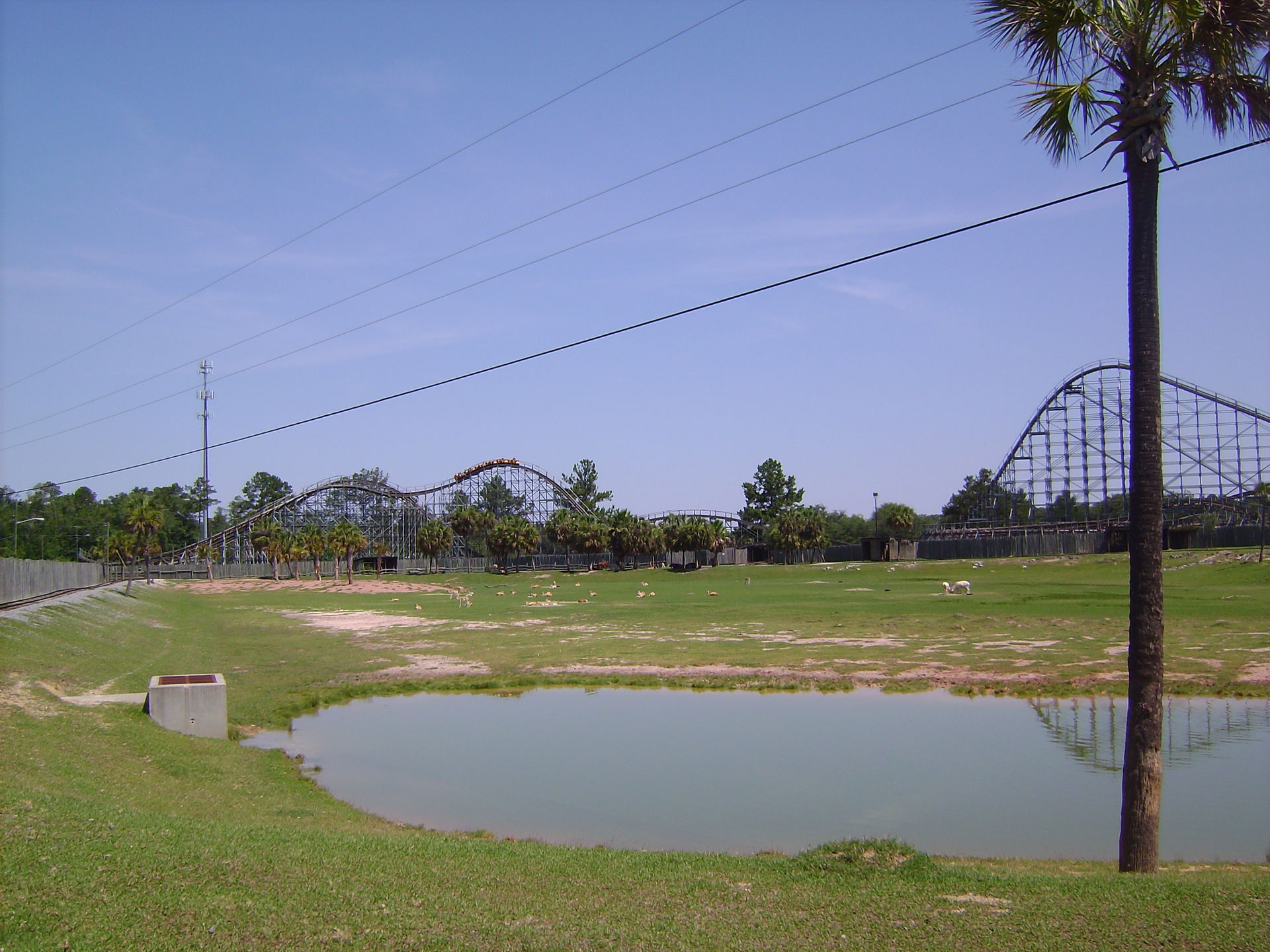 Nette Bahn, nicht überragend, aber immerhin wagen wir dank leerer Queue die eine oder andere Wiederholungsfahrt, bis uns schließlich die sengende Savannensonne so sehr aufheizt, dass wir dringend eine Abkühlung brauchen.