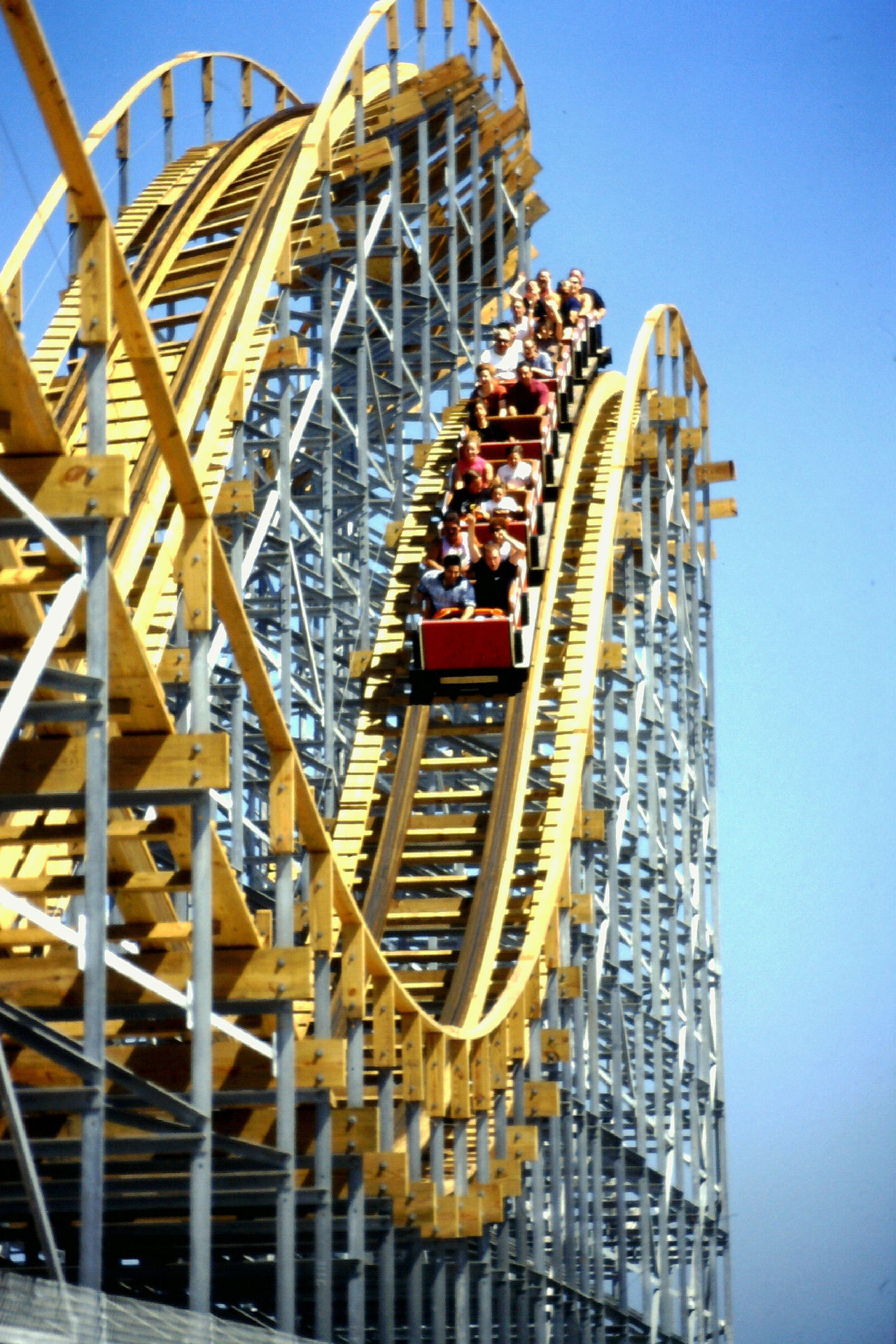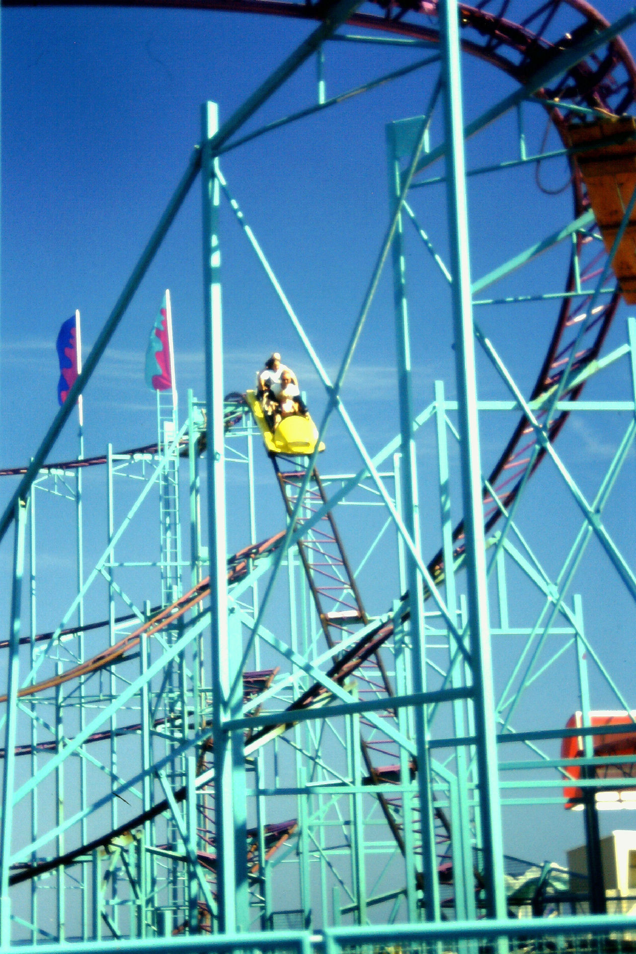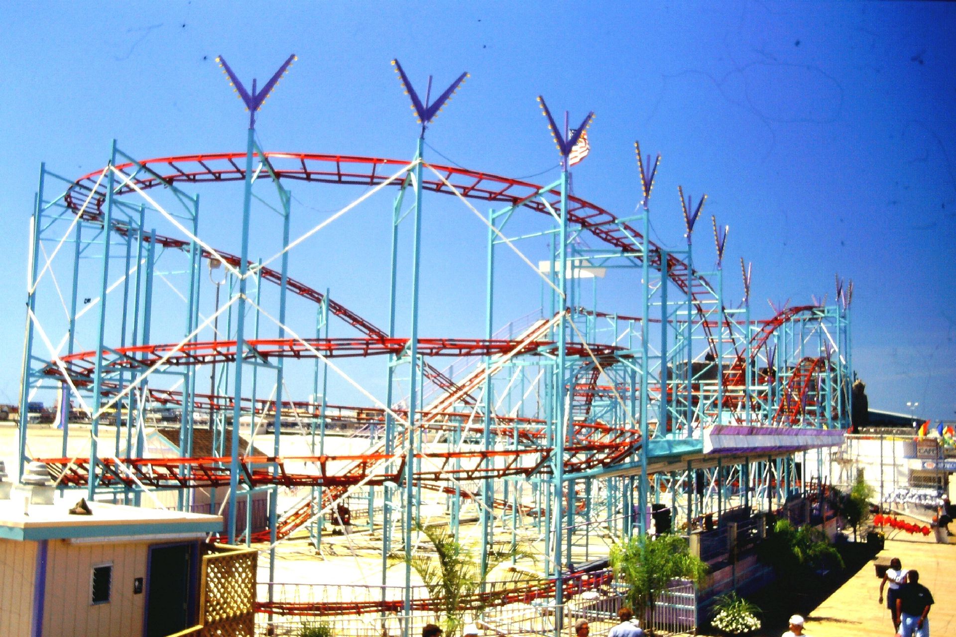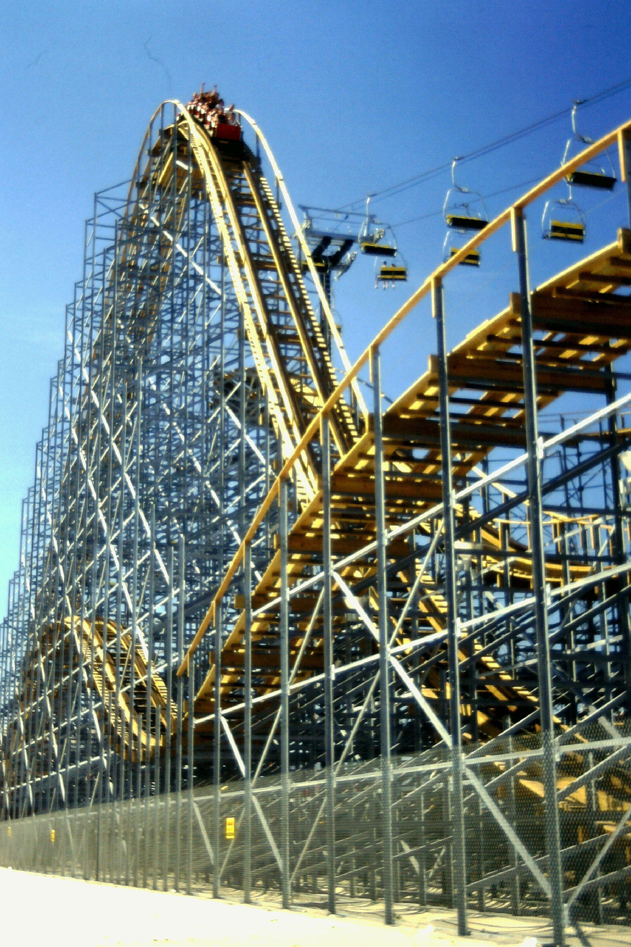 The Great White, ein Hybrid von CCI mit absolut toller Fahrt damals im Eröffnungsjahr 1996. Besonders war bzw. ist immer noch die 180 Grad Kurve nach der Station zum Lift hin die unter dem Pier durchfahren wird.