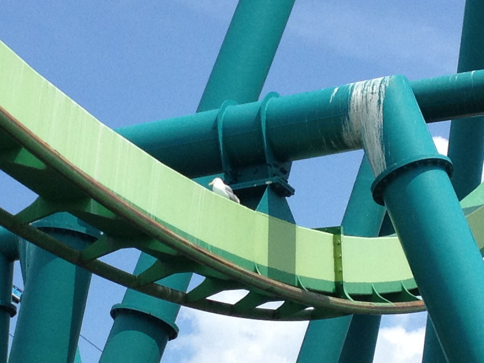 Da wir ja am Tage zuvor das Glück hatten, V2 in Great America zu fahren, gleichzeitig aber das Pech hatten, dass die V2 zwischenzeitlich ohne Bremse auf dem hinteren Teil agiert, bin ich mir nicht mehr sicher, welche Bahn ich von den beiden besser finden soll. Denn auch die ungetwistete Variante hat doch seinen gewissen Reiz.