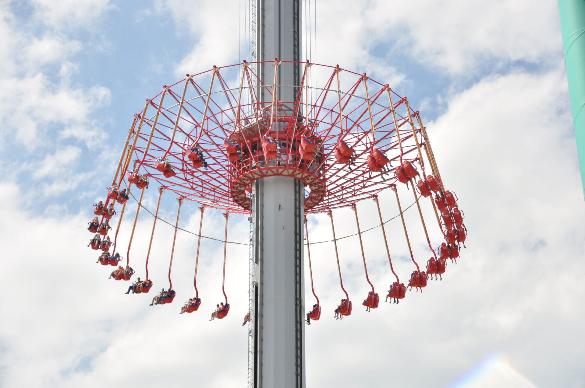 Die Anlagen sehen imposant aus, insbesondere im Dunkeln. Gegenüber den Star Flyern bieten sie doch ein wesentlich höheres Sicherheitsgefühl, allerdings fehlt hier durch die starren Befestigungen der Gondeln die Möglichkeit des Rückwärtsfahren.