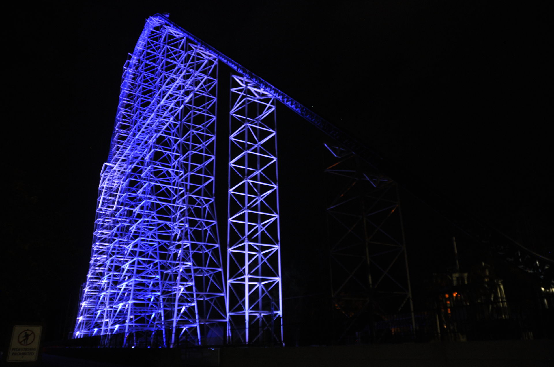 In der totalen Dunkelheit verwandelt sich der Park in ein buntes Lichtermeer, und insbesondere der Anblick aud den Lifthill von Millennium Force hat es mir wieder einmal angetan.