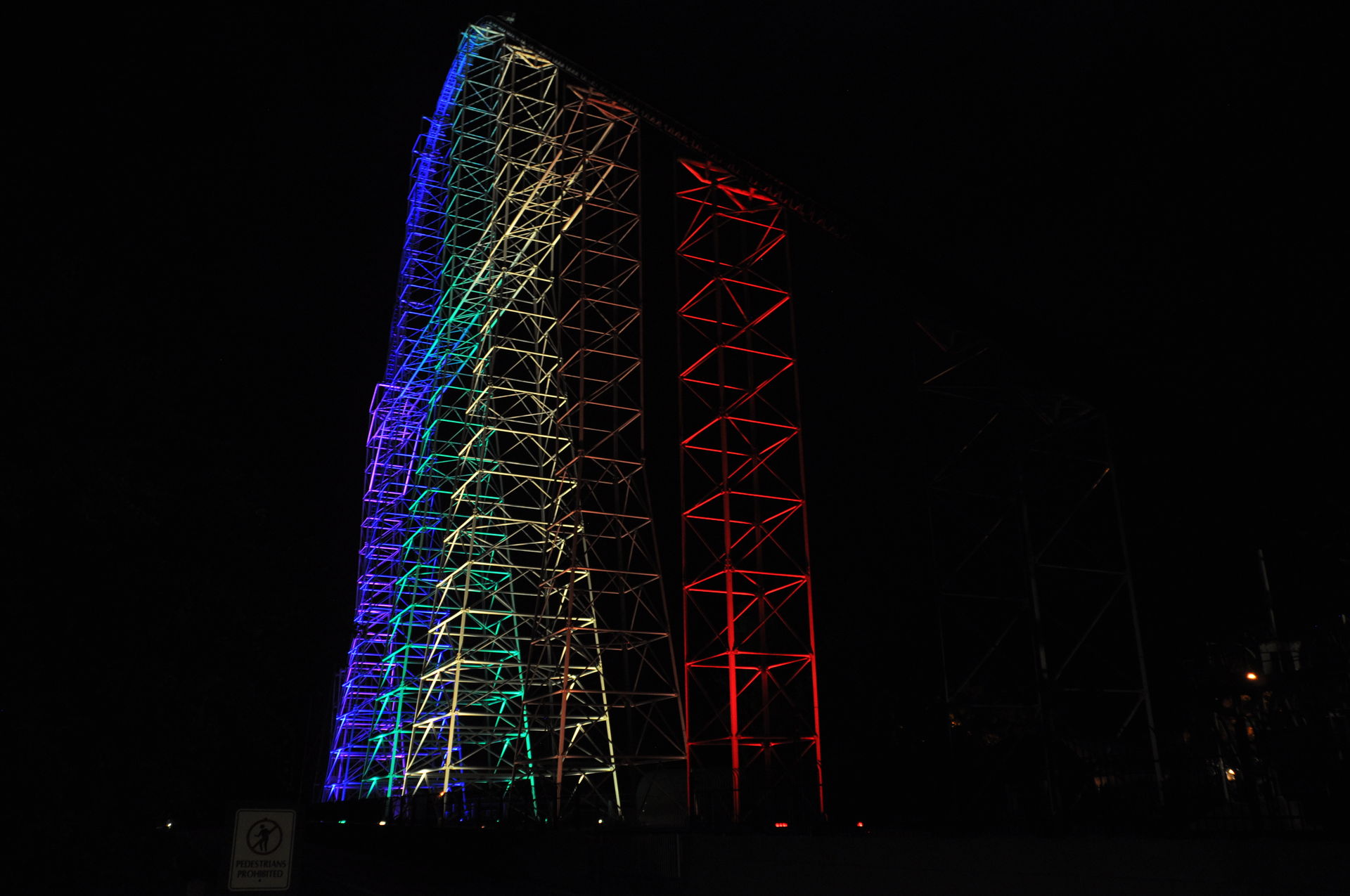 Ich muss gestehen, dass ich von der Show etwas anderes erwartet hatte. Nach den Ankündigungen rechnete ich mit einer reinen Licht- und Lasershow. Vielmehr handelt es sich aber eher um eine Art Musical (um den Gesang zu verstehen, reichen meine Englisch-Kenntnisse leider nicht aus), das ganze illuminiert von LED-Strahlern, Lasern und Feuereffekten. Zum Schluss wird auf einem Podest ein DJ in die Lüfte gefahren, der über den Besuchern Party macht.