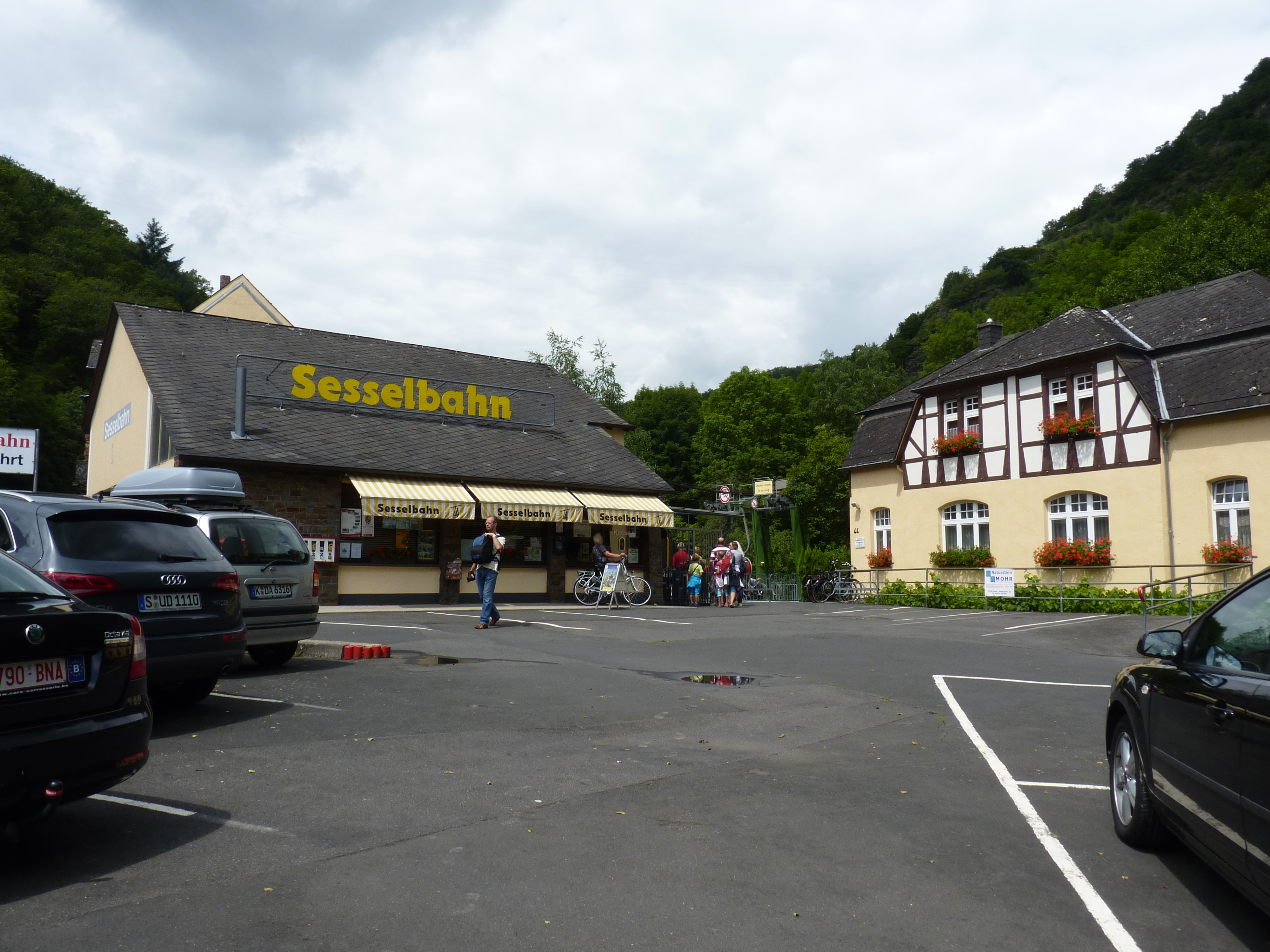 Bahnhof zur Seilbahn. Von der Bergstation zum Park etwa 15 min (Aussicht über das Moseltal inklusive)