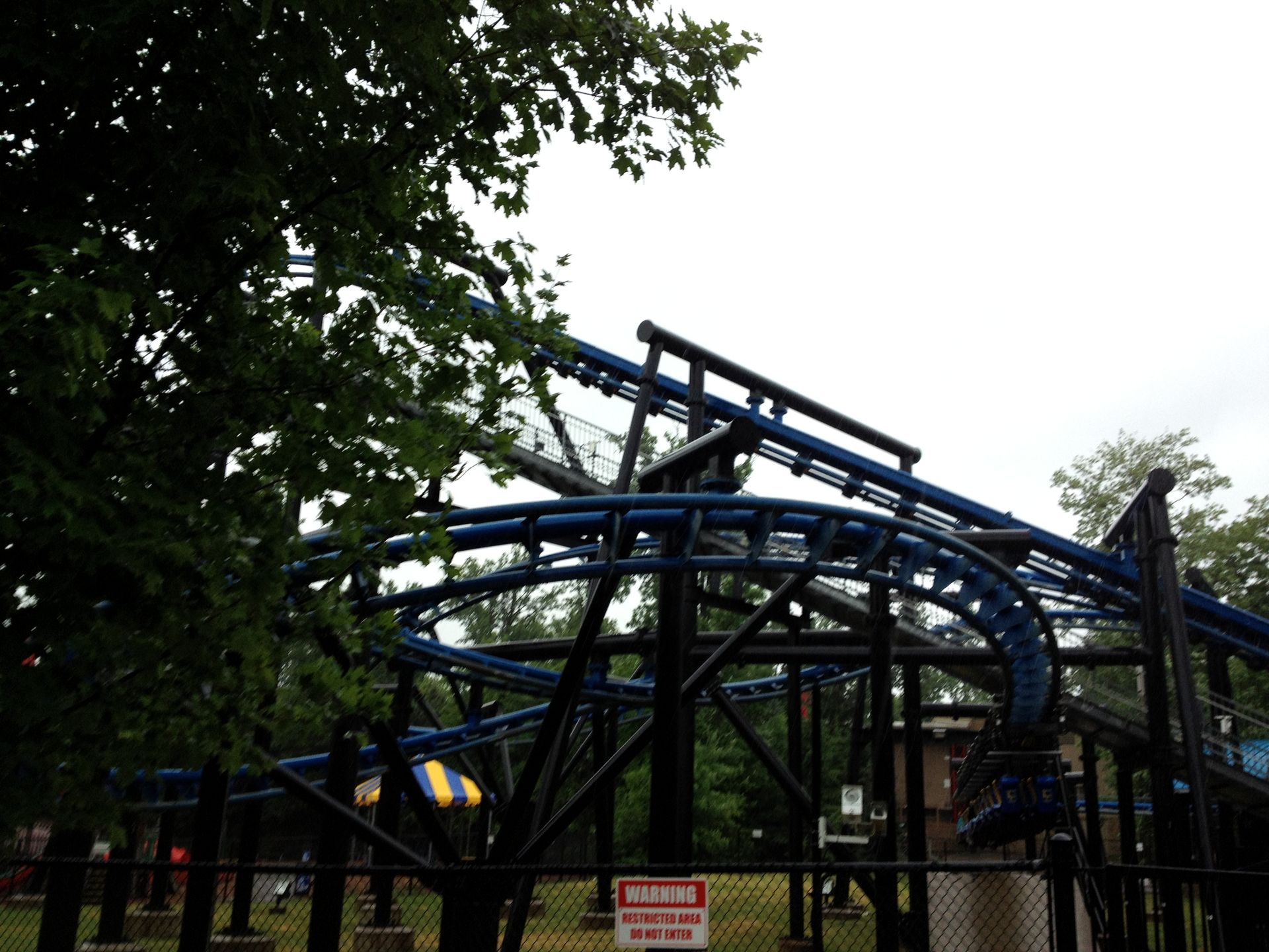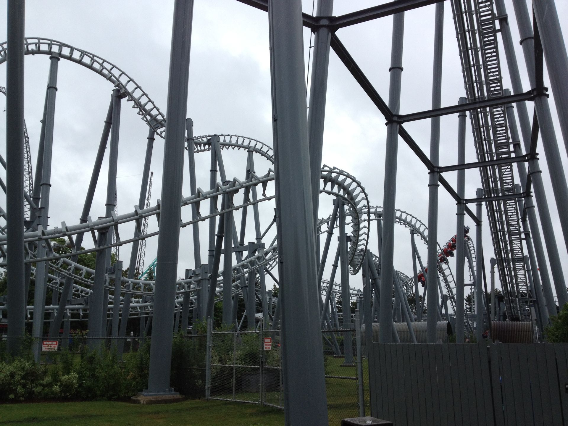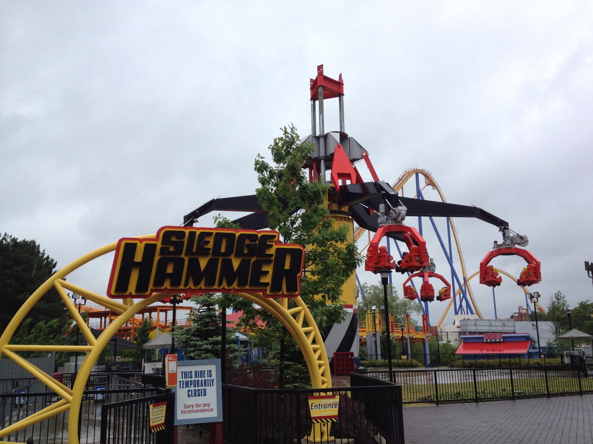 Relativ pünktlich zur Öffnung ging es dann unter strömenden Regen - und daher auch nur mit dem iPhone als fototechnische Unterstützung - hinein ins feuchte Vergnügen. Allerdings kam dann auch schon gleich am Eingang die erste grosse Ernüchterung, denn wir wurden mit einem freundlichen "Leviathan und Windseeker are closed today" empfangen. Gut, Windseeker war uns relativ egal, aber ein geschlossener Leviathan war eine mittlere Katastrophe. Naja, wir dachten uns, da müssen wir halt durch und fahren halt "nur" die anderen 15 Coaster.