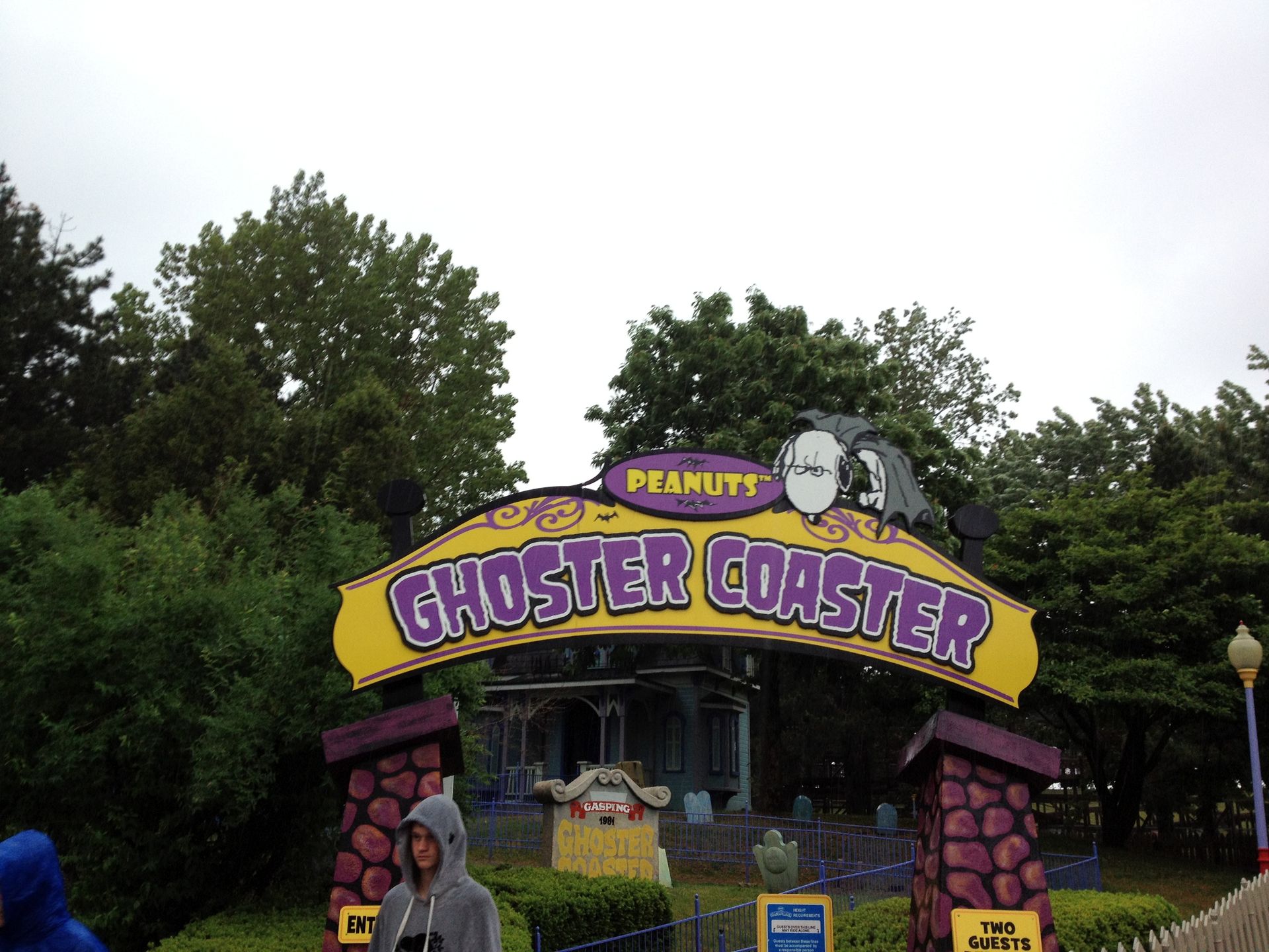 Gleich nebenan finden wir den Wooden Coaster Ghoster Coaster. Hier fanden wir einen nicht besetzten Haupteingang vor, gleichbedeutend für uns, dass die Bahn offen hat. Also schnell in Richtung Station, um dort festzustellen, dass diese Bahn heute doch closed ist.