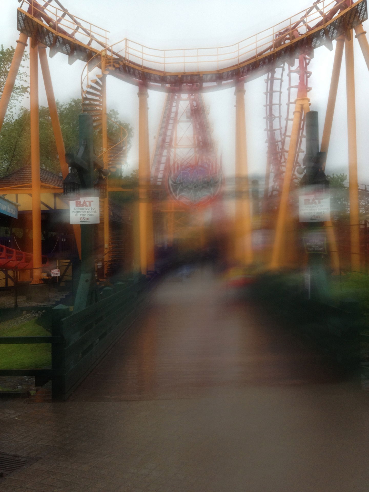 Die erste davon war Vortex, ein Arrow Suspended. In Anbetracht des Regens hat diese Fahrt aber auch alles andere als Spass gebracht.