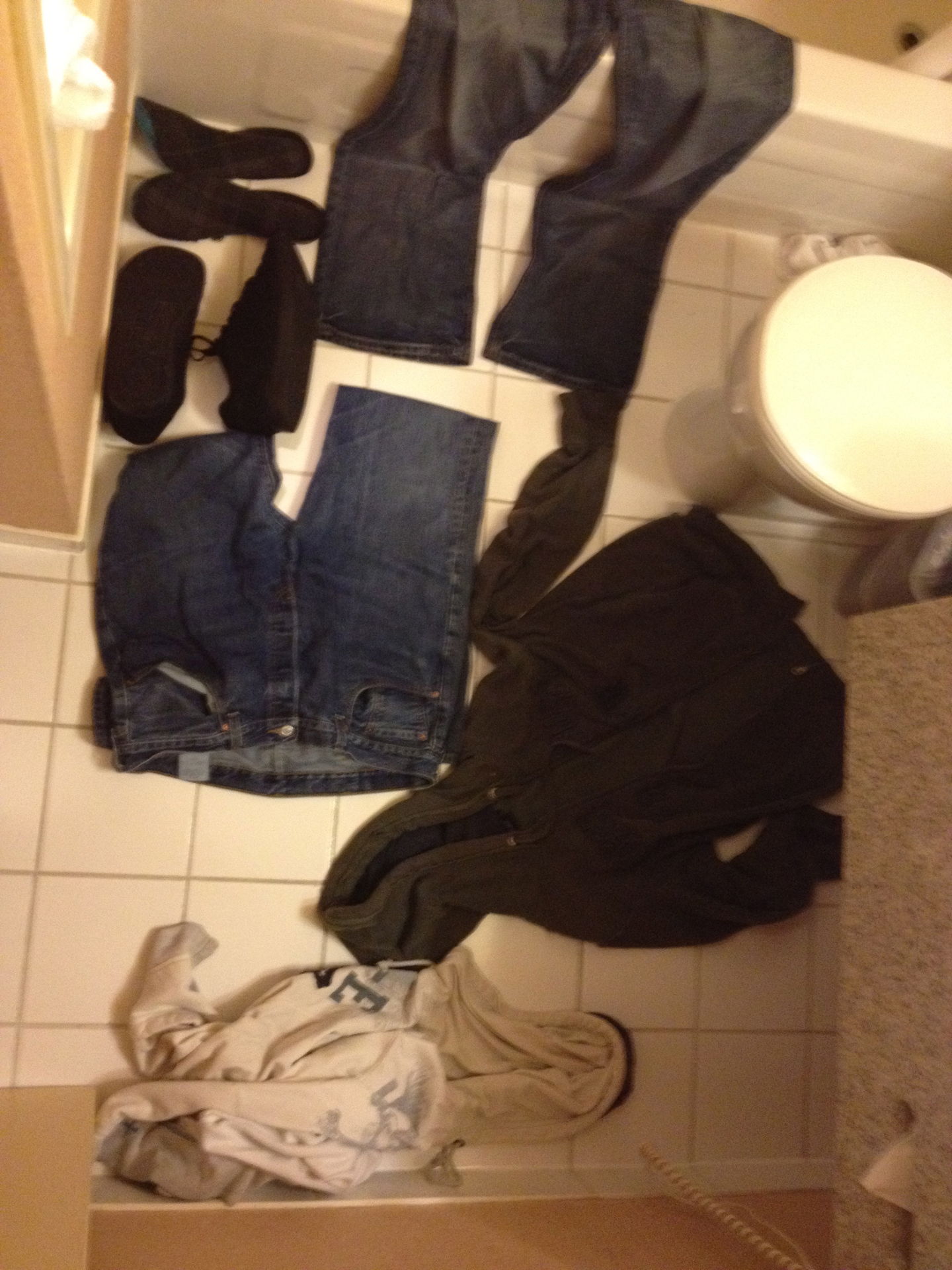 Unsere nassen Klamotten hatten wir erst einmal auf der Fussbodenheizung im Badezimmer mehr schlecht als recht getrocknet.