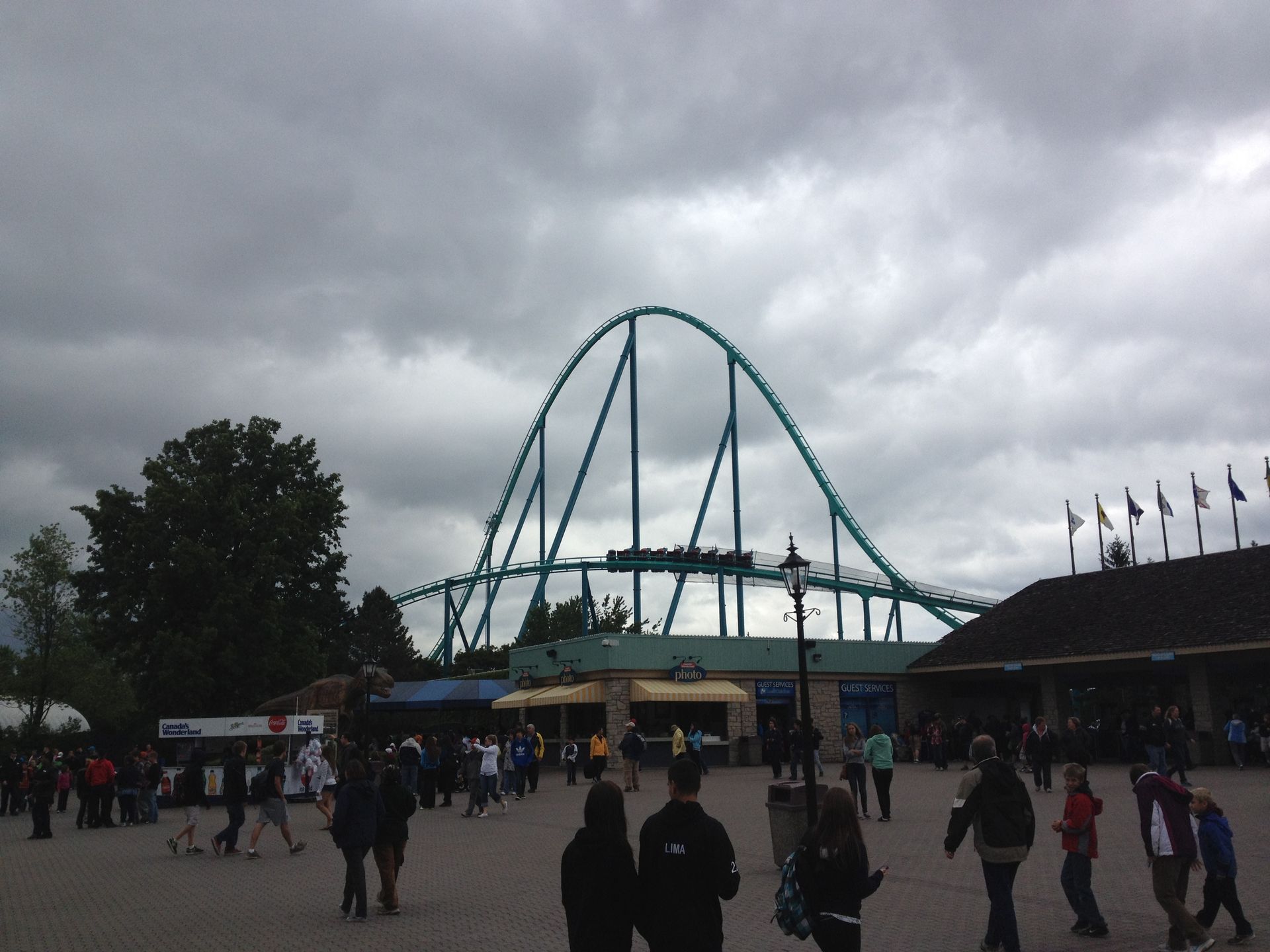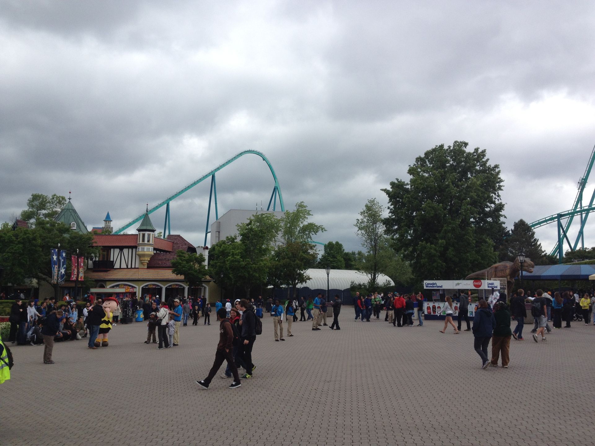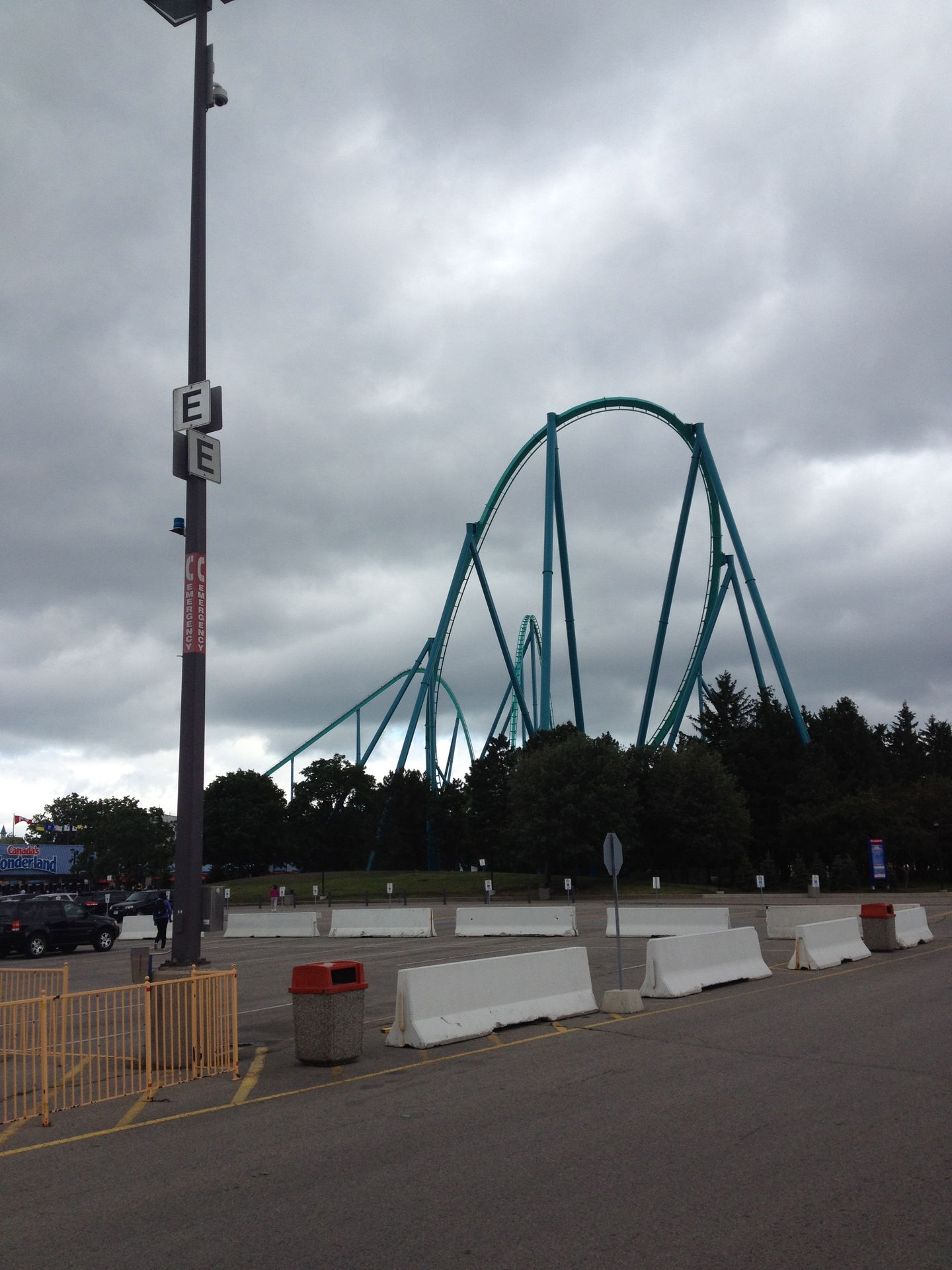 Tja, leider wird dies ein nicht so ausführlicher Bericht wie sonst. Dies hat allerdings auch einen recht simplen Grund: 2 Unwetter. An unserem Tag zogen 2 heftige Thunderstorms über Toronto hinweg und haben sogar dafür gesorgt, dass die Torontoer U-Bahn teilweise knietief unter Wasser stand. Voller Optimismus haben wir uns jedoch trotzdem in den Park begeben, zumal wir ja auch das Fastlane Ticket extra für diesen Tag erstanden haben.