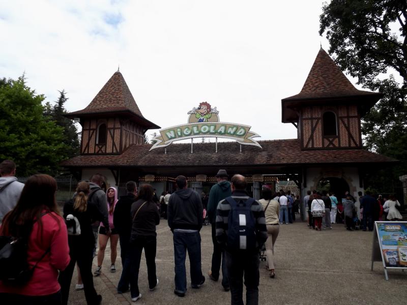 Viel zu früh klingelte am Samstag morgen um 6:30 der Wecker und ich war im Endeffekt froh doch nicht so viel getrunken zu haben. Der Bus rollte um 8 Uhr vom Parkplatz des Hotels zum dreistunden entfernten Nigloland, das wir um kurz nach 11 ca eine Stunde nach Parköffnung erreichten. Man sieht den Park erst wenn man relativ nah dran ist, da er zwischen einigen Hügeln in einem kleinen Tal liegt.