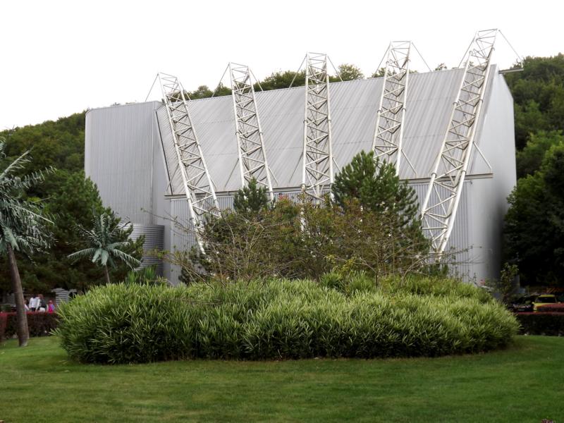 Neben dem bayrischen Dorf steht dann ohne viel Zusammenhang der große viereckige Blechkasten und direkt davor das etwas andere Scharzkopf Monster