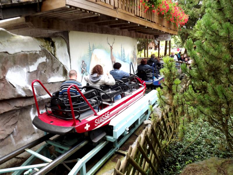 Vom Space Coaster im Amerika Bereich mit Jukebox kommt man in einen Schweizer Themenbereich der von einer weiteren Achterbahn dominiert wird.