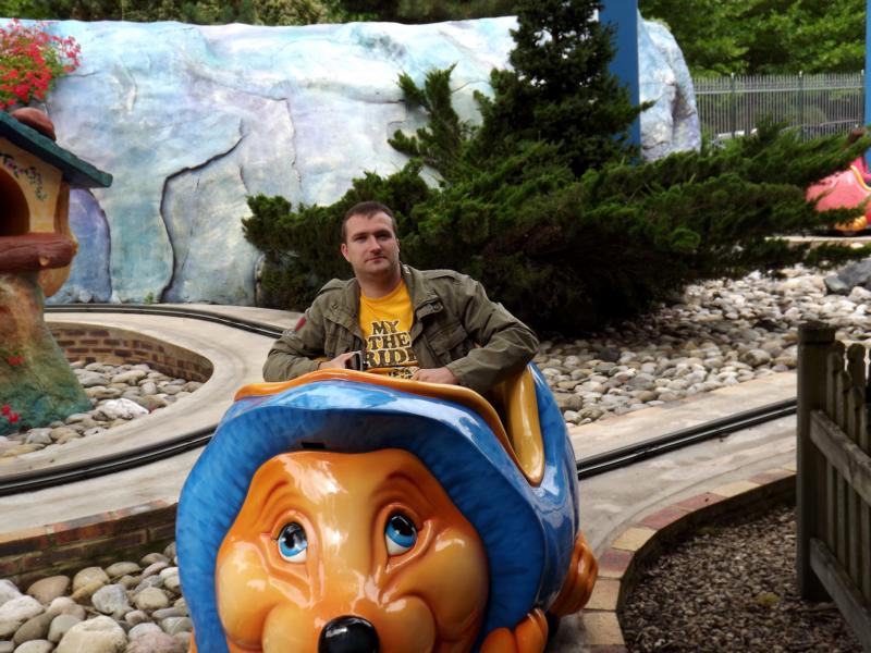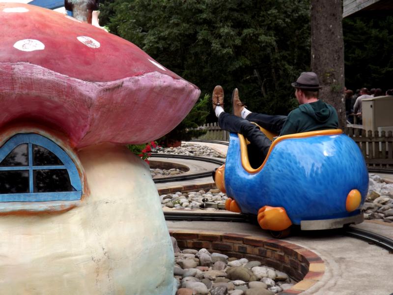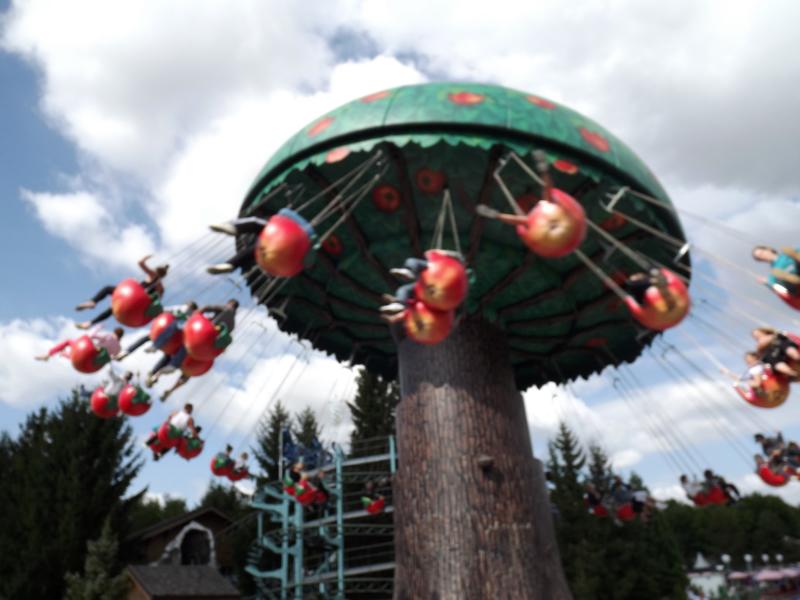 Abgesehen von den Attraktionen ist der Park sehr sehr seltsam aufgebaut. Die Wegführung hat etwas von einem RCT Anfängerpark, nach dem Motto “Ich baue eine irgendwo willkürlich eine Attraktion und baue im Viereck einen Weg drumrum”. Auch die Anordnung der Themen ist etwas komisch, so hat man Bayern, Schweiz, Amerika, Space, Dinosaurier, Igel, Wald, Geisterschloss und ein Flugkarussell irgendwie nebeneinander, aber das ist nicht weiter schlimm. Muss ja nicht jeder Park perfekt durchdacht sein.