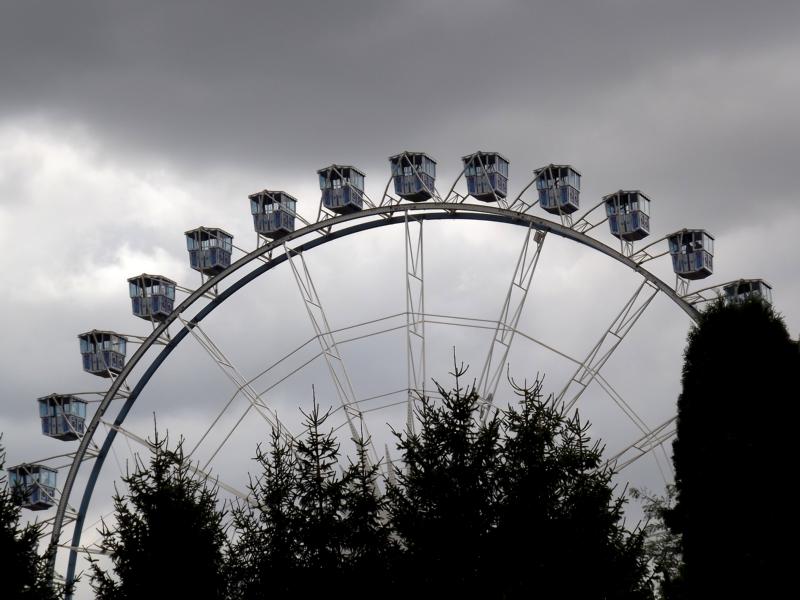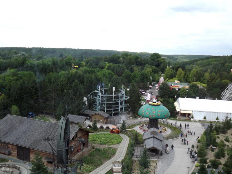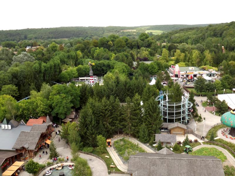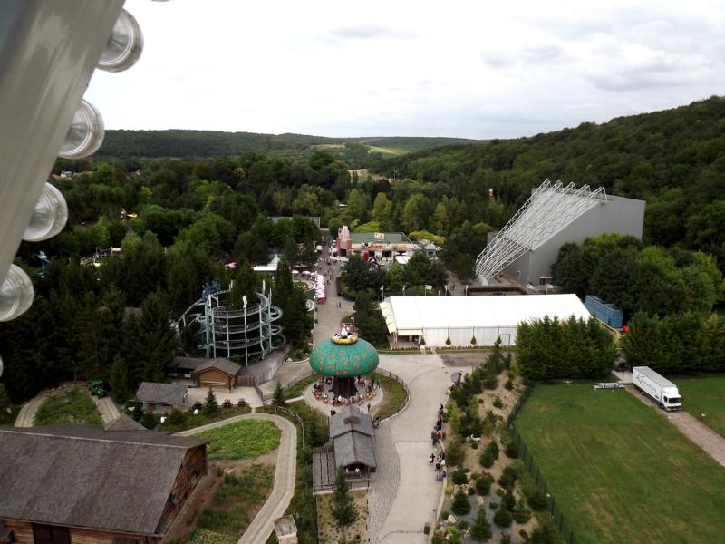 Danach wollten wir uns den Park für einen ruhigen Abschluss noch vom Riesenrad angucken. Das überhaupt eins vorhanden ist, ist in einem Tal nicht besonders sinnvoll, denn von der Umgebung kann man natürlich dann nichts sehen. Aber immerhin erhält man einen Überblick über den verplanten Aufbau des Parks.
