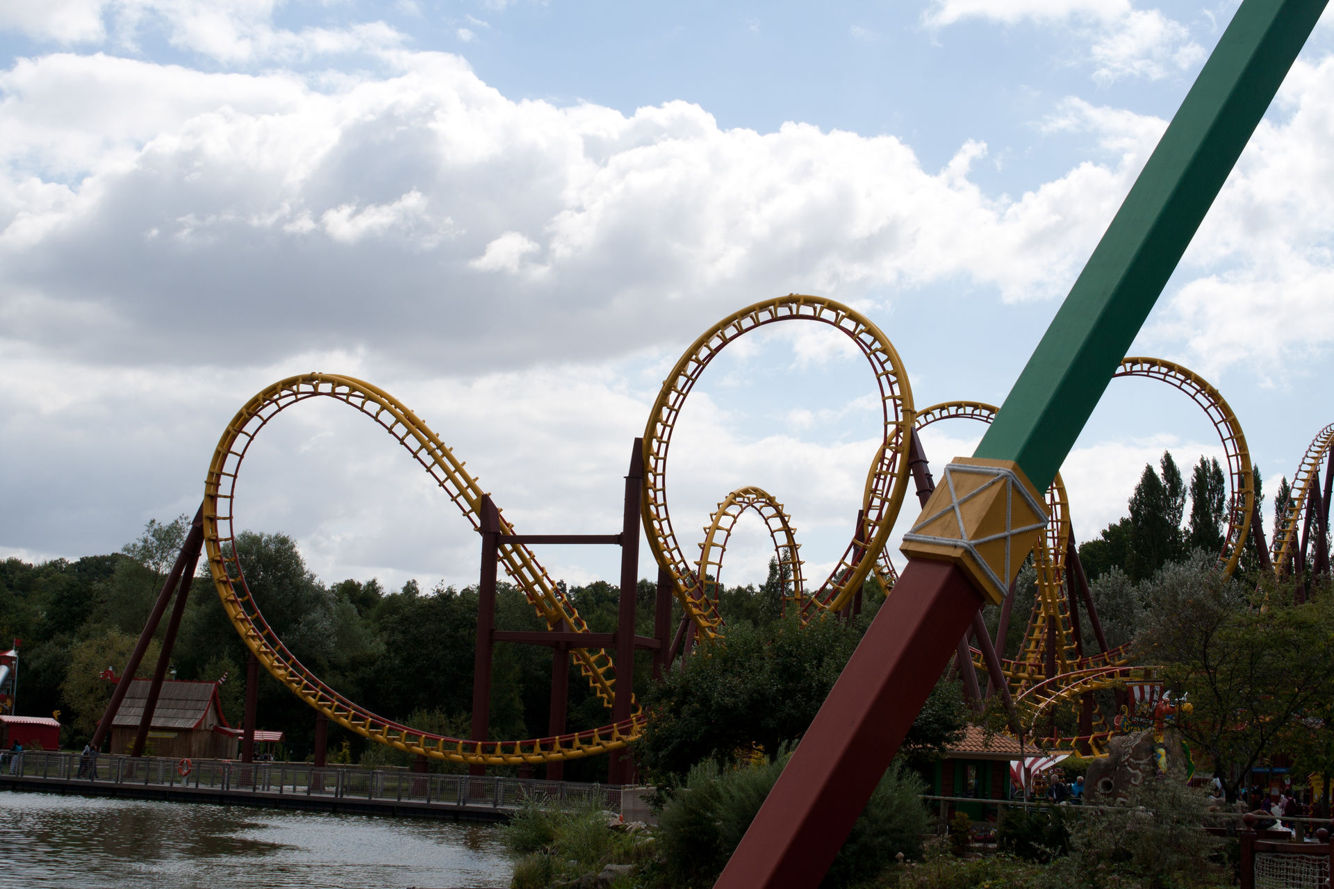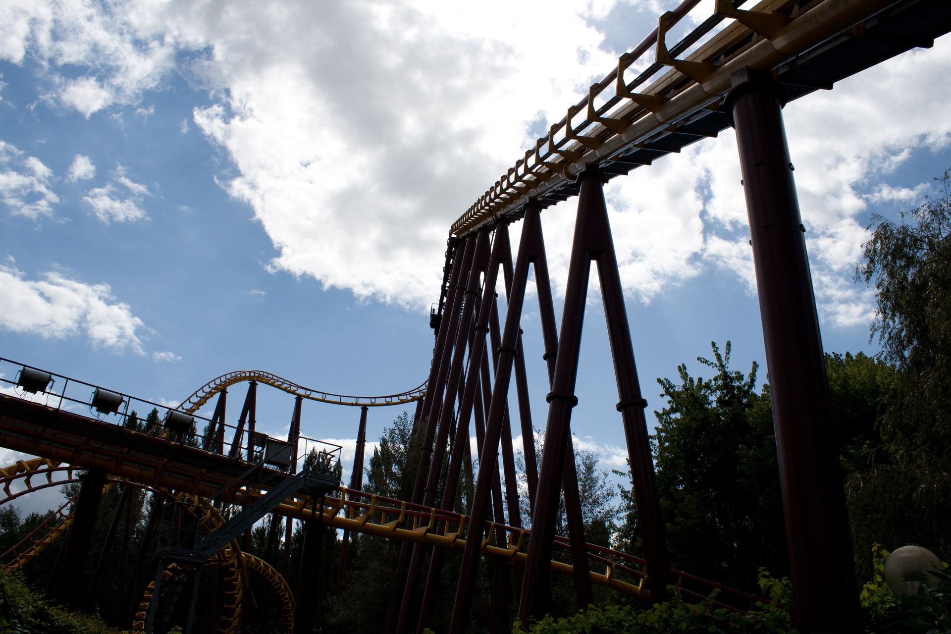 Goudurix - an sich eine tolle Bahn, wenn sie nur nicht so wehtun würde. Aber wenn man den Kopf die Fahrt über nach hinten presst, geht es einigermaßen.