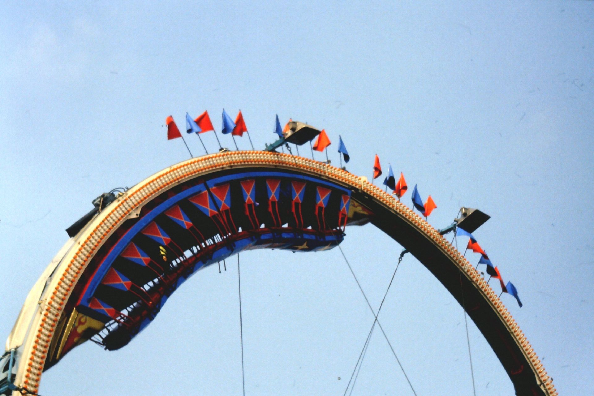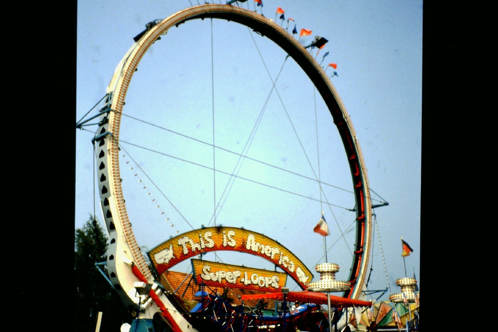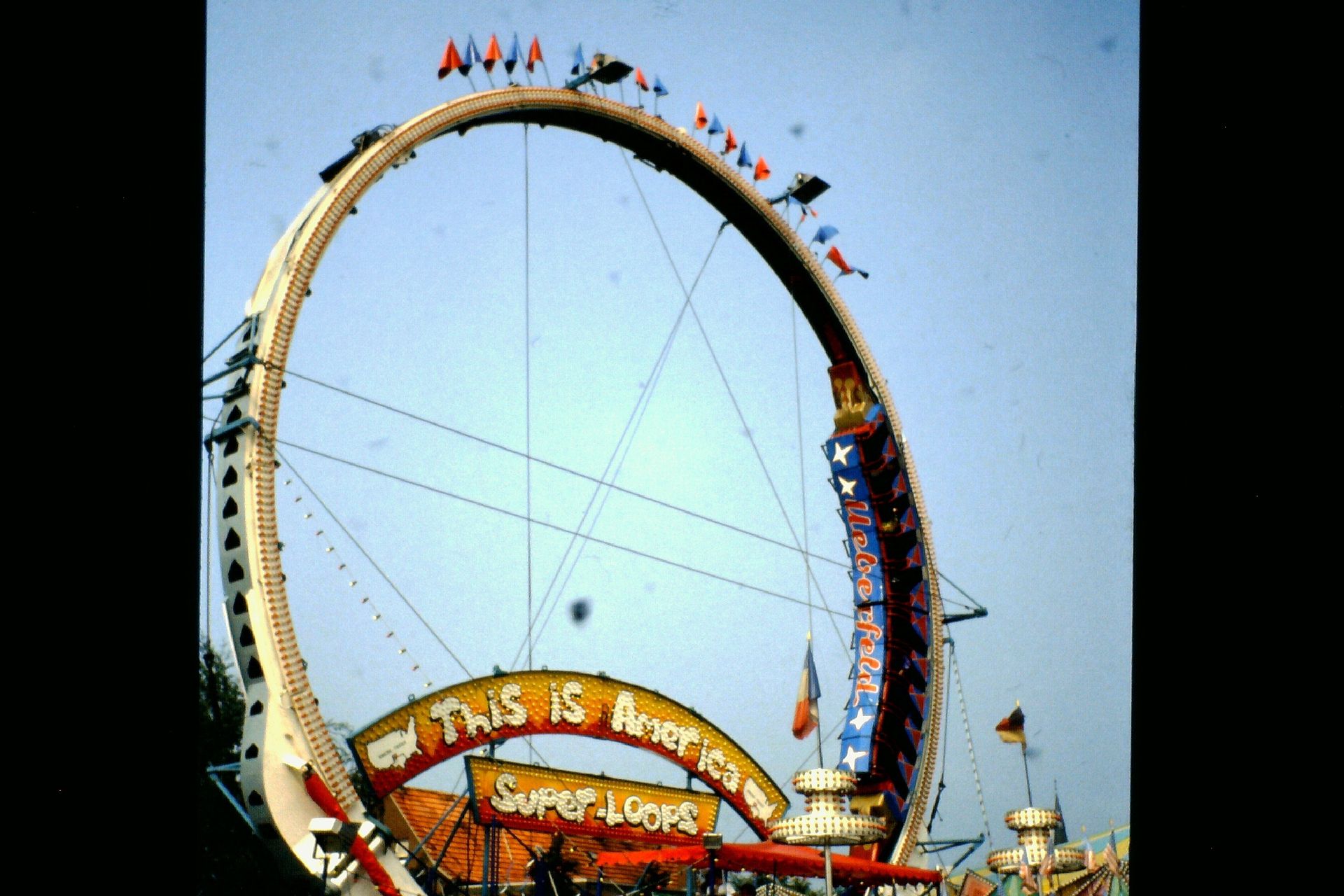 Könnte dies das gesuchte Fahrgeschäft sein? Das ist ein Super Loop von Vekoma. Bis kürzlich stand dieser in Plohn.