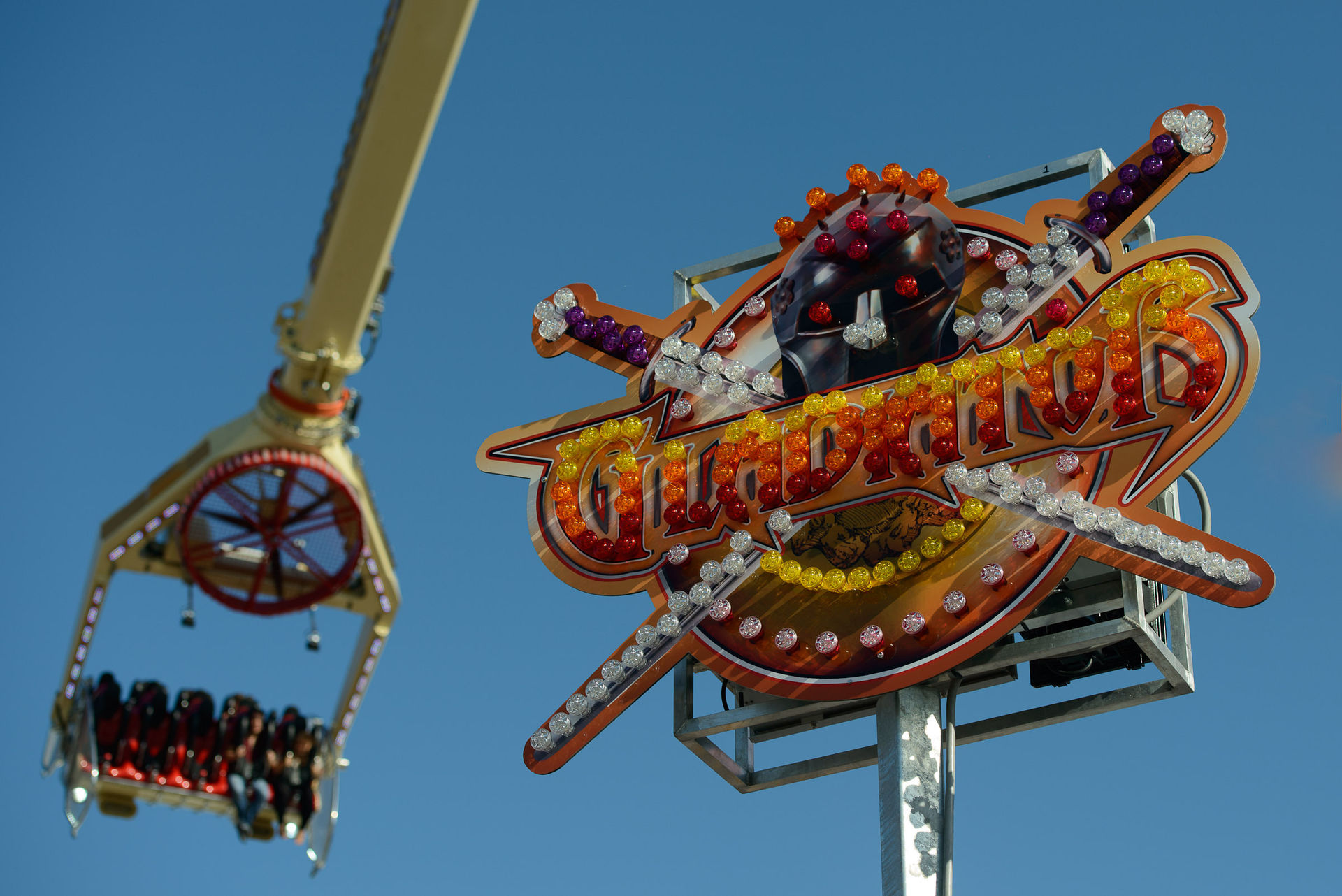 Seit gestern hat nun die jüngste Auflage der Dippemes geöffnet. Größte Neuigkeit, im wahrsten Sinne des Wortes, ist dabei der Gladiator. Das habe ich mir dann doch gleich mal von Nahem angesehen. Den Platz fand ich beinahe erschreckend leer, vermutlich war es aber zu warm am späten Nachmittag.