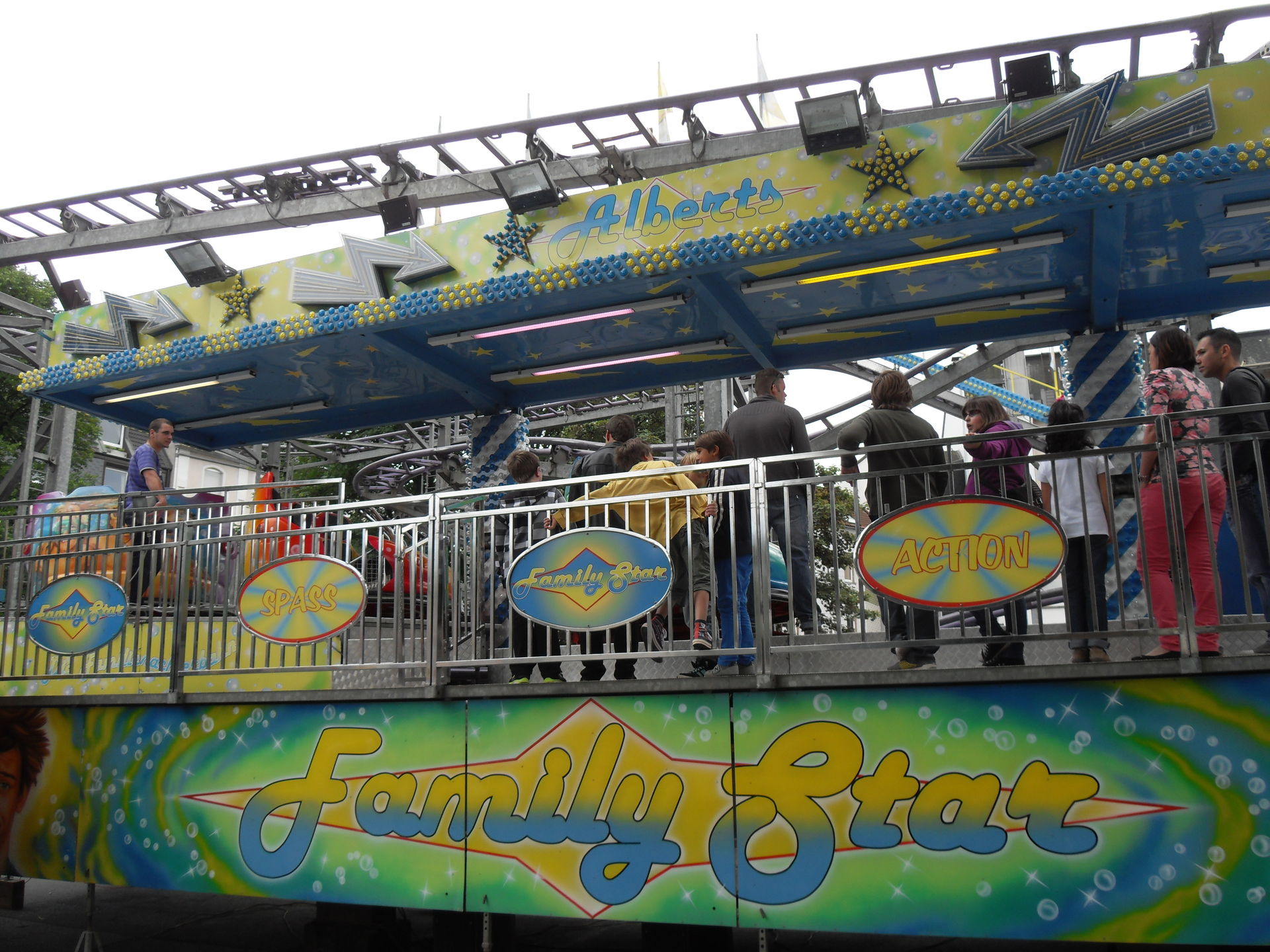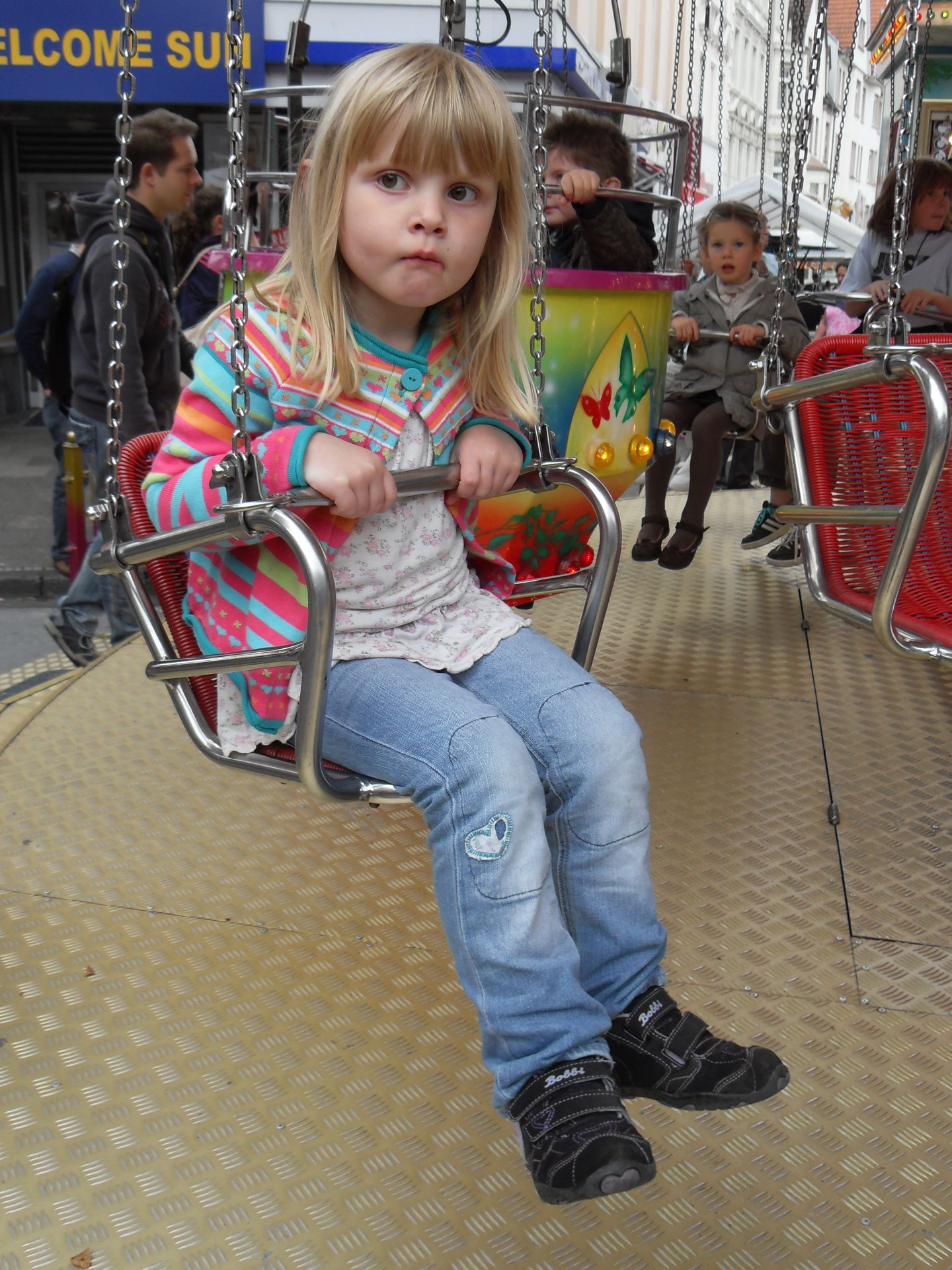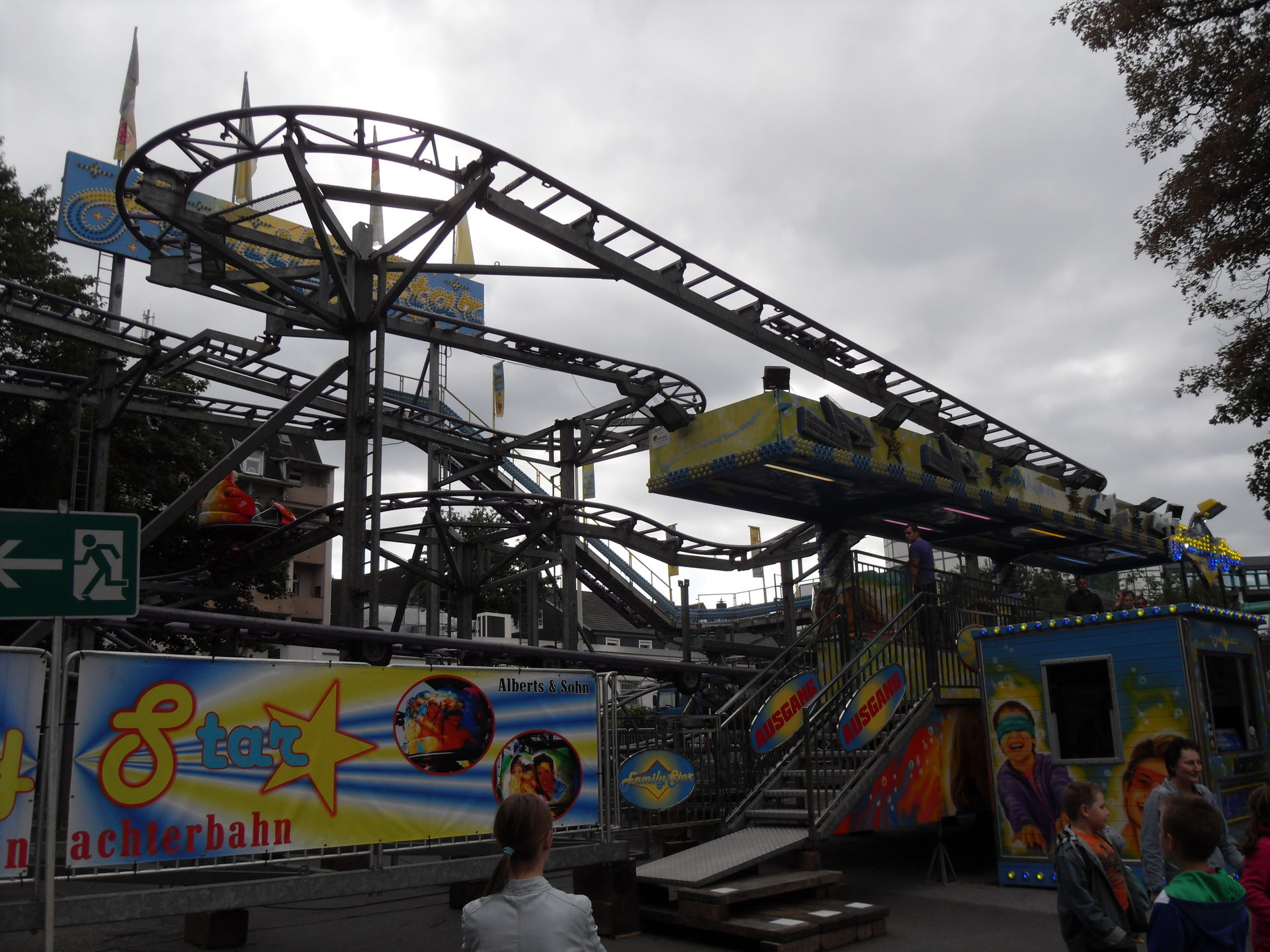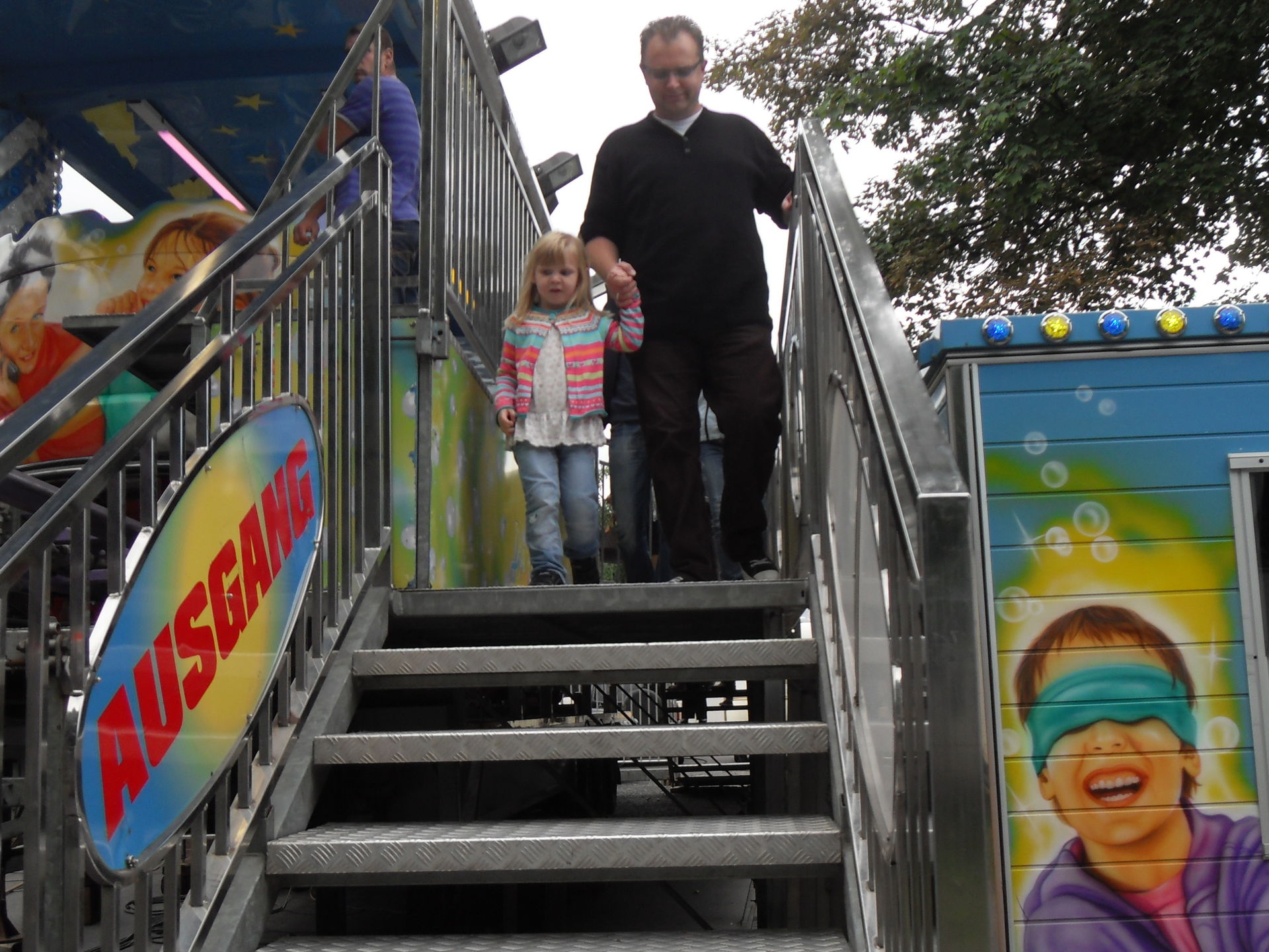 Auf dem letzjährigen Konga Platz gastierte in diesem Jahr der Family Star in Schwelm, eine kleine niedliche Familienachterbahn mit drehenden Gondeln. Nichts spektakuläres und leider auch mit diversen Spaßbremsen versehen aber für Mia genau die richtige Bahn für ihrer allererste Achterbahnfahrt auf der Kirmes. Kinder wie die Zeit vergeht...