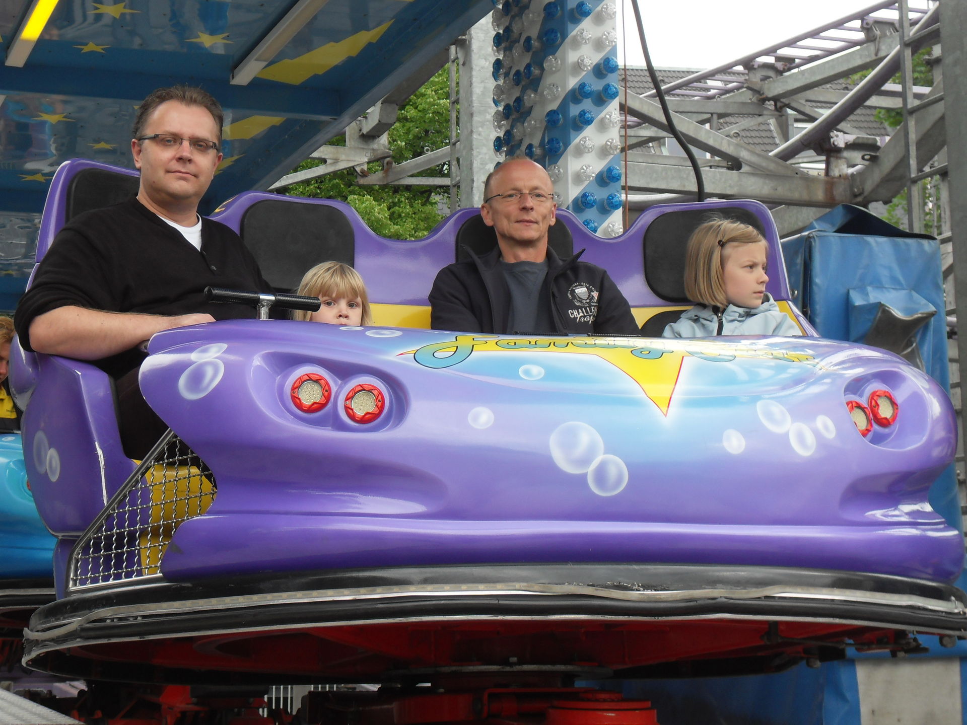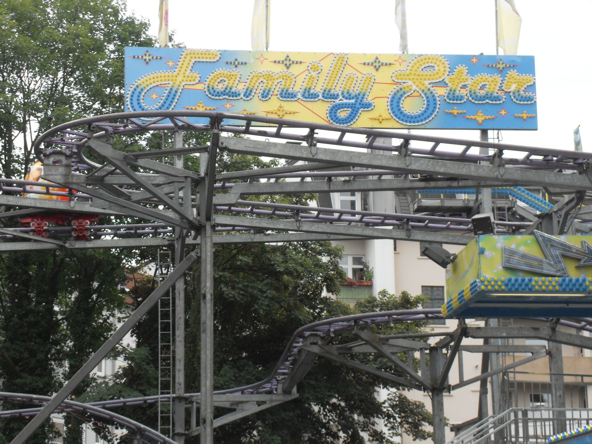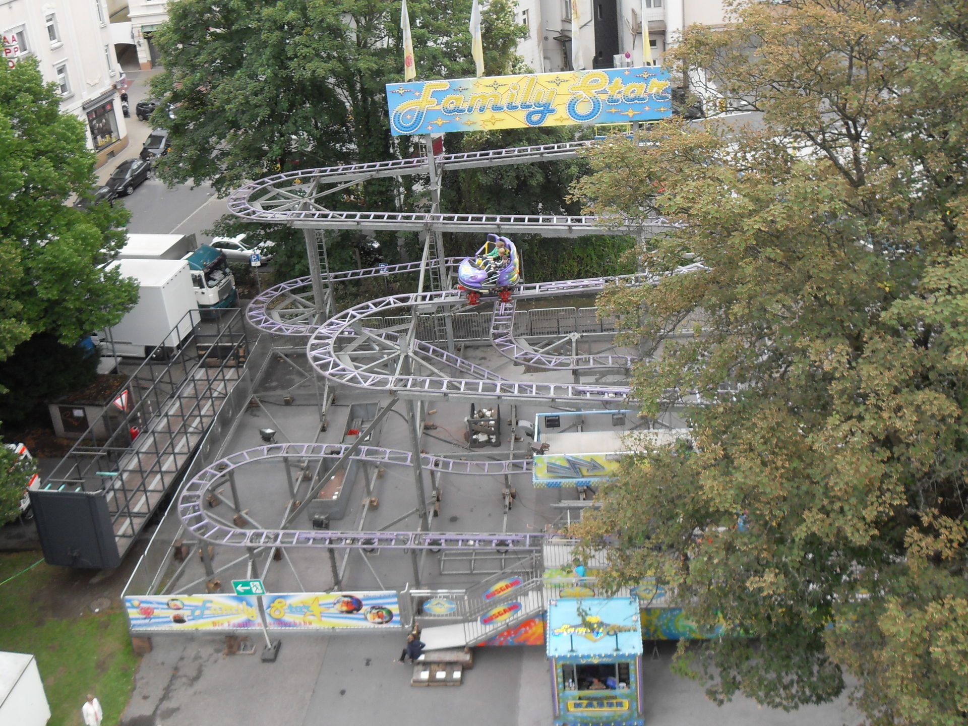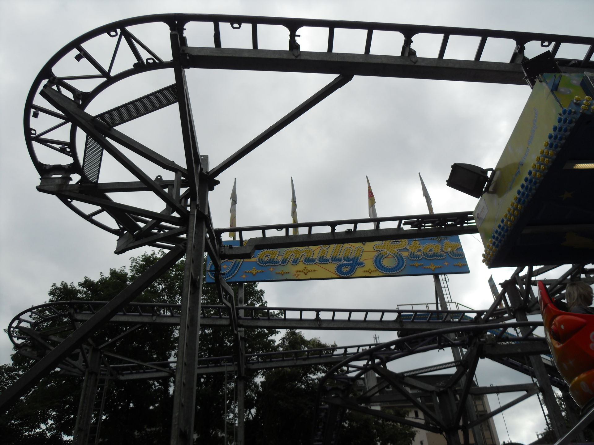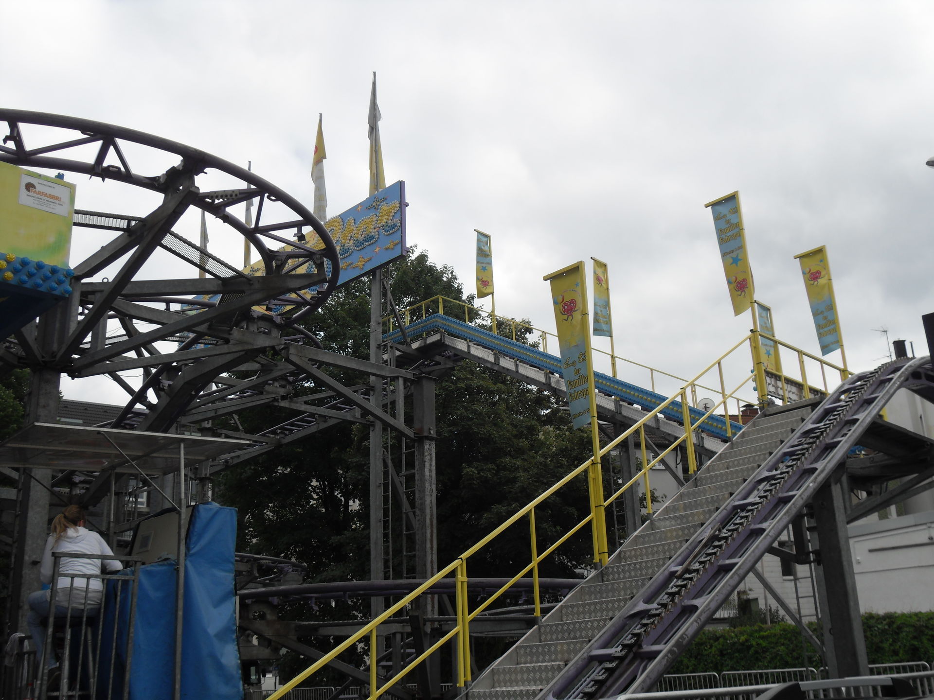 Auf dem letzjährigen Konga Platz gastierte in diesem Jahr der Family Star in Schwelm, eine kleine niedliche Familienachterbahn mit drehenden Gondeln. Nichts spektakuläres und leider auch mit diversen Spaßbremsen versehen aber für Mia genau die richtige Bahn für ihrer allererste Achterbahnfahrt auf der Kirmes. Kinder wie die Zeit vergeht...