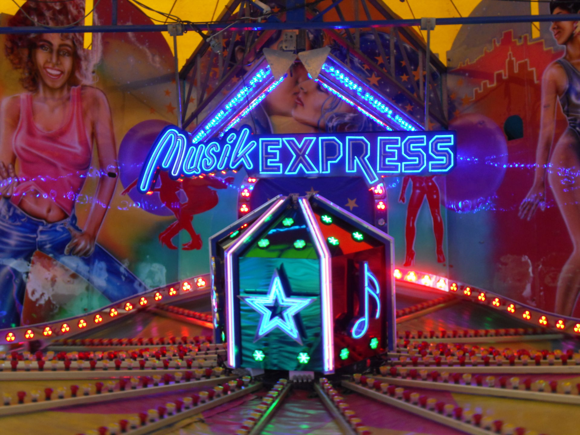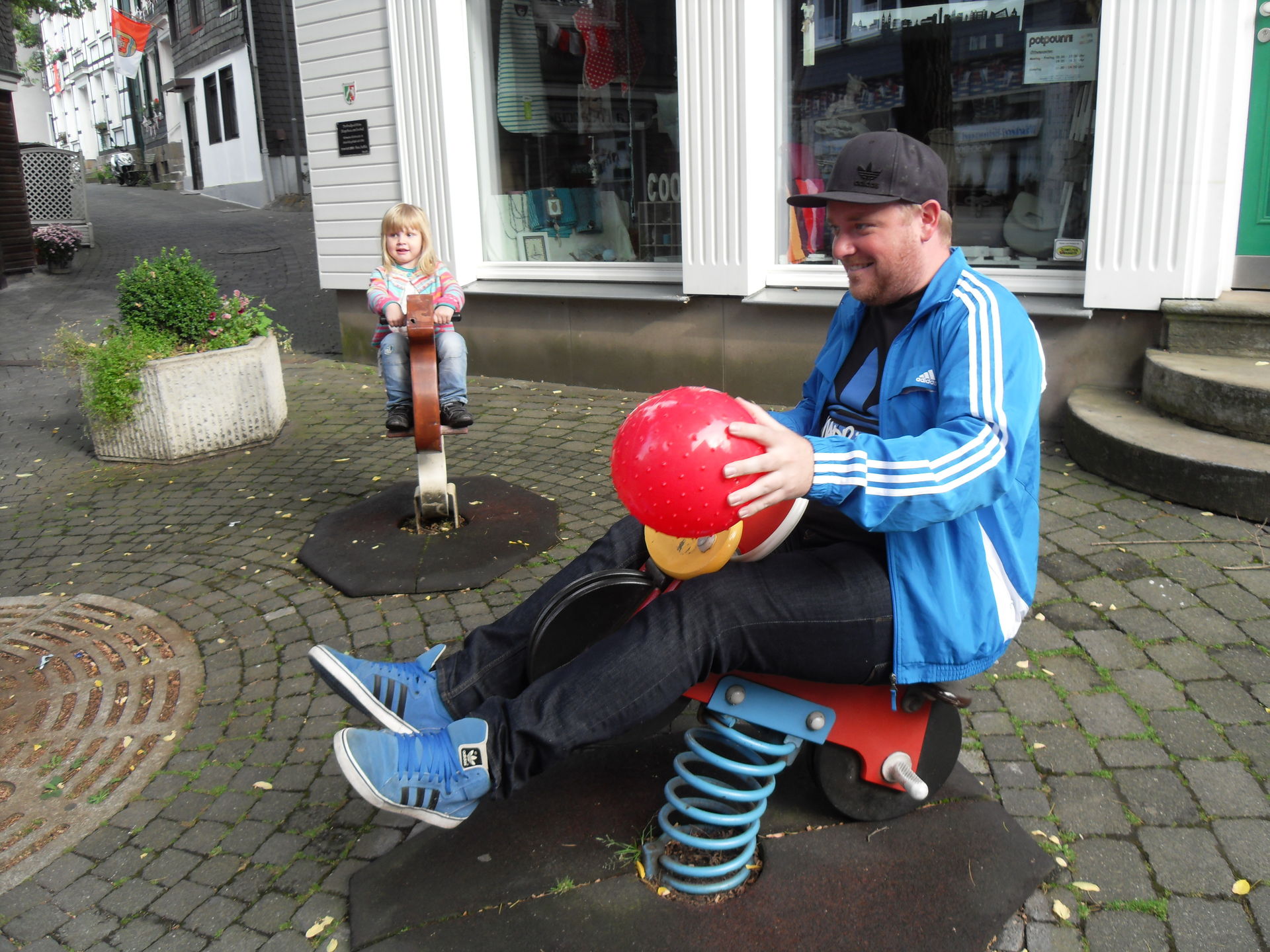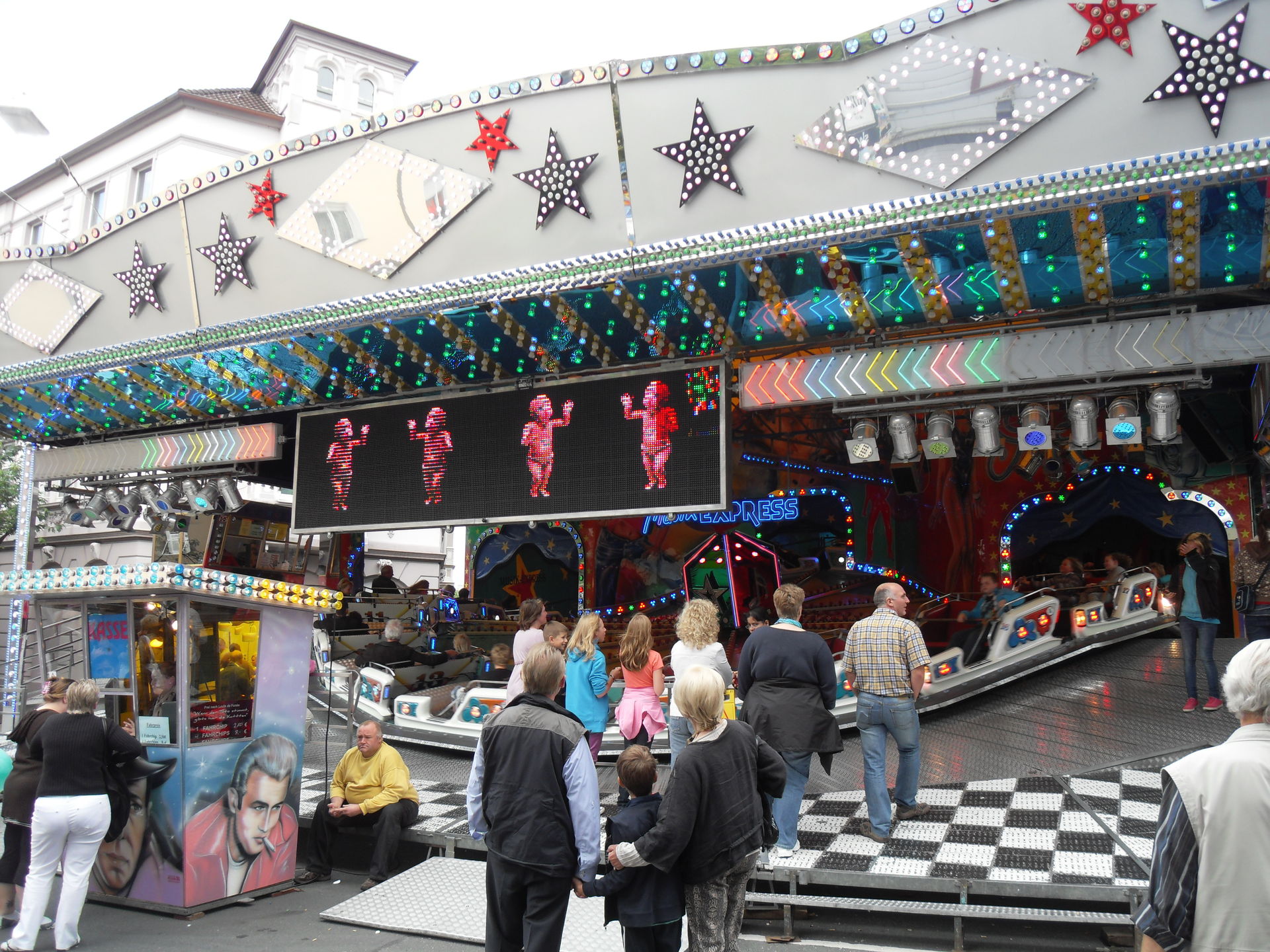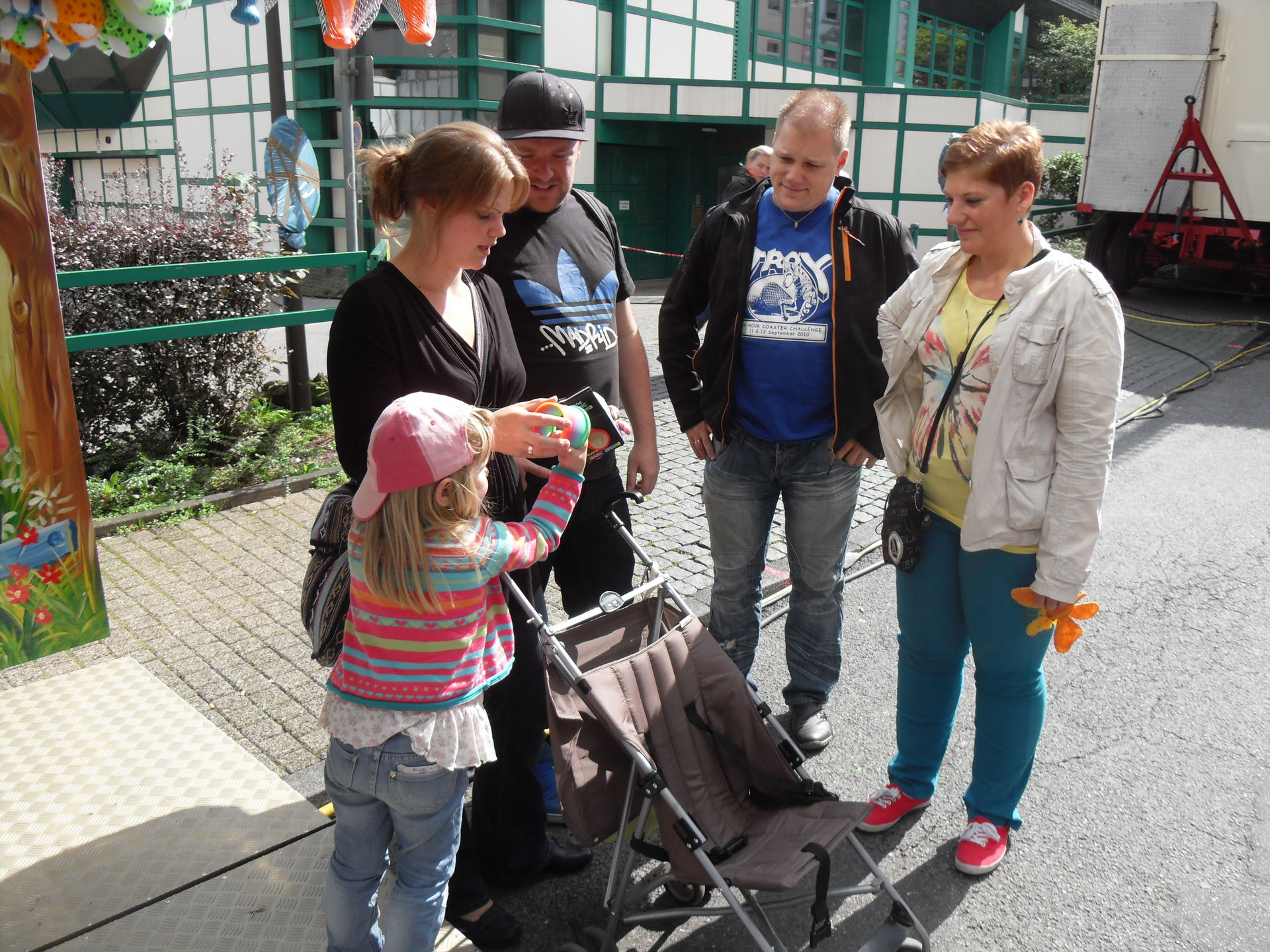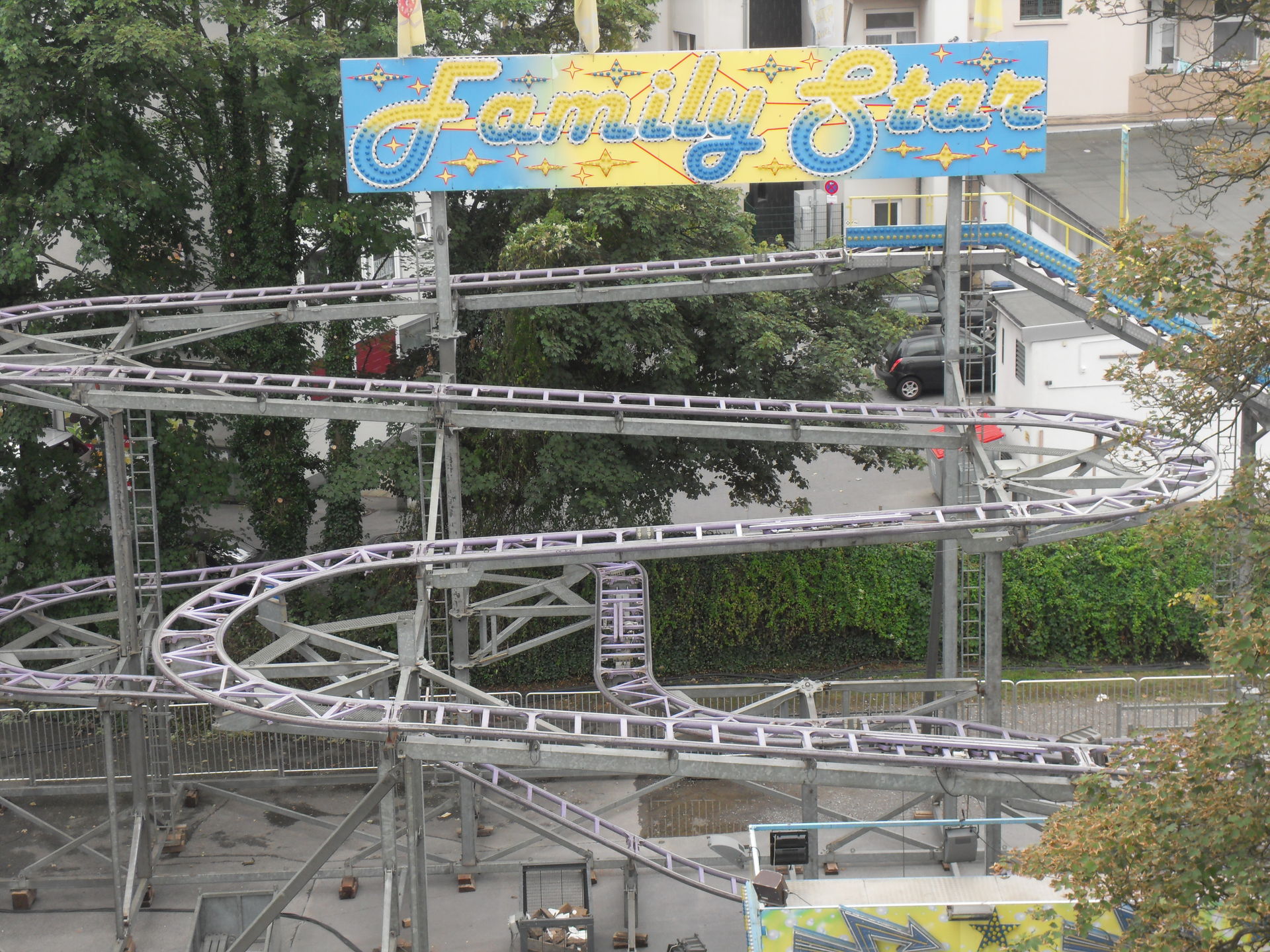 Auf dem letzjährigen Konga Platz gastierte in diesem Jahr der Family Star in Schwelm, eine kleine niedliche Familienachterbahn mit drehenden Gondeln. Nichts spektakuläres und leider auch mit diversen Spaßbremsen versehen aber für Mia genau die richtige Bahn für ihrer allererste Achterbahnfahrt auf der Kirmes. Kinder wie die Zeit vergeht...