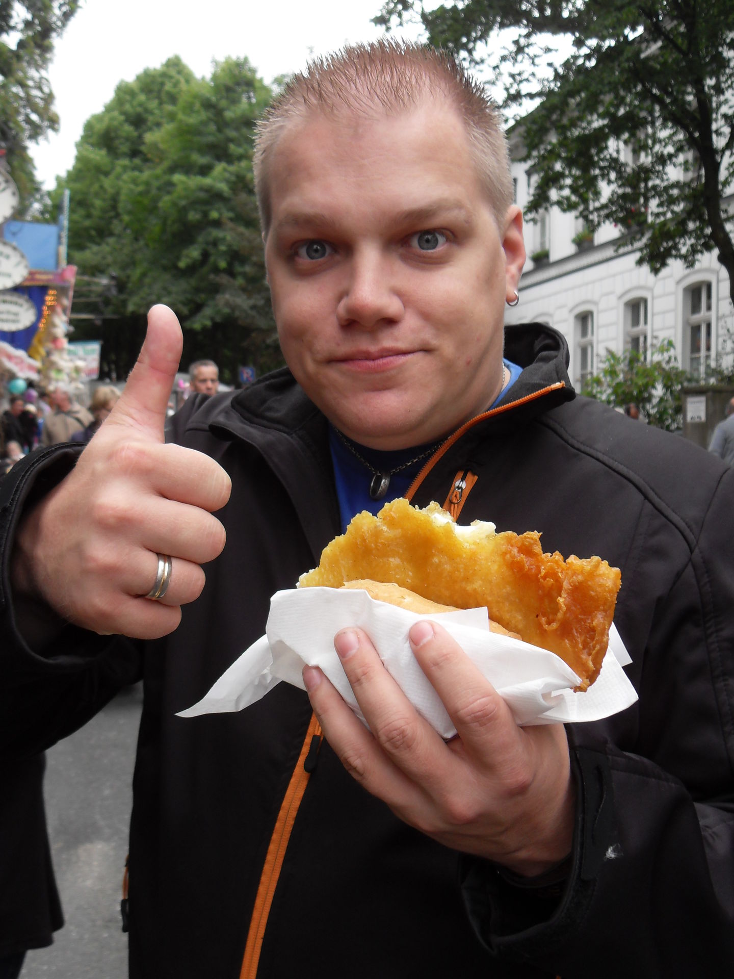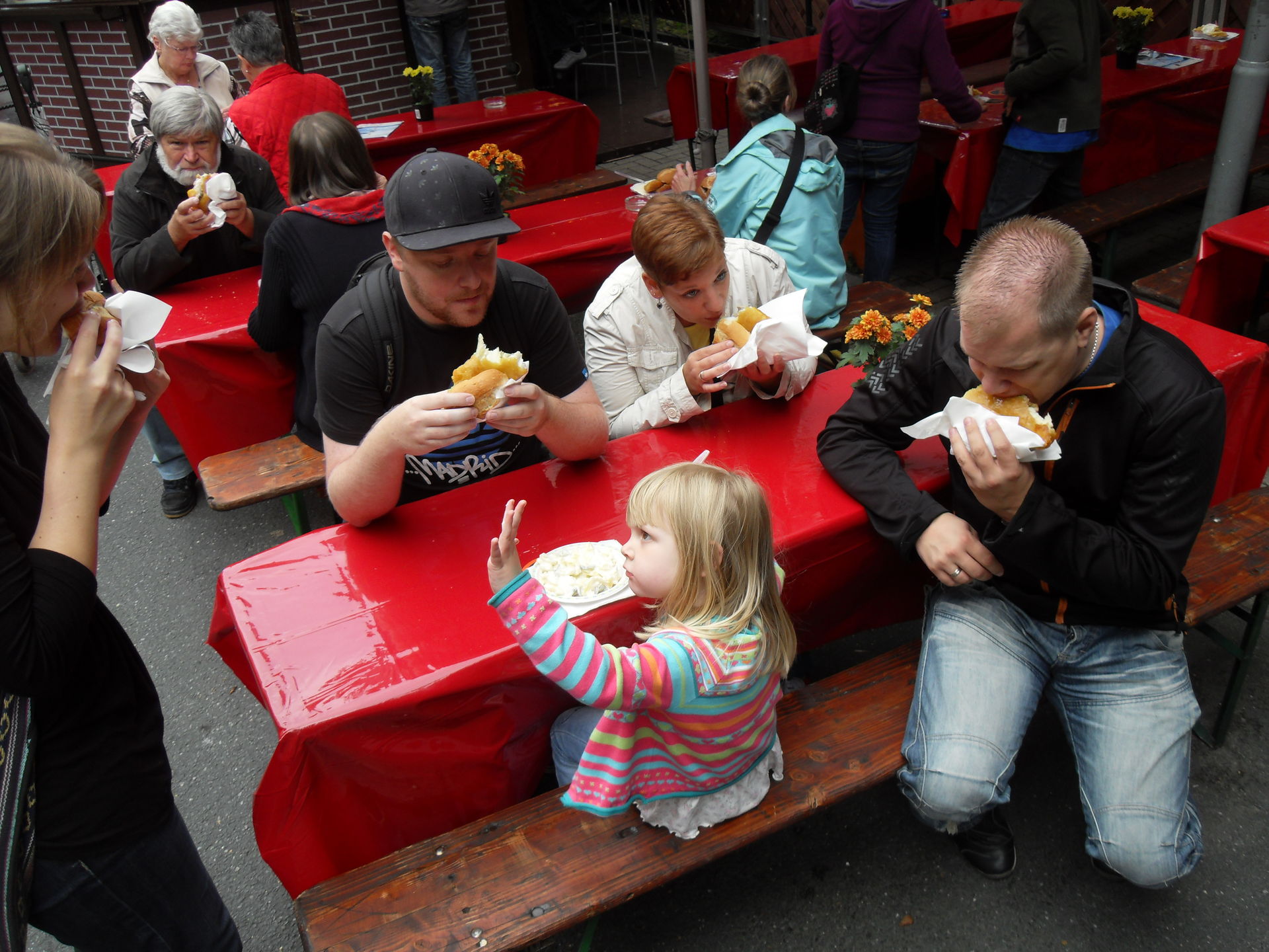 Anschließend gab es ersteinmal eine kleine Pause mit lecker Backfisch, Wurst, Kartoffelsalat und Bierchen. Und auch hier, während wir gemütlich dort saßen und relaxten tauchte sie wieder auf. Die Legende. Der Mythos. Nur knappe 10 Meter entfernt gönnte sich auch das Sesamstraßenmitglied eine kleine Pause auf der Kirmes in seiner Heimatstadt.