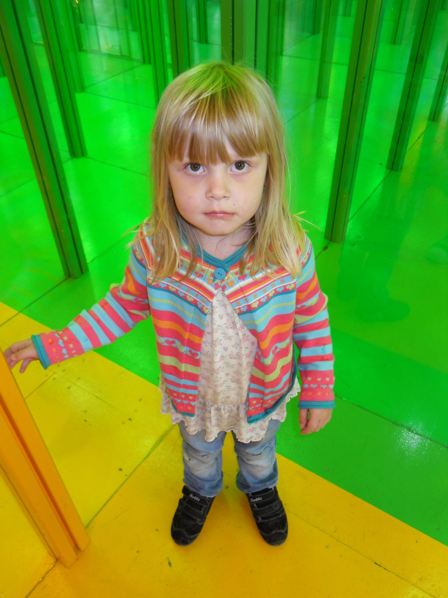 Mia ließ sich einen Besuch mit Papa im Laufgeschäft nicht nehmen und drehte auch noch eine Runde auf der Kinderschleife.