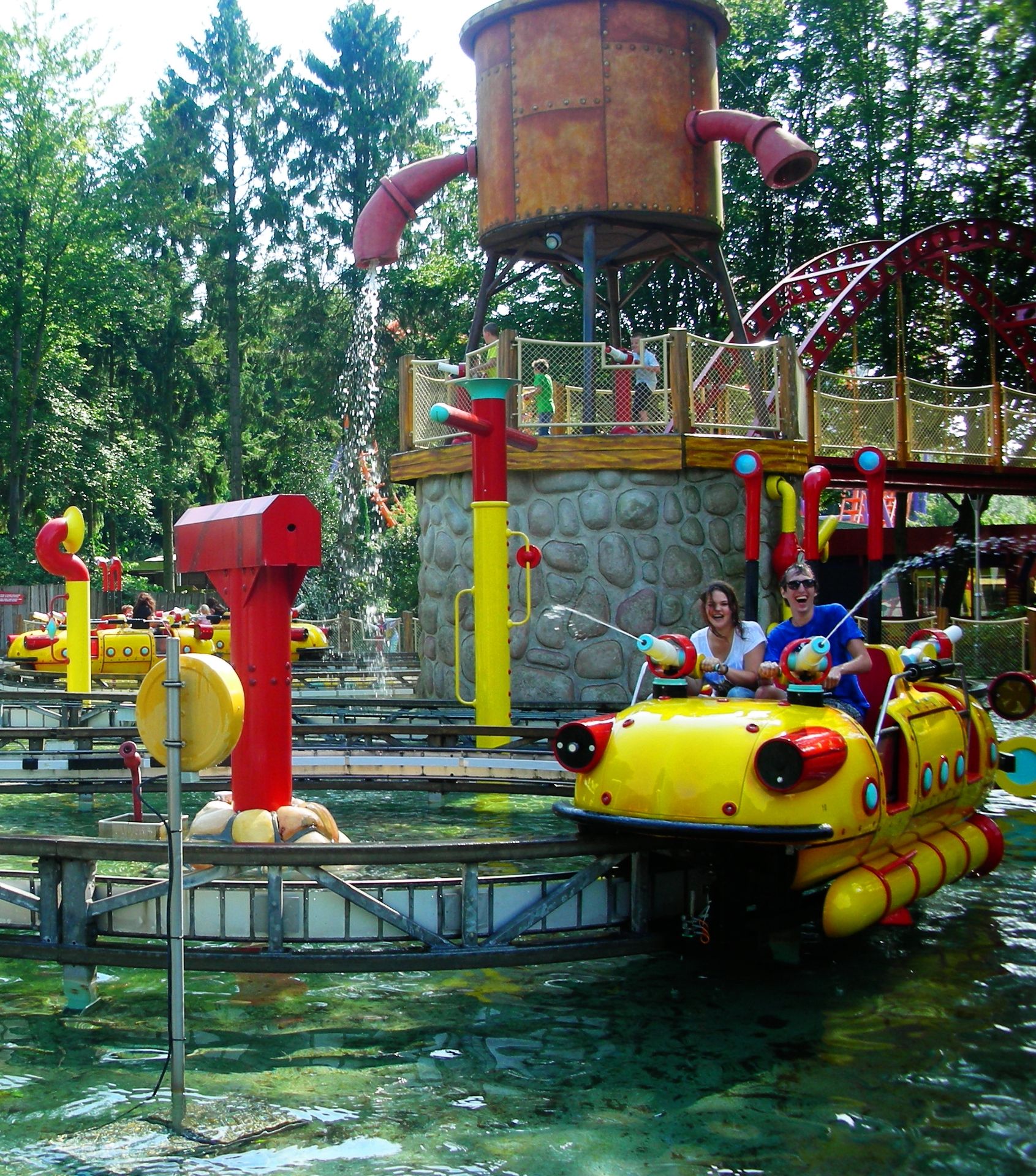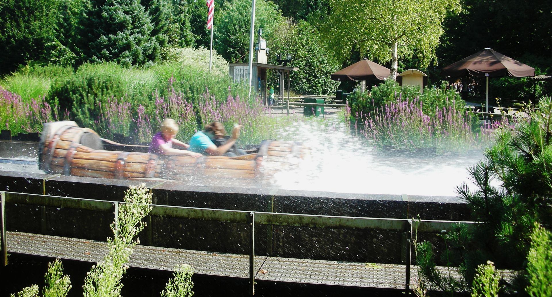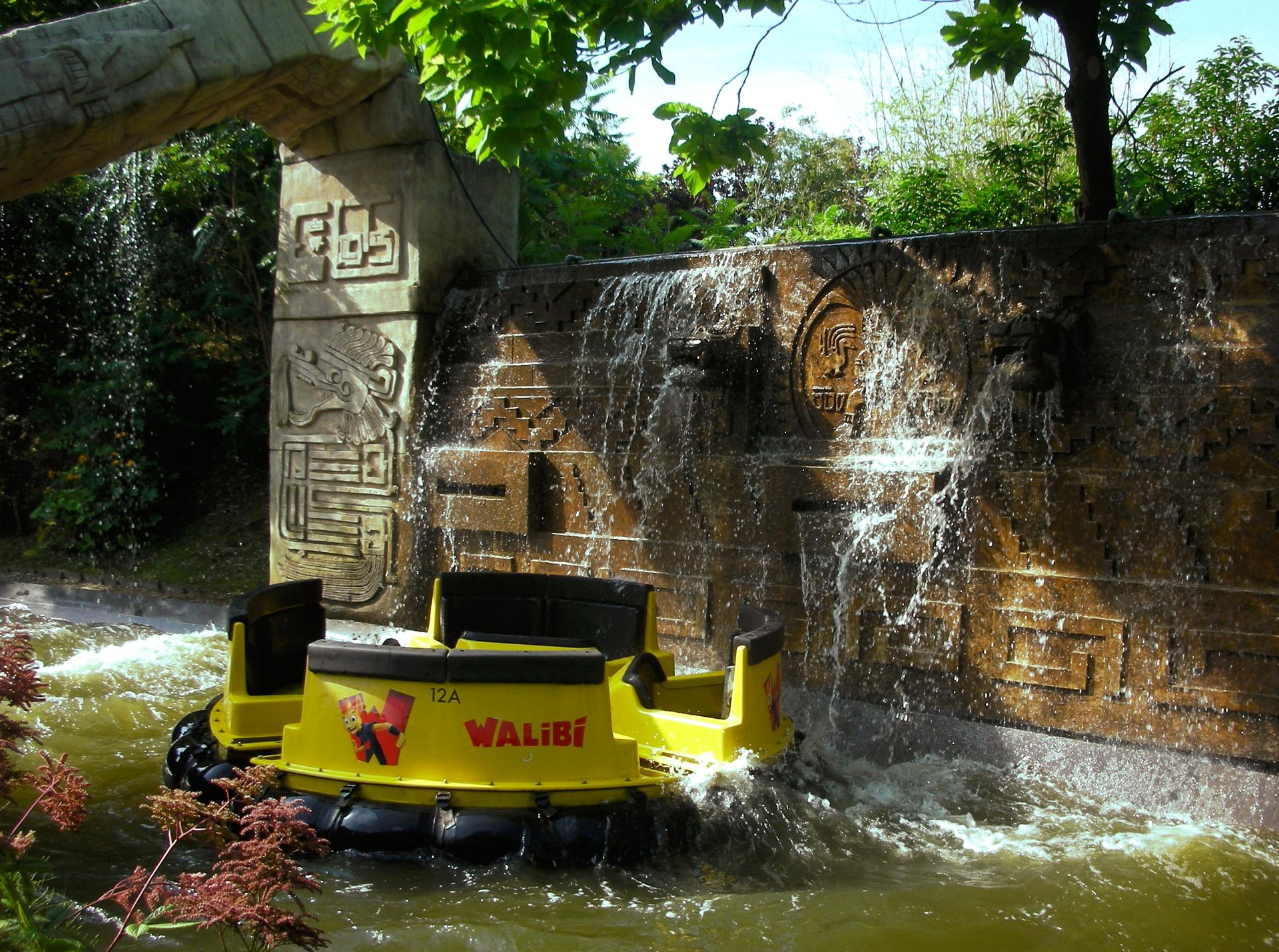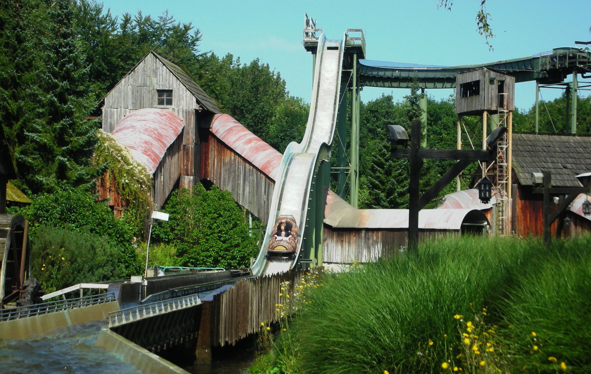 Nachdem Merlin uns richtig durchgeschaukelt hat, gingen wir im Kopf nochmal die verbleibenden Bahnen durch, welche es abzuhaken galt, und beschlossen, einfach alles, was uns bei den Fußmärschen ins Auge fallen würde, gleich mitzunehmen. Diese Bedingungen erfüllte als erstes der Crazy River, eine ganz nett angelegte Wildwasserbahn mit absoluter Nässegarantie und einem Double Dip, der es in sich hat. Außerdem bietet der Flume einige Streckenmeter mehr als man auf den ersten Blick meinen könnte und ist somit auf jeden Fall eine positive Überraschung, aus der durch ein wenig beherztere Thematisierung noch ein wahrer Schatz hätte werden können.