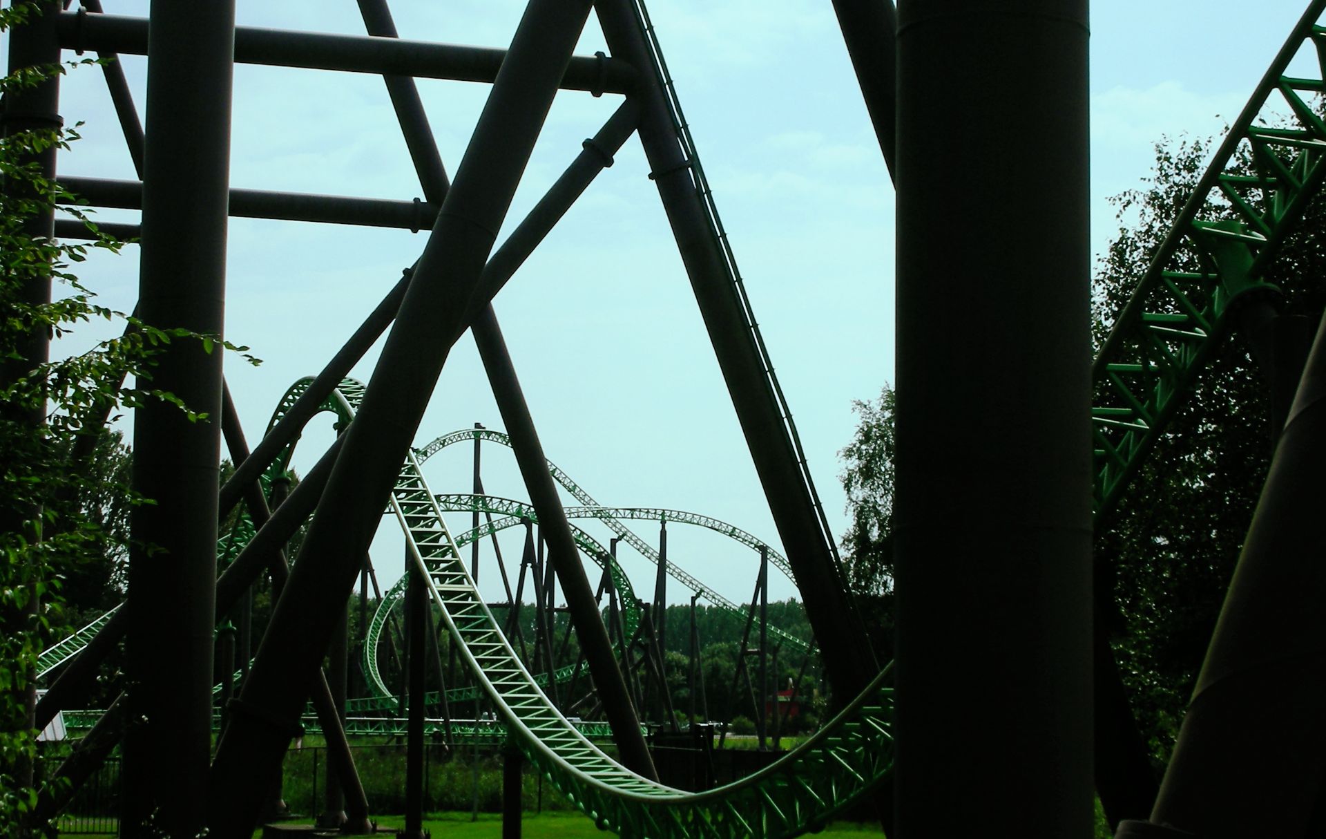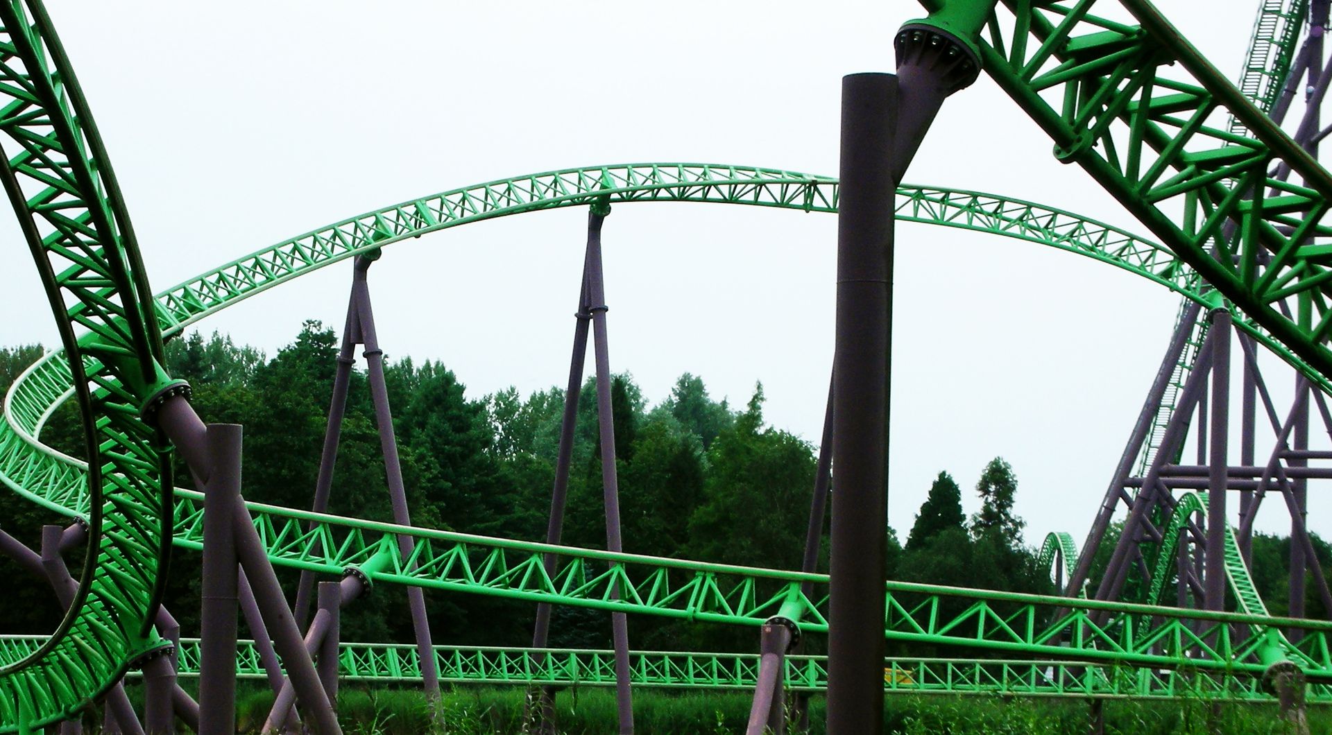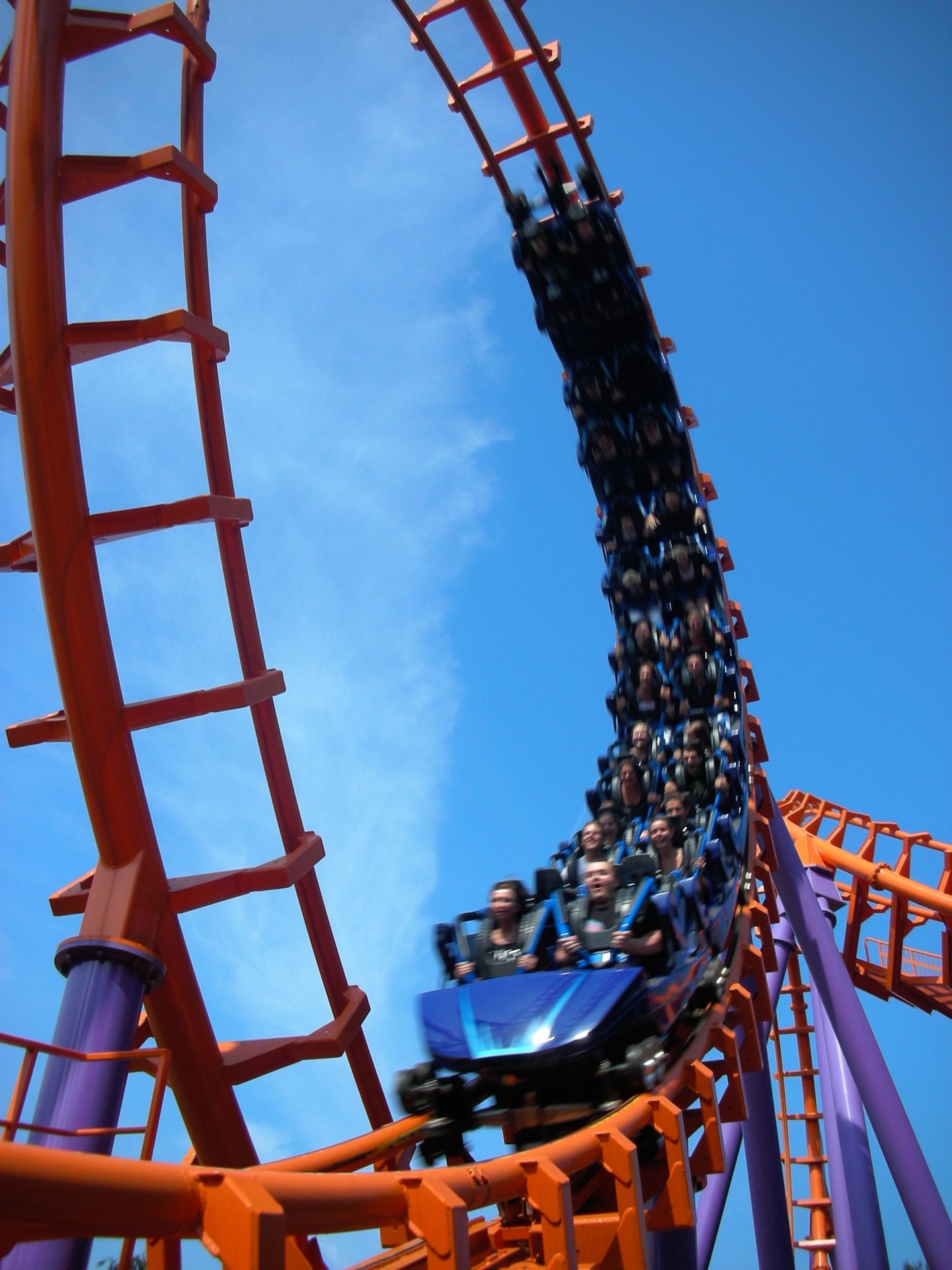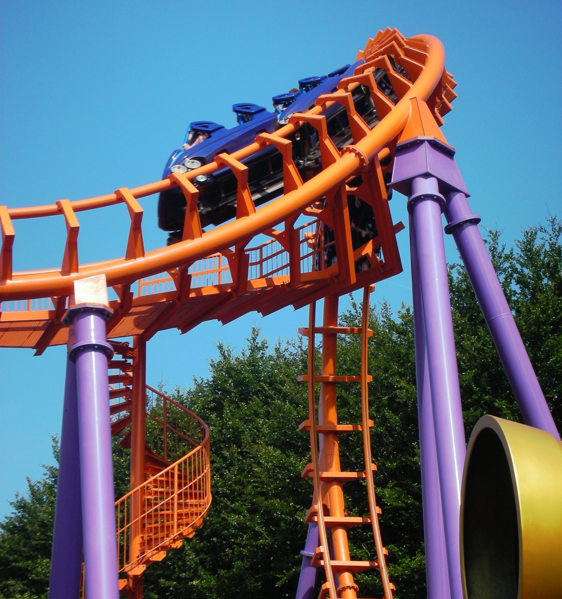 Inversion nach oben und erblickt das Schienenknäuel über dem See aus einer vollkommen neuen Perspektive. In luftiger Höhe schraubt man sich über den Rest des Streckenverlaufs hinweg, ehe man wieder einen waghalsigen Sturz gen Wasser unternimmt. Es folgt die erste Steilkurve, in der zu leichtem Rappeln viel Spaß aufkommt, ehe eine