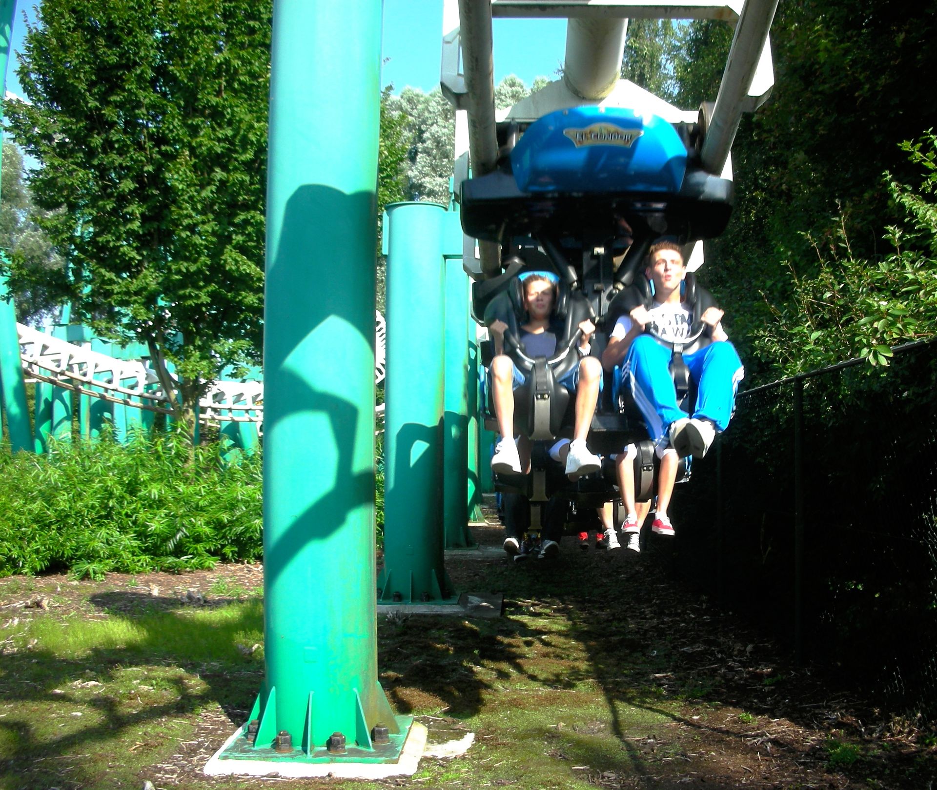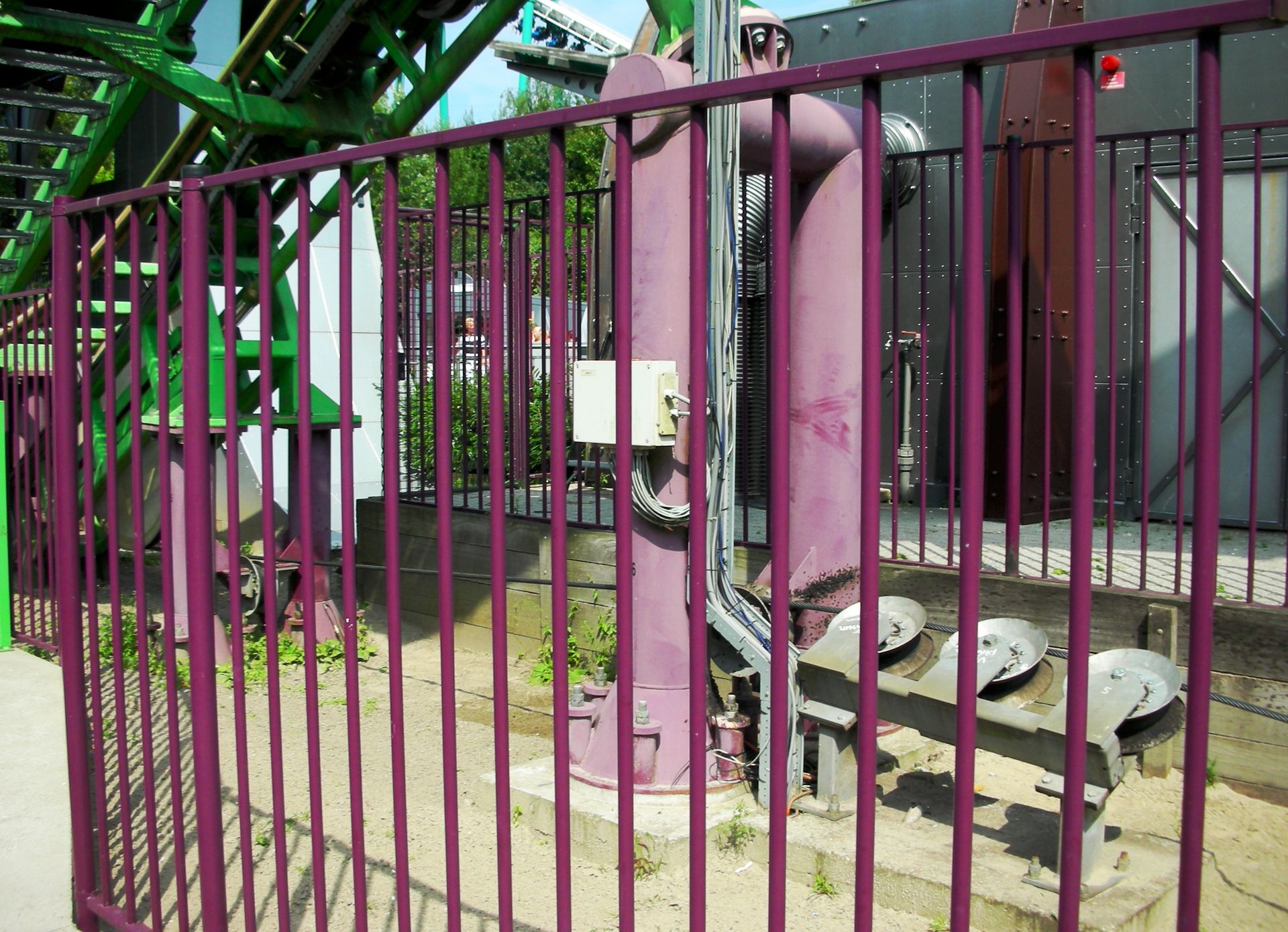 Vekoma, nicht zuletzt wegen des Tunnels, der den ersten Lift verschleiert. Während der Fahrt verfehlt dieser Tunnel allerdings den erhofften Effekt, ahnungslos im Bügel zu hängen, da man besonders in den vorderen Reihen einfach noch zu viel von der Außenwelt sieht und somit ganz gut einschätzen kann, auf welcher Höhe man sich gerade befindet.