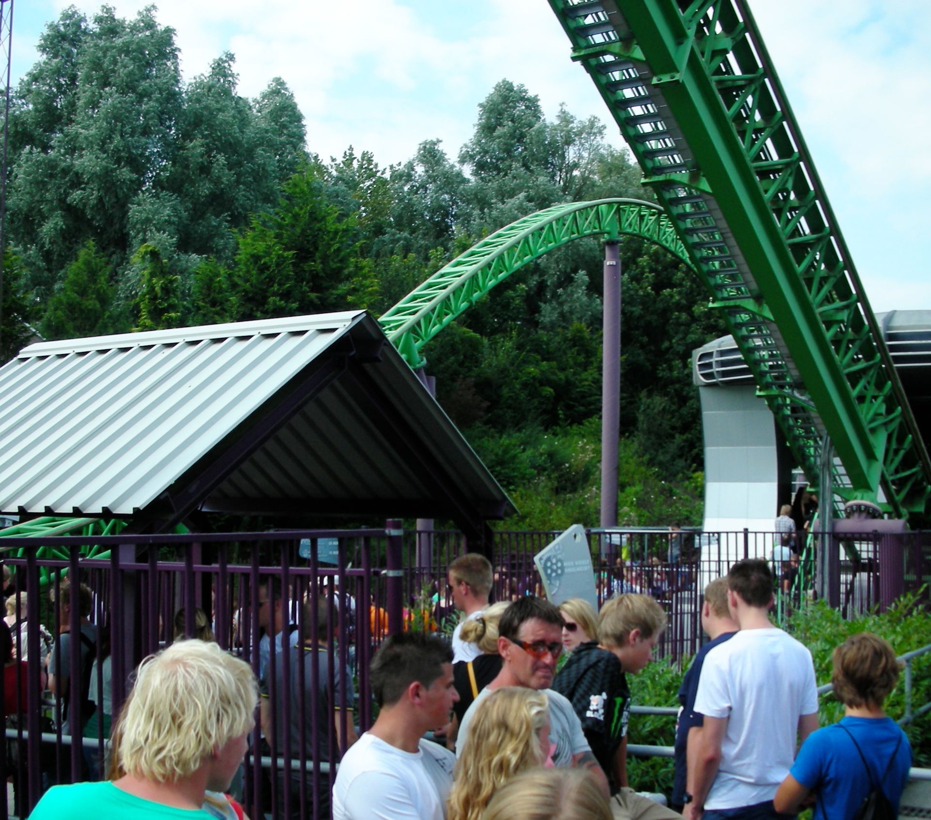 Jedoch hat auch Walibi Holland seine Schattenseiten: Auffällig ist, dass der Lack von Goliath immer mehr in Richtung Weiß kippt, während andere Regionen des Parks tief in die Farbpalette greifen und wirklich jedem Zaunpfahl ein Glanz-Finish verleihen. Es sind auch genau diese Gegenden, in denen Walibi lebt: Die Parkbands spielen eingängige Songs, von denen sich einige Parkbesucher zu Biebergekreische verleiten lassen oder sich zumindest vollkommen befreit fallen lassen. Das geht so weit, dass der Walibi Shop schließlich auch nur eines bietet: Walibi. Auf meine verzeifelten Fragen nach einem Goliath-Shirt hin, hat man höchstens versucht, mich mit Motiven von Möchtegern-Rockidolen aus Plüsch zu vertrösten. Sicherlich kann man sich dafür auch begeistern, jedoch sehe ich in all dem Hype und den farbenfrohen Renovierungen auch etwas den Versuch, darüber hinwegzutäuschen, dass sich Walibi Holland bereits seit 2002 nicht mehr zu einem wirklich neuen Major Ride hinreißen hat lassen. Man kann nur hoffen, dass die Verwaltung bald die Tonstudios verlässt und stattdessen bald in den Büros von