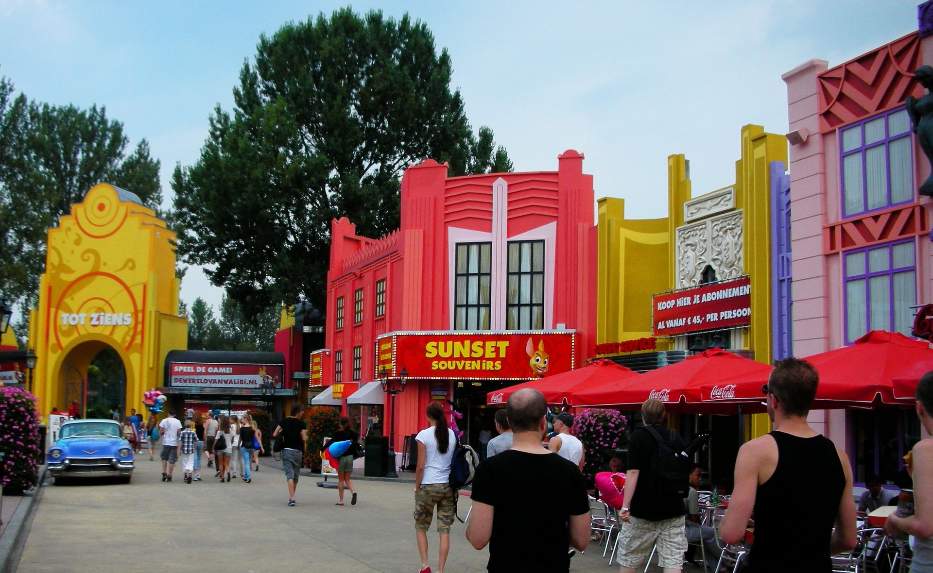 Das Parken des Autos buchte bereits satte -7,50¤ auf die Finanzliste der Coastertour und gab damit einen kleinen Vorgeschmack, was uns in den Tiefen der Niederlande noch erwarten sollte. Durch das Eingangstor gelangten wir in die knallend-bunte Welt des Walibi Holland, wo Farben niemals ausbleichen und die Beats der parkeigenen Bands aus jedem Lautsprecher purzeln. Das Flair der Mainstreet lässt sich wohl am besten mit leichtsinniger Euphorie beschreiben und genau dieser gehorchten wir aufs Wort, als wir uns für eine Runde XPress anstellten.