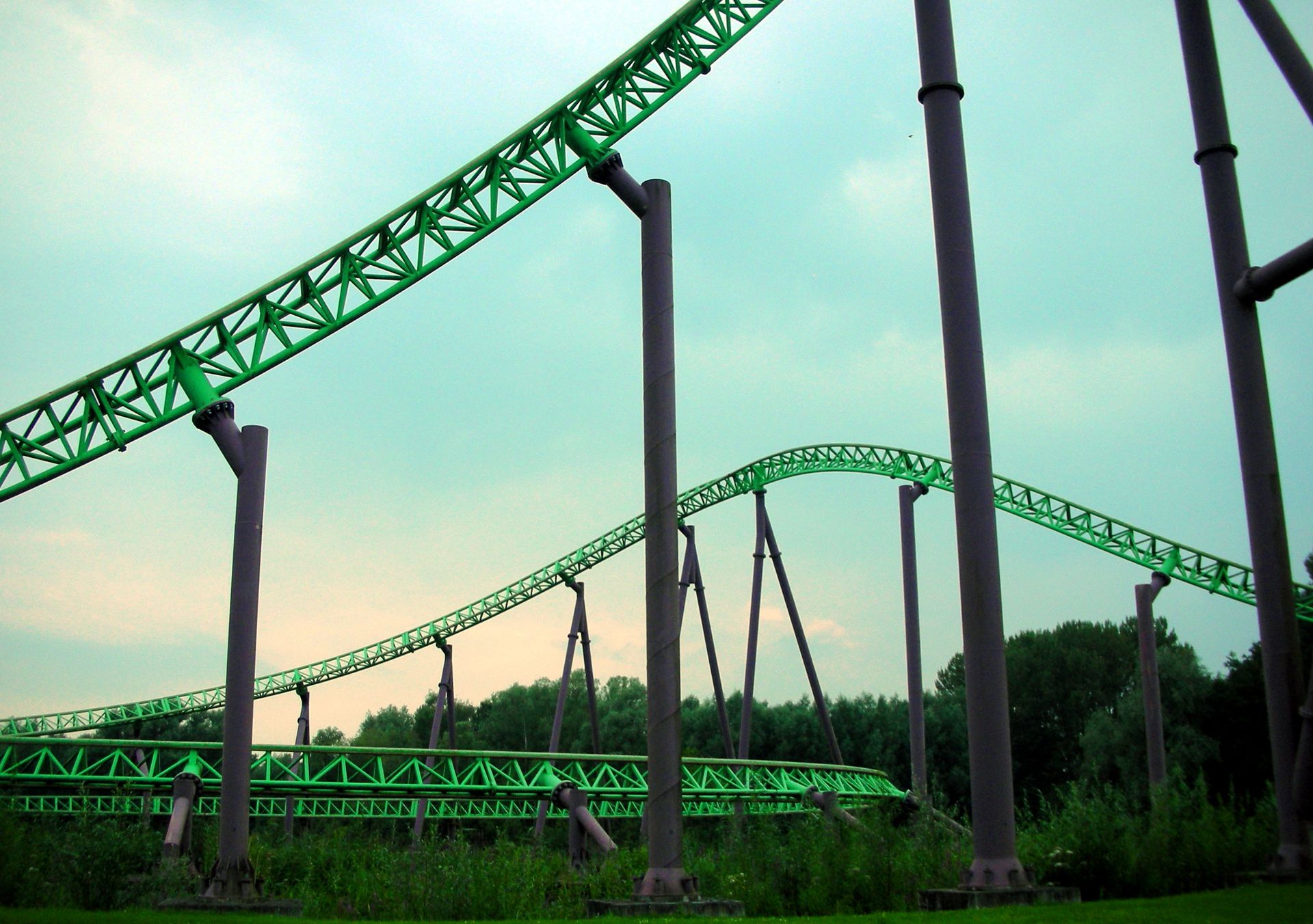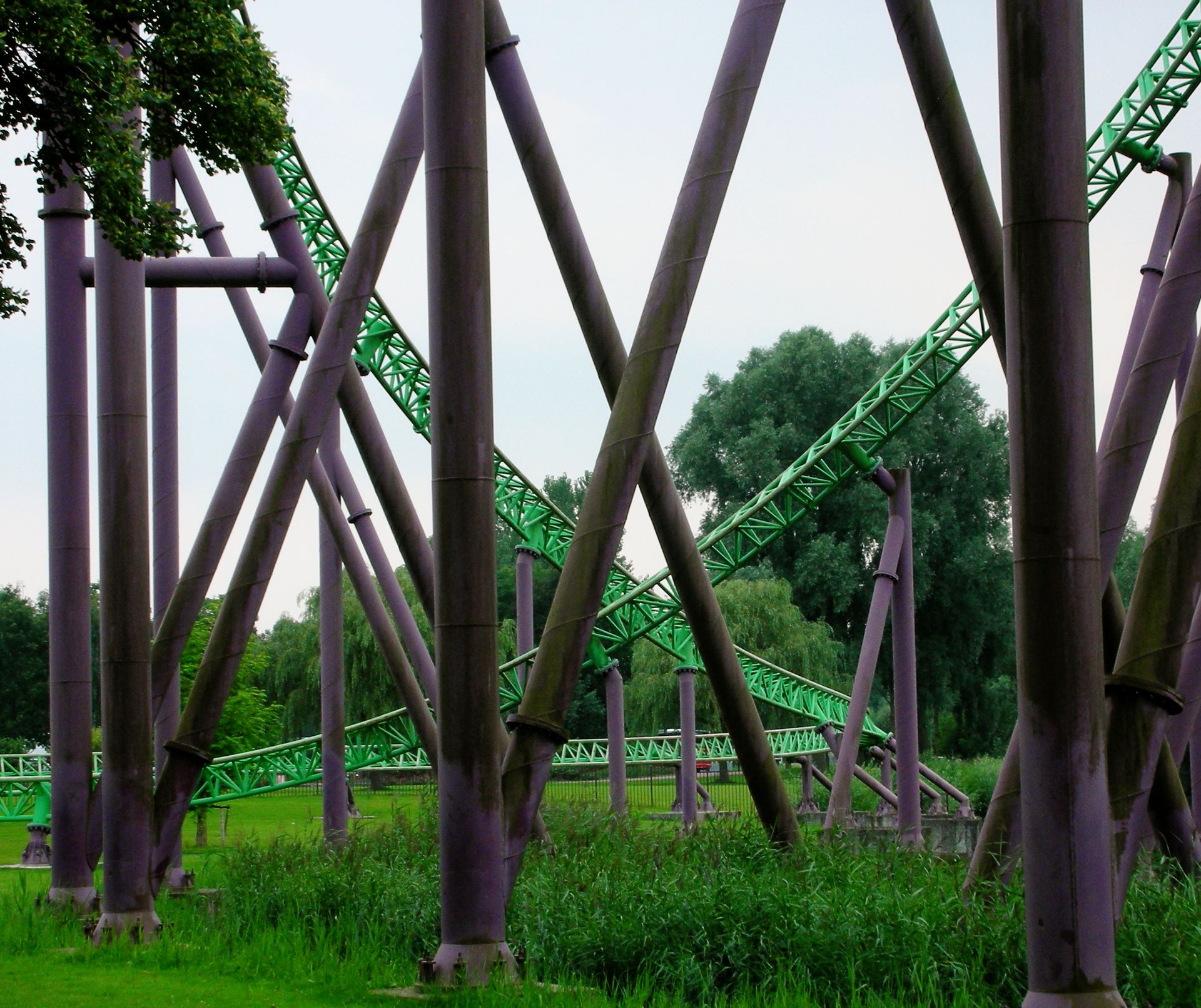 Helix dagegen konnte mich wenig überzeugen, da trotz anhaltender Geschwindigkeit kaum Druck erzeugt wird. Als kleines Trostpflaster werden all diejenigen, die hier ihre Arme oben behalten, mit ängstlichen Blicken der Mitfahrer belohnt, wenn die Hände gegen einen der Stützpfeiler zu klatschen drohen.